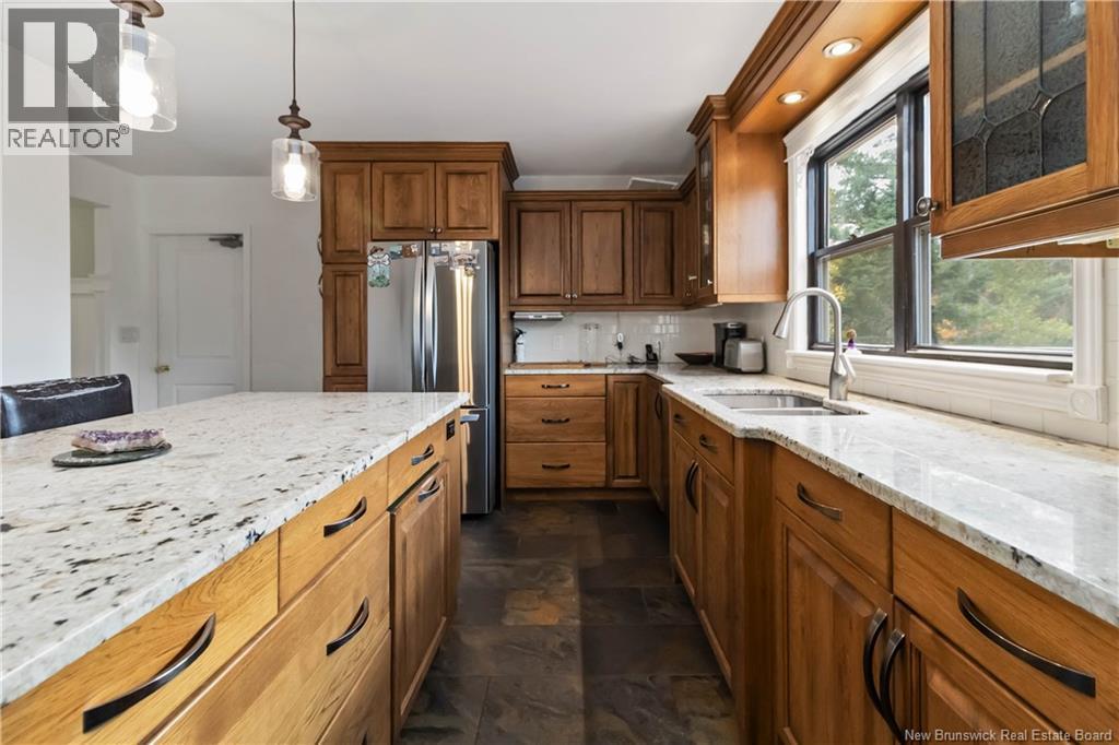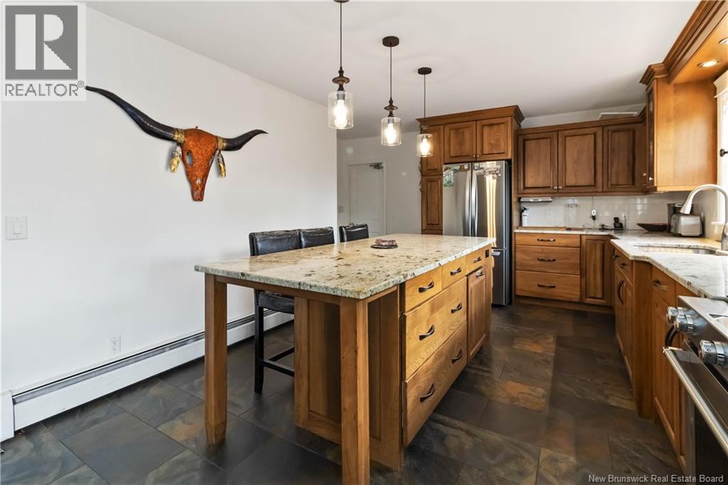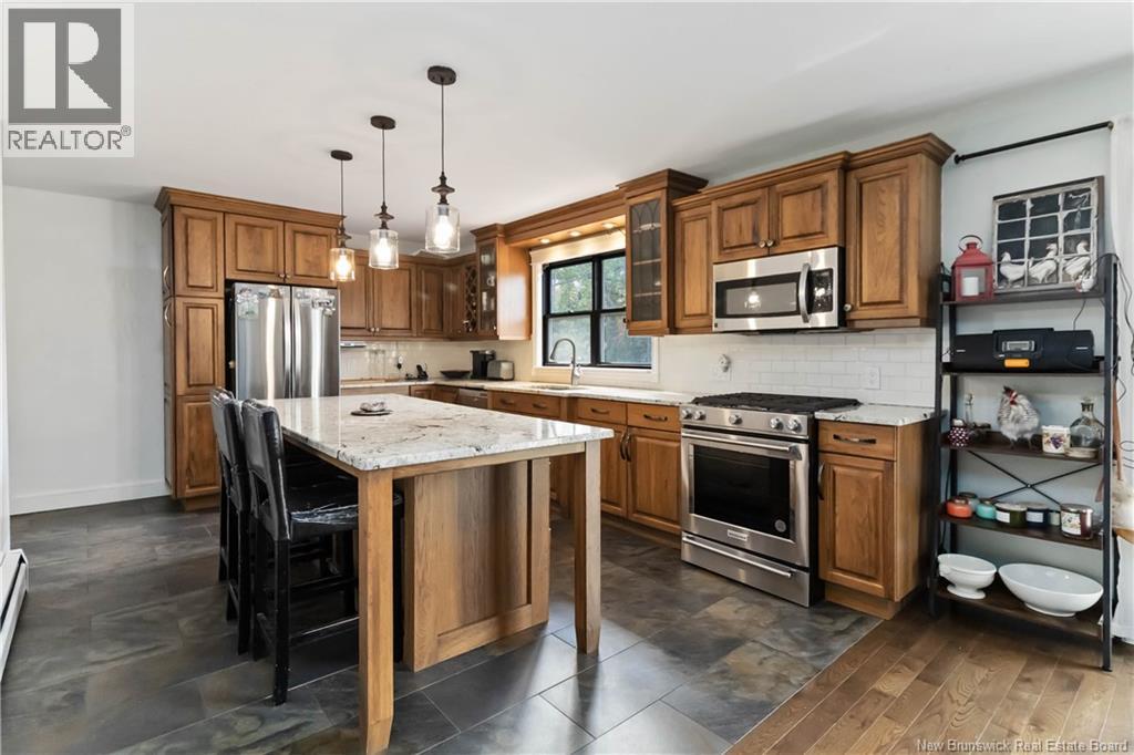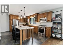 Elegant Lakeview Home with Expansive Living Spaces. Arrive in style as you pass through fenced frontage and stately stone columns and picket fence that frame the paved driveway leading to this spacious 3,360 sq. ft. home (28 ft x 60 ft). This property sits on a gently sloping lot that flows down to a serene brook-fed lake. With 1.8 acres of land, the property feels even larger thanks to wide side yards, & peaceful lake view. Inside, the single-car garage entry brings you into a practical space with laundry and a walk-in pantry, which seamlessly connects to the heart of the homea custom-built hickory kitchen. The kitchen features a massive 40 x 90 island with seating for four, white granite countertops, and excellent storage, making it both stylish and functional. The spacious dining and living rooms provide the perfect setting for entertaining or hosting large family gatherings. From here, step out through a 6 ft patio door onto the deck, complete with glass railings and a private view of the lake. The bright family room downstairs features tall windows, space for a pool table or bunkroom, and walk-out access. A high-efficiency wood-burning fireplace heats up to 2,500 sq. ft., creating a cozy retreat. (id:19018)