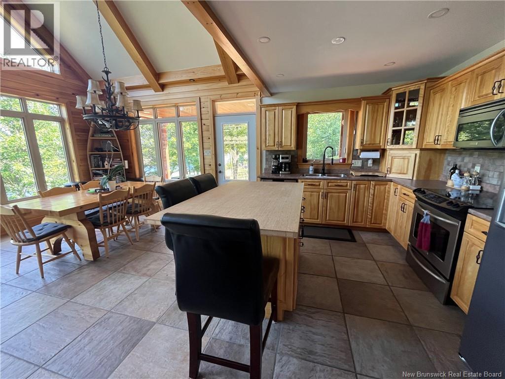 Located on the very popular Richibucto river in the desirable area of BROWNS YARD, you will fall in love with this property as you drive down the picturesque driveway thru your own forest of mature trees. This beautiful WATERFRONT custom built home was done to take full advantage of the magnificent views from almost every room and from the wrapped around porch. The kitchen, dining area and the livingroom offers open concept living which is perfect for entertaining. Enjoy the gorgeous sunsets thru the floor to ceiling windows with vaulted ceilings and a cozy wood stove and IN-FLOOR HEAT for those chilly nights. This floor is complete with a bedroom and 4pcs bathroom/laundry. The second story is the master bedroom and ensuite with a large WALK-IN shower plus a balcony area which is an absolute treat to wake up to in the morning! The basement provides a large familyroom and gameroom with sliding doors to the WALK-OUT patio area, a third full bathroom and a non-conforming bedroom with build-in double bunk beds. This spacious 2.39 ACRES lot is high off the river so no risk of flooding. The gazebo is built at the edge of the lot with added supportive concrete that overlooks the river with a staircase and dock just below. The property also has a guest house with its own half bath for extra family and friends to stay overnight and 2 camper hook-ups. If you are looking for a waterfront paradise that has charm and rustic character but offers all the modern amenities, look no further!! (id:19018)