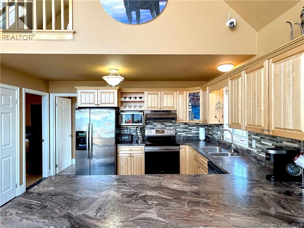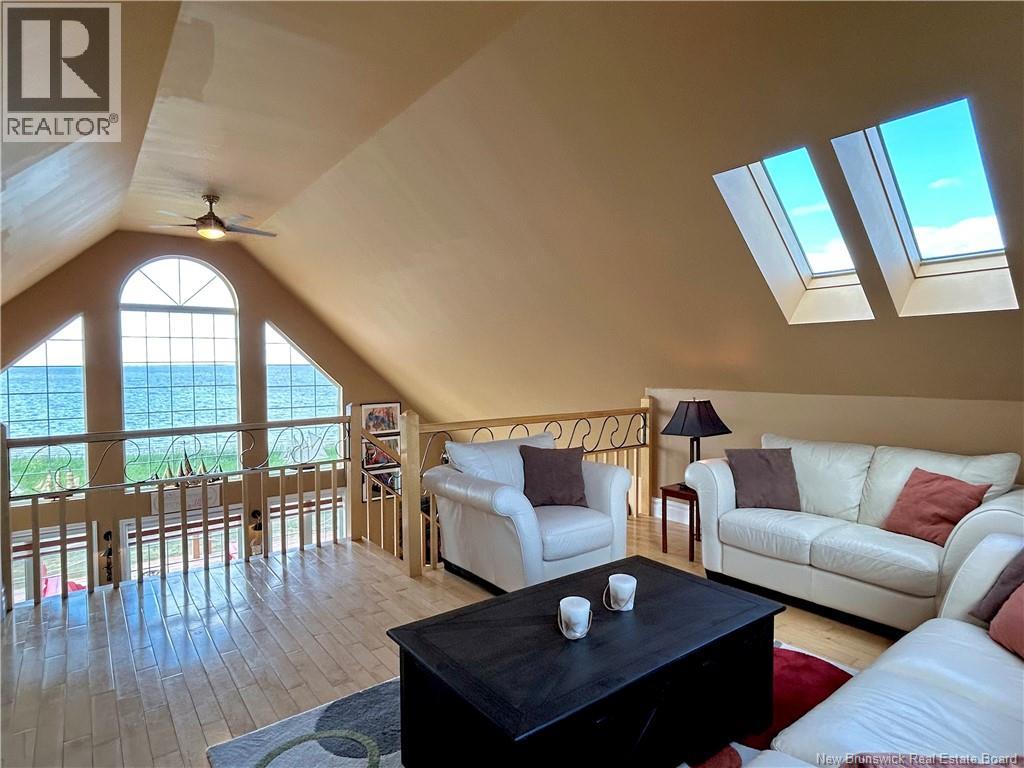 Welcome to this nature lover's paradise that boasts privacy and peace and quiet while still being close to amenities. Located at the end of a short cul-du-sac side road you'll find this stunning home sitting along the beaches of the Miramichi Bay. There is road access to the beach if you are into boating, kayaking or simply sitting back and watching the sunrise and set over the water. The home is located in the middle of a protected nature area so you have no neighbors in sight. The home boasts a cozy sun room that flows through to the open concept living, dining and kitchen area with cathedral ceilings and floor to ceiling windows facing the water. The kitchen has custom Birdseye maple cabinets, stainless steel appliances and lots of storage space. The main level also offers 2 large bedrooms with big double closets and a full bath with main floor laundry behind closet doors. The upper level is one large bedroom with two large closets and a view of the water that will leave you in awe!! The hole is heated and cooled with a geothermal heat-pump making your hydro bills very energy efficient and the property offers a high efficiency HRV system! Some other great features of the home are the large wraparound deck, concrete floor crawl space foundation for additional storage, large fully wired garage, shed and more! Not to mention the fact that the exterior of the home was fully resided and deck refaced. Call today to schedule your private viewing! (id:19018)
