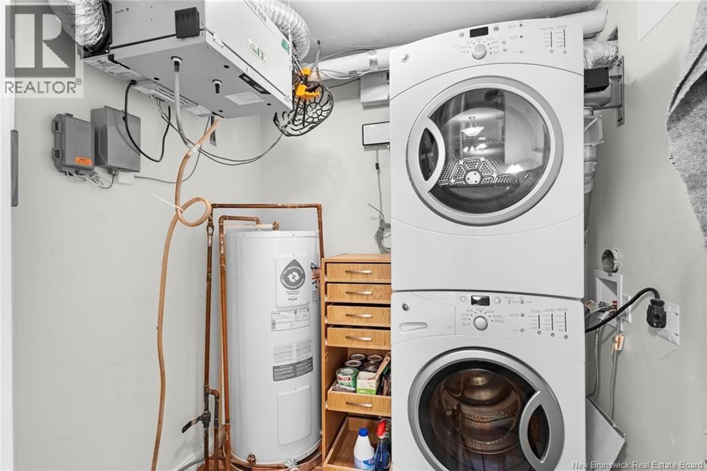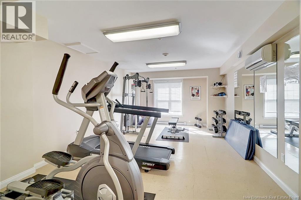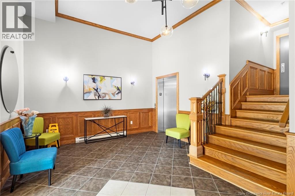 A bright and spacious 2-bedroom, 1-bath top-floor condo in Regency Landing! This well established building is located on a quiet street in the heart of downtown Fredericton just minutes from all amenities shops, restaurants, and entertainment and only steps from Frederictons scenic walking and biking trail system. This building offers outstanding amenities, including a welcoming foyer with elevator access, a fitness room with bathroom, asocial room with full kitchen, and secure access throughout. The underground heated parking includes storage, a car wash bay, and secure bike storageeverything you need for both comfort and convenience. Inside the unit the vaulted ceilings in the living room and patio doors to the balcony make the space feel so open and inviting. Enjoy the convenience of in-suite laundry and stay comfortable year-round with the ductless heat pump/AC. This opportunity is perfect for those seeking a low-maintenance lifestyle without sacrificing location or amenities! Note: re-sale/rental assessment fee of $500 payable to the corporation at closing. (id:19018)