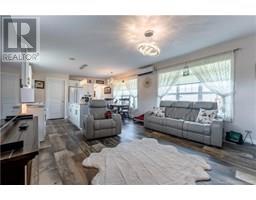 Welcome to 39 Harvest Lane, the perfect starter or downsizing opportunity in peaceful Saint George, NB! Located in a quiet, well-kept mini home community with a true neighbourhood feel, this beautifully maintained 2022 built home offers stylish, single-level living with 3 bedrooms, 2 full baths, and thoughtful upgrades throughout. Enjoy 9-foot ceilings over the kitchen and living room, with large windows that flood the space with natural light. The home includes remote-controlled blinds, brand new white Whirlpool kitchen appliances, and a 2-year-old washer and dryer. Outside, a paved driveway leads to two single-car garages - one ideal for parking, the other a great option for storage, a second vehicle, or even a workshop. An on-demand generator provides added peace of mind. Conveniently located near all amenities and just a short drive to Saint John, St. Stephen, and St. Andrews by-the-Sea, this move-in ready gem offers the best of small-town living with big-time access. (id:19018)