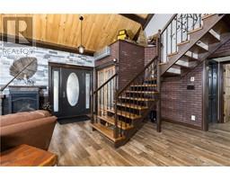 As you approach this exquisite estate, the experience is nothing short of breath taking. Nestled in a secluded private location, this prestigious property offer an unparallel sense of arrival. A winding drive through driveway leads you through pristine grounds, revealing an architectural masterpiece that commands attention with timeless elegance and grandeur. The exterior impresses with classic finishes, a beautifully curated space where every detail reflects thoughtful craftsmanship and sophisticated design. Offering 2 spacious bedrooms with a possibility of a 3rd bedroom and 2.5 luxurious bathrooms, this home is perfect for those who appreciate both comfort and style. The interiors boasts with seamless blend of high end finishes and architectural charm. A stunning wooden staircase anchors the home, drawing the eye upward and adding a sense of timeless beauty. Natural light floods the space through expansive, beautifully placed windows, offering sweeping views and creating a serene airy atmosphere throughout. Whether you're enjoying a quiet morning or entertaining guests, the surroundings provide a perfect backdrop. Une propriete unique ou le design est rafine rencontre la tranquilite de la nature. Dotte de 2 chambres spacieuses, possibiliter d'une troisieme chambres et de 2.5 salles de bains luxueuses. Le garage double detache 33x33 est a decouvrir. (id:19018)
