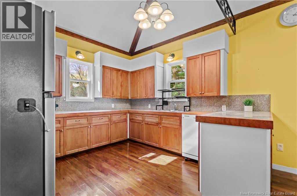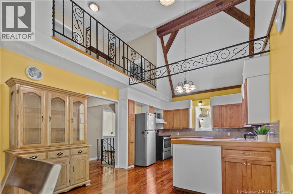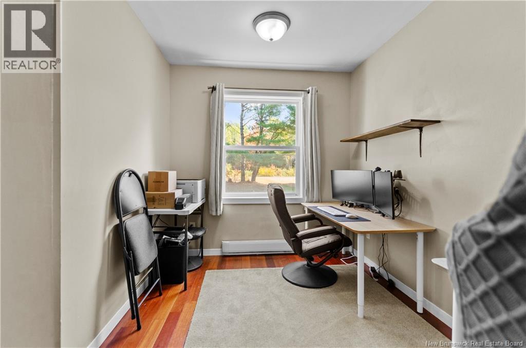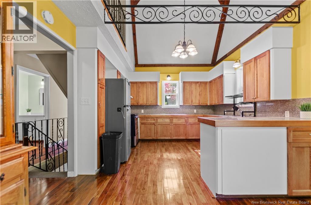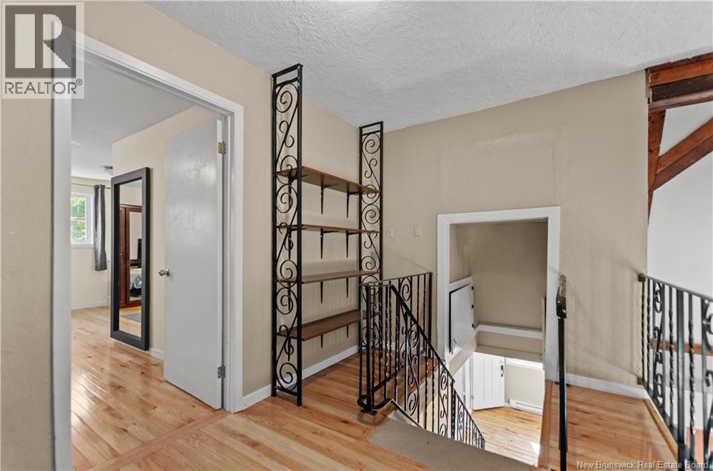 Welcome home to your private retreat at 41 Spry East Road. This 5-bed, 2.5-bath Gambrel-roof home offers timeless charm on 10 private acres, just 25 minutes from Oromocto. Hardwood & pine floors set a warm tone, while the heart of the home is a bright kitchen with granite tile counters, refaced cabinetry, and a floor-to-ceiling brick fireplace. Wood wainscoting flows through the spacious living spaces, & a den provides space for that 5th bedroom or dedicated office. Upstairs, the primary retreat features hardwood floors, walk-in closet, skylit ensuite, and a lofted landing overlooking the main level. The walkout basement adds three good sized bedrooms, a full bath, utility room & a large family room with 2nd woodstove. This home has been extensively & professionally upgraded in recent years for the utmost comfort & longevity: ductless heat pumps (2020), full PEX plumbing (2023), foundation repointing/insulation (2024), standing seam metal roof (2024), new energy-efficient windows & doors (2025), vinyl siding & exterior insulation (2025), plus brand new deck steps (2025), fresh paint & a preventative Radon mitigation system (2025). Outdoors, enjoy a large workshop, garden shed, ATV trail access, gardening space, and evenings by the pond or firepit. Also included is a metal sea container for storage or hobbies. Built to last and beautifully cared for, this home is ready for your family to move in and hang your stockings on the fireplace just in time for the Holidays! (id:19018)