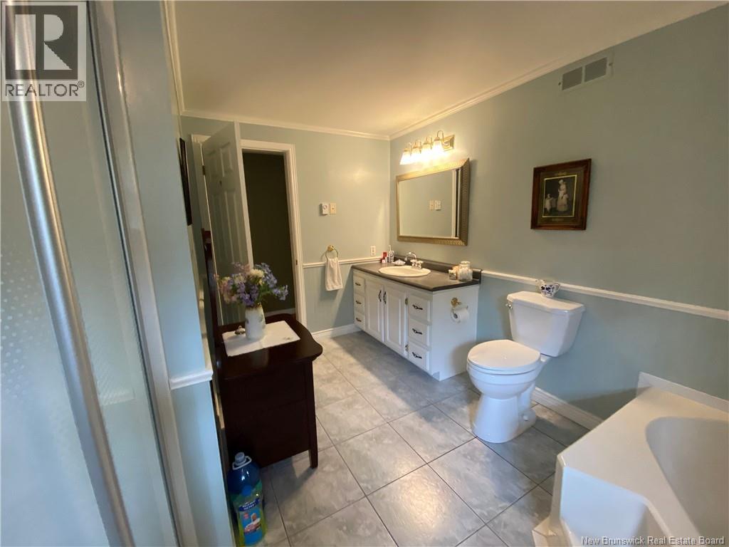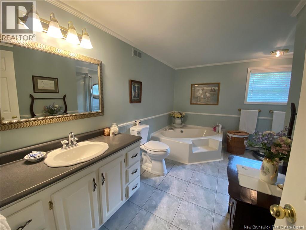 Prestige built Executive home is situated on a 1.407 acre professionally landscaped lot, located in Grande Digue where you can enjoy country living and nearby sandy beaches and only 28 minutes to Moncton. Beautifully crafted with oak hardwood floor which flows throughout most of the home and oak cabinets painted a beautiful cream colour. The 2nd bedroom has a large closet and a view of the front yard. The formal living room boasts electric fireplace, built in shelving and crown molding. There is an office across the way that could be changed into a 3rd bedroom by adding a wardrobe. The primary bedroom measures 14 x 13'4"" plenty of room for the king bed and more. The main bath is every aspiring princess' dream with oval shaped corner step up tub to hold candles and or plants for total relaxation, a separate stand up shower and of course toilet, sink and room to get dressed to prepare for an amazing day. The laundry/ half bath is located just off the garage entrance on the main floor. The sunroom was built afterwards but was professionally done and adds more room for the large family gatherings with the convenience of the location just off the kitchen. The double attached garage and the extra large storage shed, the extra treed buffer between the back neighbours and central vac add to the enjoyment of this beautiful home. The basement is unfinished with 8 foot ceiling and waiting for your dreams. contact a REALTOR® to view (id:19018)