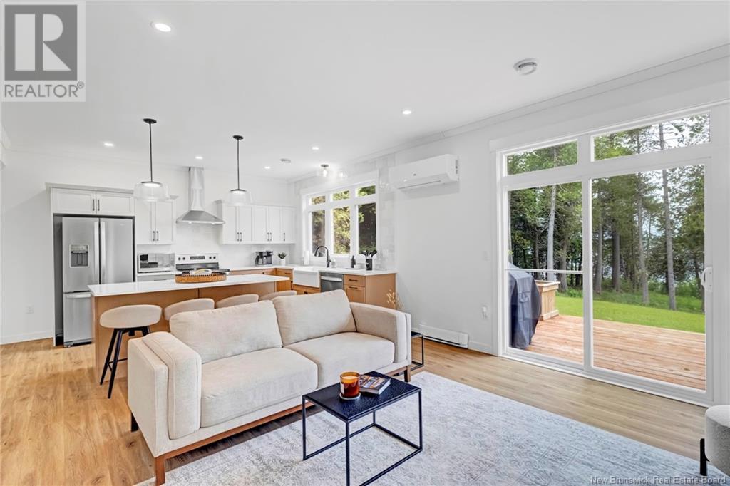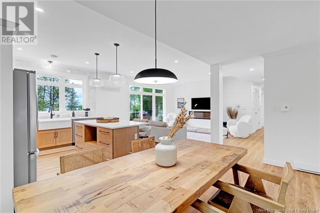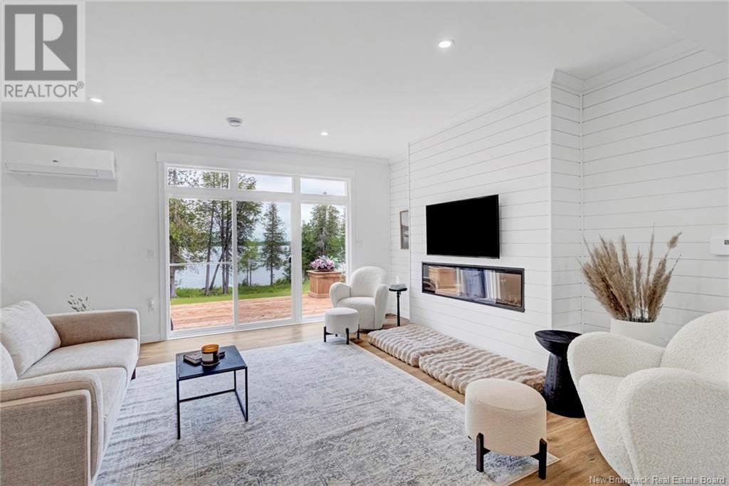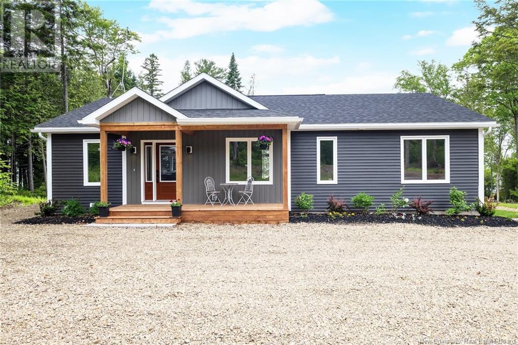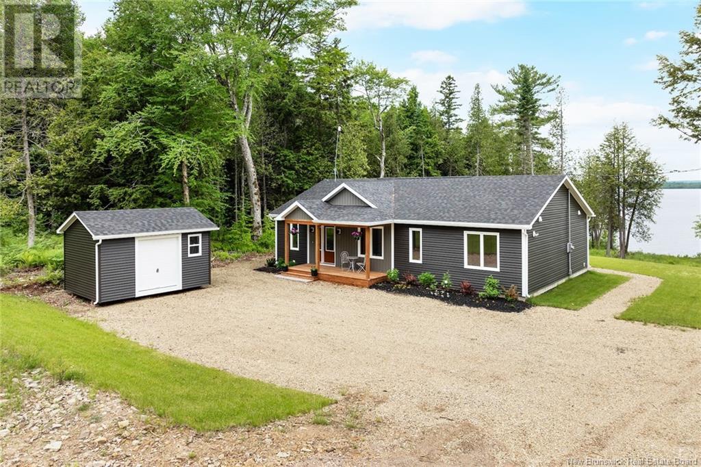 Welcome to 456 Cox Point Road, a rare offering on the shores of Grand Lake. Nestled on over 4 acres, this newly constructed, professionally designed and fully furnished home offers the perfect blend of modern luxury and thoughtful craftsmanship. As you step inside, you're welcomed by a bright and functional mudroom/laundry area, setting the tone for the smart, open-concept layout that follows. At the heart of the home lies a chefs kitchen that will inspire culinary creativity, complete with top of the line appliances, custom cabinetry, ample prep space, and quartz countertops. Whether you're hosting a lively kitchen party or enjoying a quiet breakfast, this space is designed to impress. The living area is a showstopper, with oversized windows that flood the space with light and provide breathtaking views. Patio doors lead to your deck, the perfect place for relaxing or simply soaking in the surrounding tranquility. A cozy fireplace anchors the space, creating a warm and inviting ambiance year-round. The primary suite is a private oasis, featuring a well appointed ensuite bathroom and generous closet space. Two additional bedrooms are both well-sized, offering comfort and style for guests or family. The main bathroom echoes the same level of design found throughout the home. Outside, enjoy your private 40-foot dock, ideal for boating or sunset watching. Whether youre seeking a luxurious seasonal retreat or year round haven, this home delivers. (id:19018)