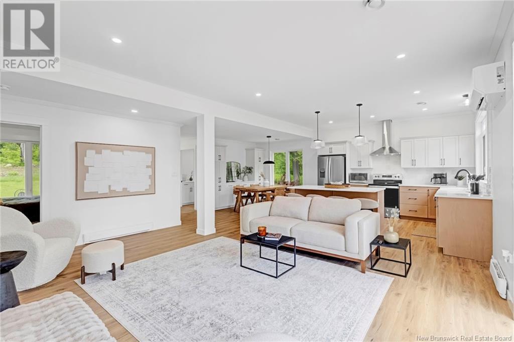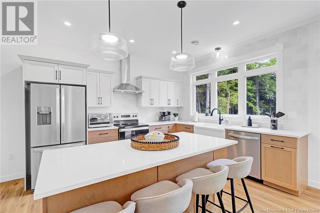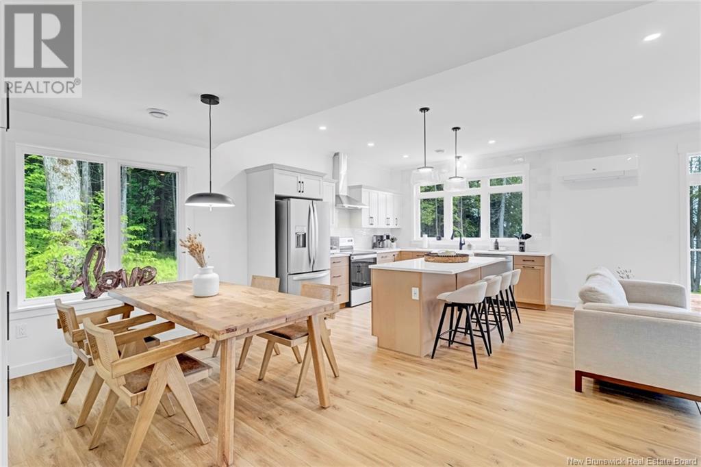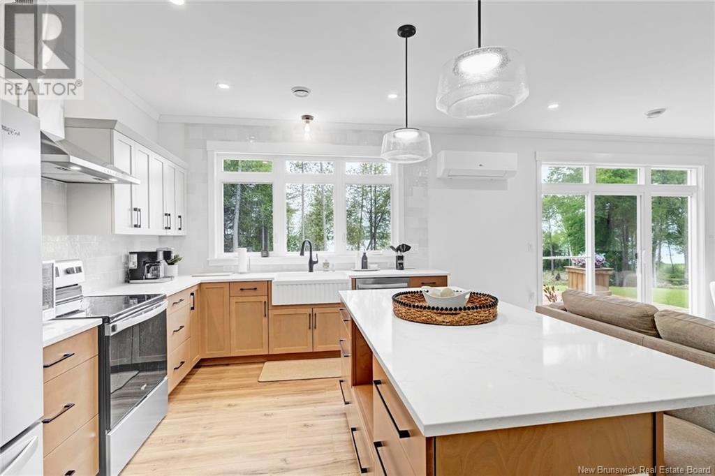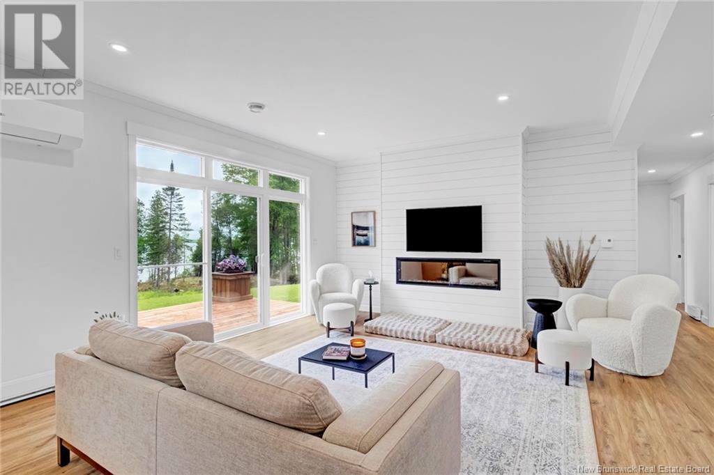 Welcome to 456 Cox Point Road, a rare offering on the shores of Grand Lake. Nestled on over 4 acres, this newly constructed, professionally designed and fully furnished home offers the perfect blend of modern luxury and thoughtful craftsmanship. As you step inside, you're welcomed by a bright and functional mudroom/laundry area, setting the tone for the smart, open-concept layout that follows. At the heart of the home lies a chefs kitchen that will inspire culinary creativity, complete with top of the line appliances, custom cabinetry, ample prep space, and quartz countertops. Whether you're hosting a lively kitchen party or enjoying a quiet breakfast, this space is designed to impress. The living area is a showstopper, with oversized windows that flood the space with light and provide breathtaking views. Patio doors lead to your deck, the perfect place for relaxing or simply soaking in the surrounding tranquility. A cozy fireplace anchors the space, creating a warm and inviting ambiance year-round. The primary suite is a private oasis, featuring a well appointed ensuite bathroom and generous closet space. Two additional bedrooms are both well-sized, offering comfort and style for guests or family. The main bathroom echoes the same level of design found throughout the home. Outside, enjoy your private 40-foot dock, ideal for boating or sunset watching. Whether youre seeking a luxurious seasonal retreat or year round haven, this home delivers. (id:19018)