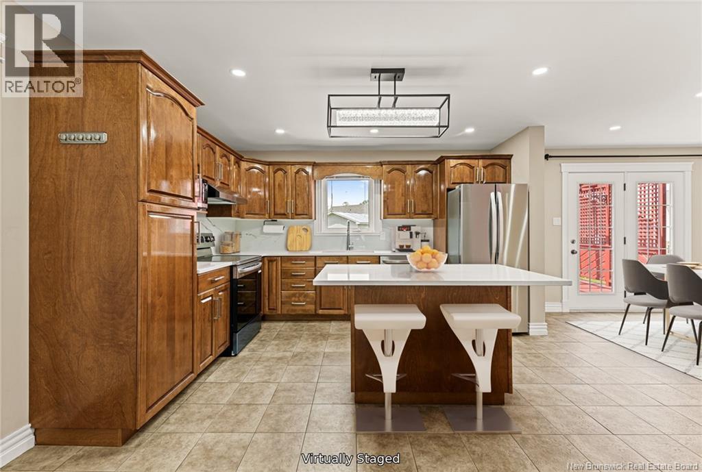 Gorgeous detached home on a child safe, quiet court in Moncton North, near top-rated schools and all major amenities. This spacious family home features a newly built wraparound front porch and a bright, front-facing living room with a natural gas fireplace. The generous sized Dining room offers a walk out to the huge Entertainers Pergola style deck in the backyard. The upgraded kitchen offers a medium-toned cabinetry, new quartz countertops, an island with breakfast space, new porcelain tile backsplash, new stainless-steel appliances, and a large pantry. A convenient half bath completes the main floor. The upper level offers four rooms which include a huge family room, 2 large bedrooms and a spacious primary suite with a walk-in closet. The newly renovated 5-piece main bathroom features a soaker tub, tiled shower, and double sink quartz vanity. The finished basement adds two bedrooms, and a full bath/laundry combo with a new washer and dryer. The fully fenced pie-shaped backyard offers a huge Pergola style Entertainers Deck with new concrete walkways. The backyard offers additional open space to make this into a dream backyard. This home offers 4 entry points to the backyard. Additional updates include new roof shingles (2025) with transferrable warranty, mini-split heat pumps on all floors, digital thermostats, upgraded lighting, and fresh paint throughout. A two car attached garage completes the package. (id:19018)