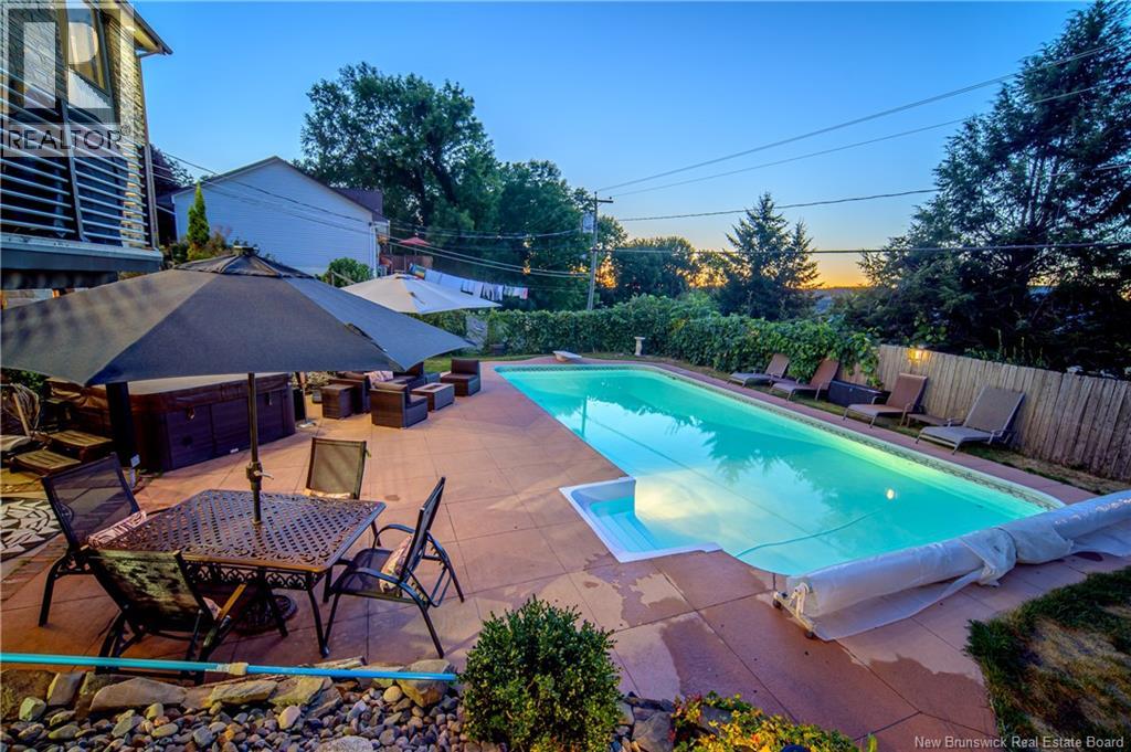 Welcome to this Mediterranean-inspired masterpiece offering over 4,000 sq. ft. of refined living in one of Frederictons most sought-after southside neighborhoodsjust minutes from both uptown and downtown conveniences. From the moment you arrive, the architectural detail and timeless design set this home apart. Inside, youll find 4 spacious bedrooms and 3.5 bathrooms, including a private granny suite with a walk-out on the lower levelperfect for extended family or guests. The heart of the home offers bright living spaces designed for both elegance and comfort. A show-stopping loft-style room overlooks the double lot and the resort-style backyard, where an expansive inground pool, hot tub, and new Duradek decking awaits. The fully fenced yard provides both privacy and room to play, while the paved driveway, built-in garage, and detailed finishes throughout add to the homes appeal. A brand new geothermal heat pump efficiently heats and cools the home! Whether entertaining poolside or enjoying a quiet evening in, this property strikes the perfect balance of function, style, and sophistication. A rare opportunity to own a Mediterranean gem in a prime Fredericton location (id:19018)
