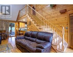 Welcome to this beautiful Riverbend log home built with premium Eastern White Cedar logs that are precision milled and cut to perfection. Riverbends signature triple-seal system offers exceptional energy efficiency designed for year-round comfort. Inside the home, you will find a spacious kitchen with oak cabinetry an eat-in dining area and cosy living room with new electric fireplace. Off the eat-in dining area is an enclosed back deck perfect for relaxing, enjoying your morning coffee or evening sunset. A main-level bedroom, full bath, and workstation add function to this level. While the lower level offers a finished family room, a versatile bonus room ideal for a home gym, office, or playroom and laundry/utility room with laundry chute complete this level. Upstairs, the primary bedroom provides a quiet retreat. Off the attached double garage you will find a bonus area with half bath, currently used for storage, but the potential for a home business or guest suite. Located approximately 20 minutes to Hartland, 25 to Woodstock, 45 minutes to Fredericton, 5 minutes to Indian Lake, 15 minutes to Ayers Lake Lookout, 15 minutes to Crabbe Mountain Ski Hill and close to NB Snowmobile Trail. This home is perfect for those seeking peaceful country living with access to outdoor adventure. Dont miss your chance to own this lovely log home in the countryside. This one is a must see! (id:19018)