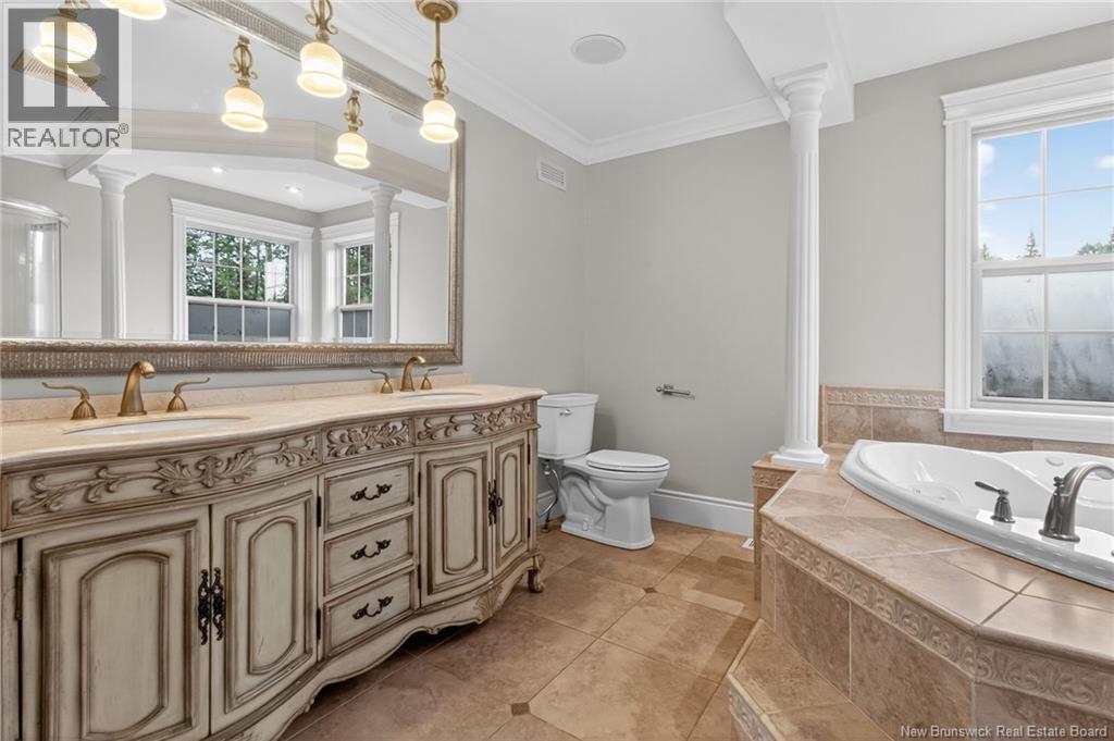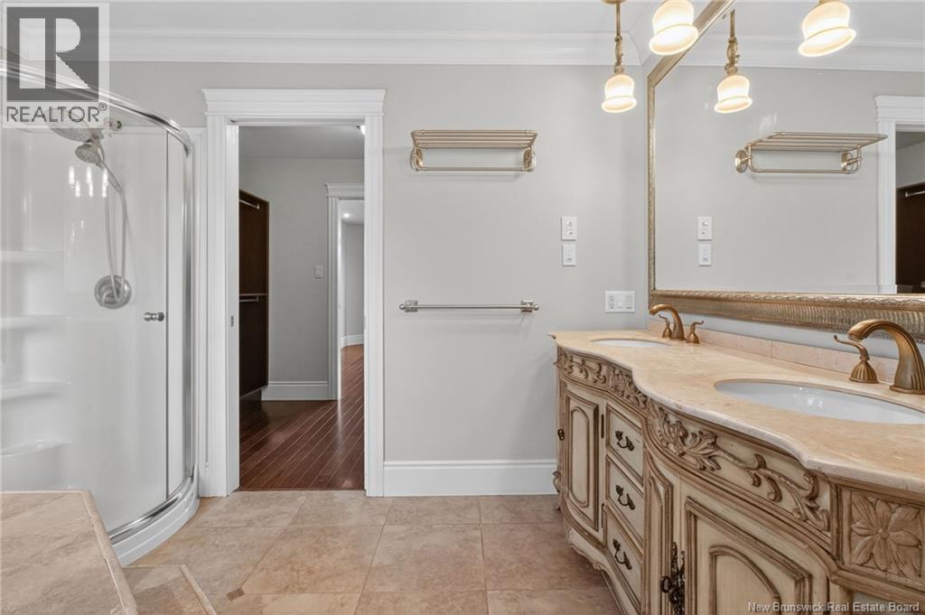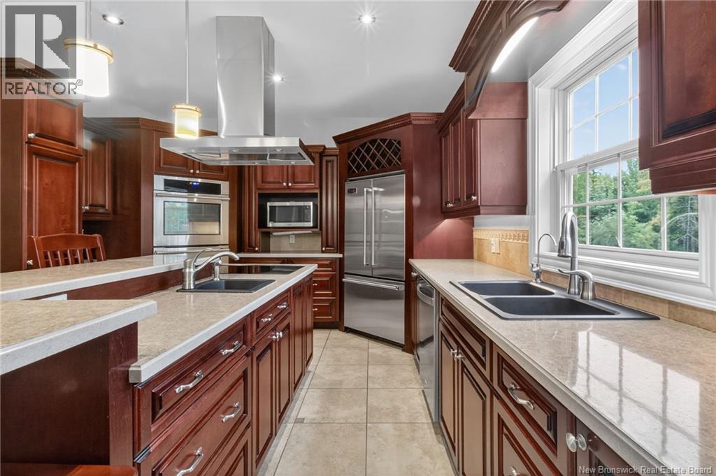 Experience luxury, space, and functionality in stunning executive home on a quiet 2.64-acre lot in Moncton North. Designed for multi-generational living, this home features a total of 6 bedrooms and 5 full bathrooms with a walk out basement in-law suite (1757 sq. feet) that offers privacy and high end finishes. Highlights include geothermal heating/cooling, heated floors in the basement and garage, Control smart home system, and reverse osmosis in both kitchens. The primary suite offers a 5-piece spa-style ensuite and walk-in closet alongside 3 additional bedrooms and a large multi-functional space presently used as a media room and gym. Enjoy an EV-ready oversized garage, spacious store room, and ample parking for RVs or guests. Upgrades: new roof (2018), hot water tank (2023), paved driveway (2023), epoxy garage floor (2018), expanded septic (2024), and French drain system (2024). Outdoor living shines with a landscaped yard, maple-lined driveway, and your own official-size pickleball/paddle tennis court. A rare blend of elegance, comfort, and turn-key practicality. Book your private showing today. A property homebook with additional information available upon request. (id:19018)