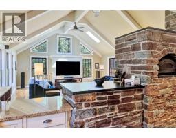 The search is over! This 4+1(bonus room lwr lev) bed 2.5 bath executive home offers over 4000 sq. ft. of finished space on a private lot in sought-after Hanwelljust 6 minutes from uptown Fredericton, near Kingswood Golf Course, & steps from Hanwell Park Academy. Designed for family living and entertaining, its a home that grows with you. The heart of the home is the spectacular great room, where 14-ft vaulted ceilings and 7.1 surround sound set the stage for family movie nights and celebrations. A striking limestone masonry heater with soapstone accents adds warmth and style and even has its own wood waiter for easy access to load the wood from the walk-out basement. The chefs kitchen features granite countertops, gas range, and wet bar, opening to the dining area and bright 3-season sunroom. Host effortlessly with indoor and outdoor pizza ovens, an upper level deck or lower level covered patio your hot tub and overhead movie screen await. A fabulous primary bedroom with ensuite and walk in closet, four additional bedrooms, a dedicated home office, and a home gym provide balance for work and play. With flexible space ideal for an income suite, guest quarters, or multigenerational living, this property offers more than a homeit offers opportunity. The expansive yard is perfect for kids, pets, and gatherings under the stars. Don't forget the double garage! Blending elegance, practicality, and income potential, this Hanwell gem is where families thrive and memories last. (id:19018)