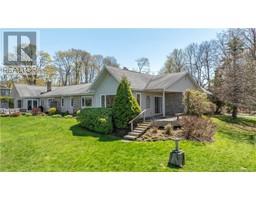Stunning 2 Bedroom Semi-Detached Condo with river view . Prime Location which adds to the blend of comfort and elegance in the 1712 sq.ft. of living space and well maintained grounds . Impressive layout with spacious Dining room , great Living room with fireplace and doorway to private patio with overhanging roof and nice view of river and lawn . Updated Kitchen with appliances to stay . Nice cozy Den and 2 generous Bedrooms , Master has a walk-in closet and ensuite . Utility room with pull down staircase to attic area . Two car garage with remote control opener . Monthly condo fee covers : snow removal ,lawn care and exterior building maintenance {excluding decks/patios , and personal gardens. (id:19018)