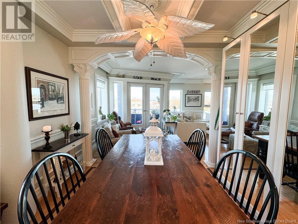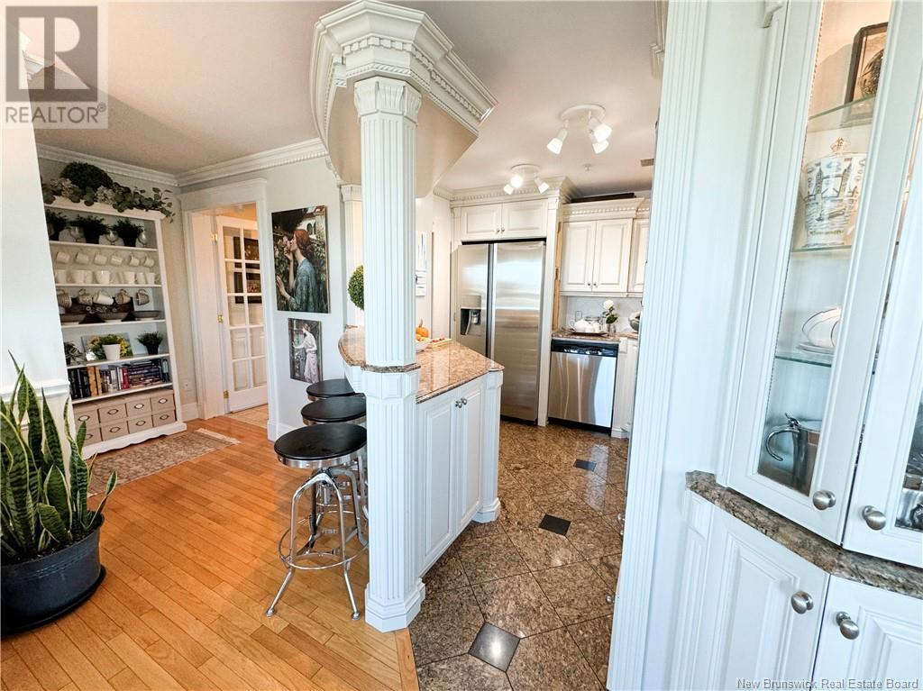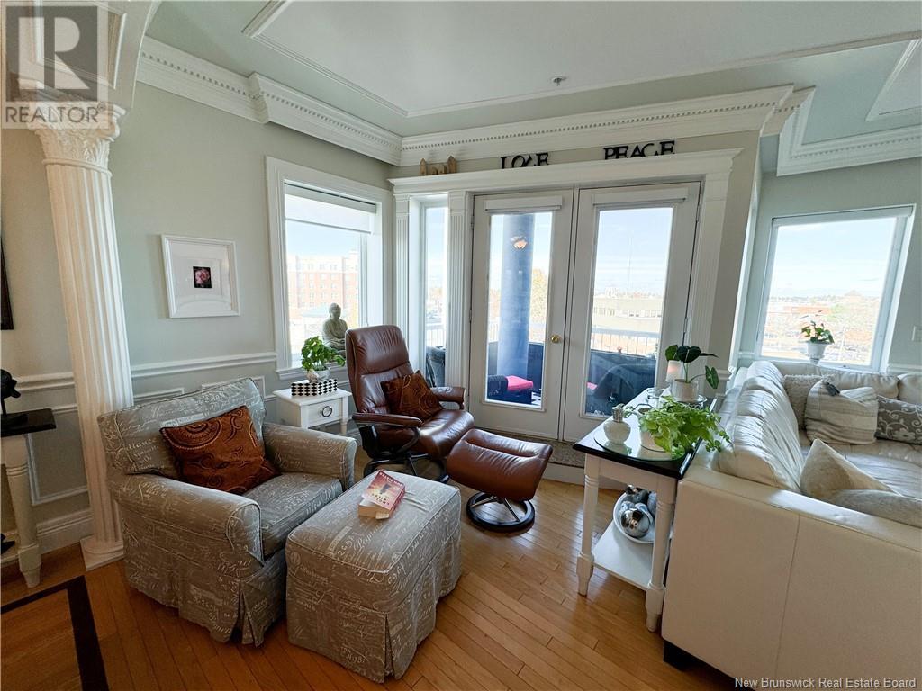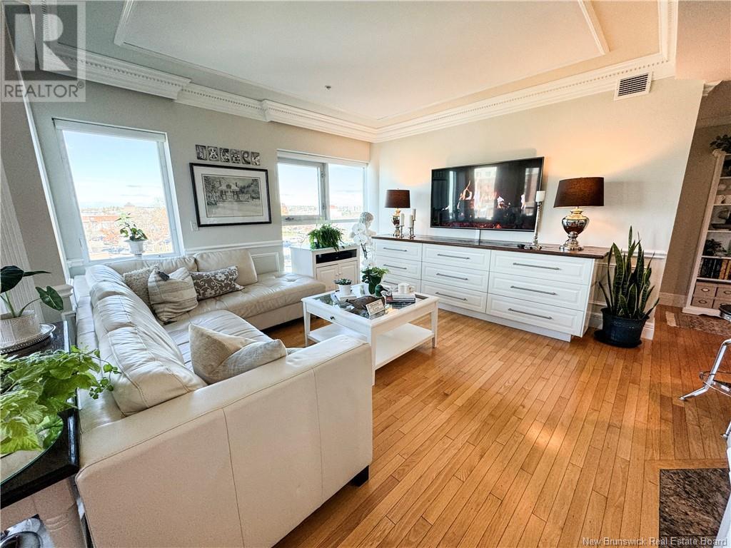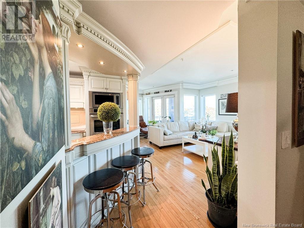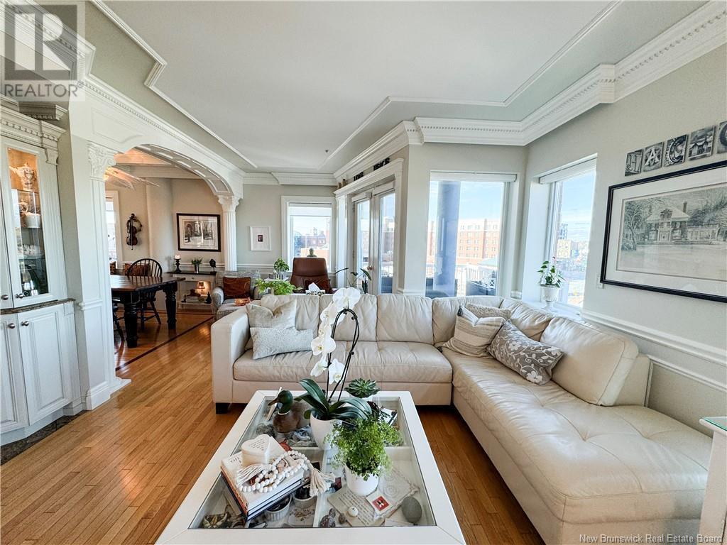 $582 MonthlyStunning Downtown Moncton Condo Discover urban living at its finest in this charming condominium located in the heart of downtown Moncton. Perfectly positioned within walking distance of all the vibrant amenities the city has to offer, this home is ideal for those seeking convenience, style, and comfort. Step inside and be greeted by the timeless character and charm that sets this property apart, enhanced by elegant crown mouldings throughout. With two generously sized bedrooms and two bathrooms, including a private ensuite in the master bedroom, this condo offers a perfect balance of functionality and elegance. Enjoy your morning coffee or evening relaxation on the balconies, accessible from both the master bedroom and the living room, providing beautiful views and a seamless indoor-outdoor living experience. The kitchen is a standout feature, boasting modern finishes and ample space to inspire your culinary creations. Whether you're entertaining guests or enjoying a quiet evening, the open layout makes every moment enjoyable in this thoughtfully designed space. (id:19018)