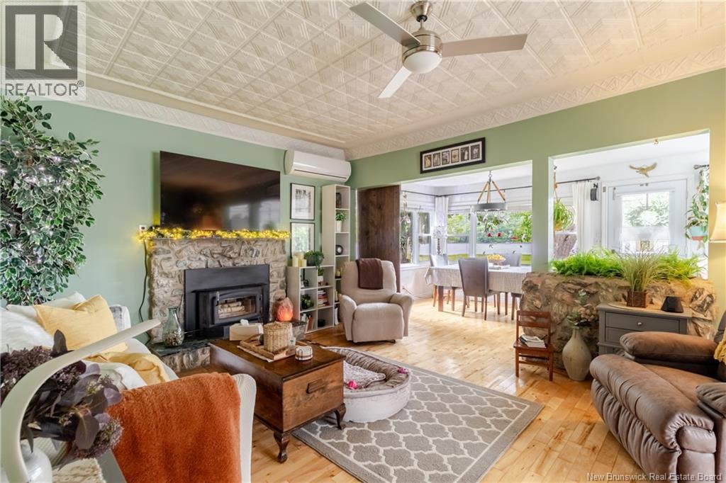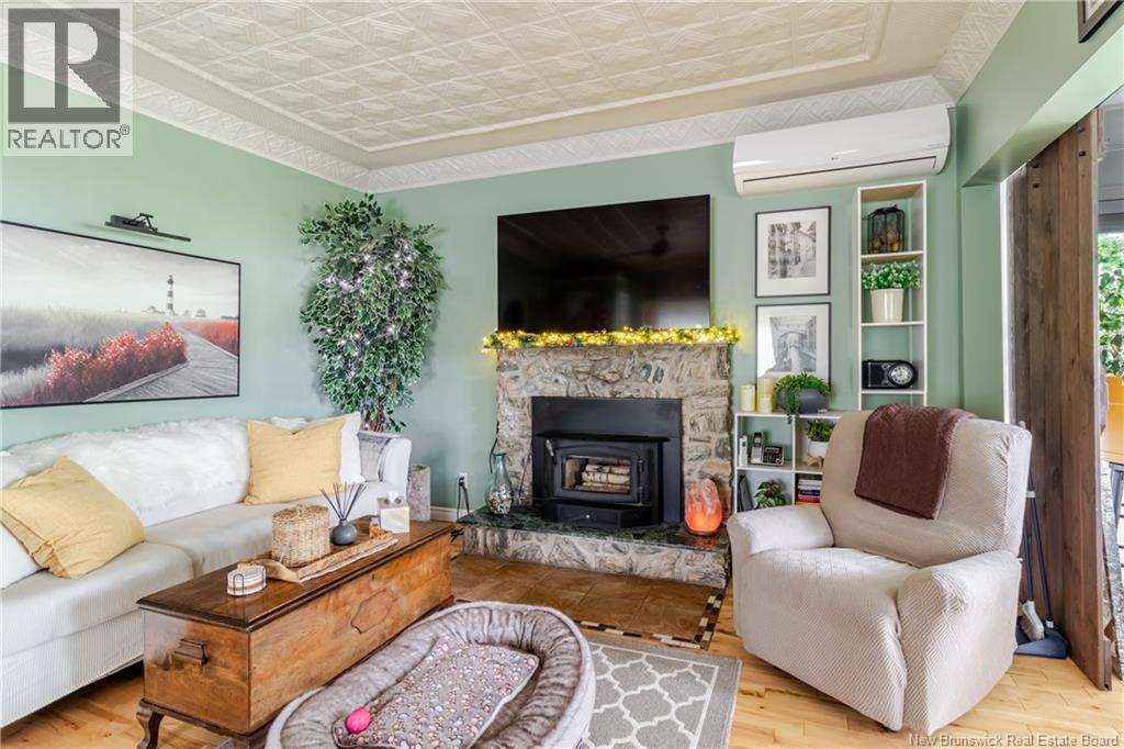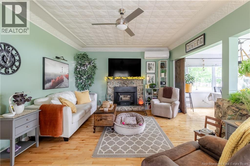 Welcome to 501 Otis Drive - River View Living with Water Access! Enjoy scenic river views and water access just across the road from this charming two-storey home. The heart of the home is a custom oversized kitchen featuring ample cabinetry, spice drawers, a corner pantry, wall oven, oversized island with built-in sink and power. All appliances are under 2 years old. Step through patio doors to a side deck with gazebo, perfect for relaxing by your very own creek. The living room features 10' ceilings, original tin ceiling, wood-burning fireplace, ample storage, and large windows that flood the space with natural light and stunning river views. Main floor also includes laundry and a half bath. Upstairs you'll find 3 bedrooms and a full bath, with easy-care laminate flooring throughout. Home includes 3 mini-split heat pumps, a wood-burning fireplace, oil/wood furnace, new oil tank, new water softener, new hot water tank, NB Power service, new electrical panel, and a poured concrete basement. Furniture is negotiable. Appliances included. Gazebo and deck chairs stay. Just 30 mins to Fredericton, 20 mins to Woodstock, and 25 mins to the U.S. border. Nackawic offers schools, shops, marina, restaurants, trails, golf, tennis courts and more. Welcome home to peace, comfort and riverside charm. (id:19018)