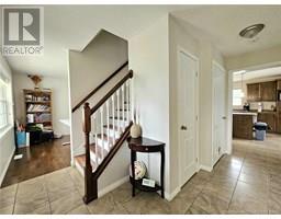 Welcome to this large 5-bedroom, 3.5-bath home built in 2013, located in a highly sought-after neighborhood. Situated on a private corner lot, the property offers a wrap-around deck, a back PVC deck, and all decks are supported by drilled posts for added stability. The main floor features a spacious kitchen and dining area, a bright living room, a 2-piece bath, and a well-positioned office near the front entranceideal for a home business. Upstairs you'll find three generous bedrooms, including a primary suite with a walk-in closet and ensuite bath, plus a convenient second-floor laundry room. The basement adds two more large bedrooms, a 3-piece bath, and a comfortable family room. The yard is fully landscaped, has multiple apple trees, partially fenced, and offers great privacy. Additional features include a central heat pump for year-round comfort, tilt in upper windows for easy clean up and meshed rain gutters to help maintain without the mess of debris getting in. A perfect home for a growing family or anyone in need of space in a great location. (id:19018)