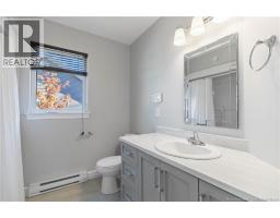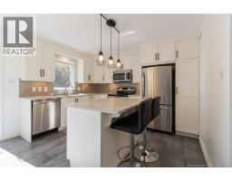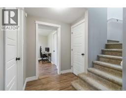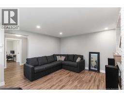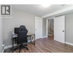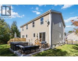 This spacious two-storey semi offers the perfect mix of comfort and convenience in one of Dieppes most sought-after areas. The main floor features a bright living room, a convenient half bath with laundry, and a stylish kitchen with custom cabinetry, center island, and backsplash, open to the dining area. From here, patio doors lead to a brand-new concrete patio with hot tub and a fully fenced, private backyard. Upstairs, youll find a large primary bedroom, two additional bedrooms, and a full bathroom. The finished basement adds even more living space with a cozy family room complete with custom fireplace wall and built-ins, plus an extra bedroom, rough-in for another bath, and storage. Recent updates include: 3 mini-split heat pumps, hot tub, concrete patio, and fresh paint. Additional features: double paved driveway, landscaped lot, baby barn with roll-up door, and central vac. (id:19018)