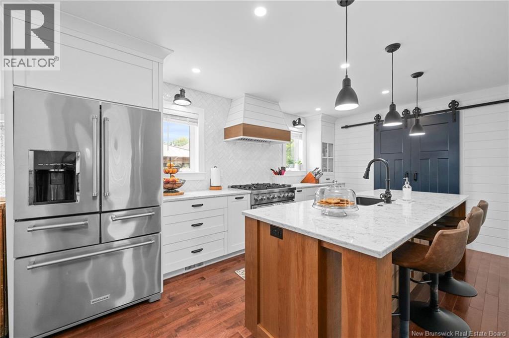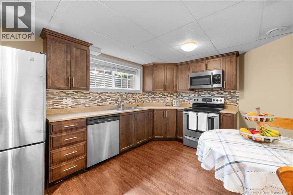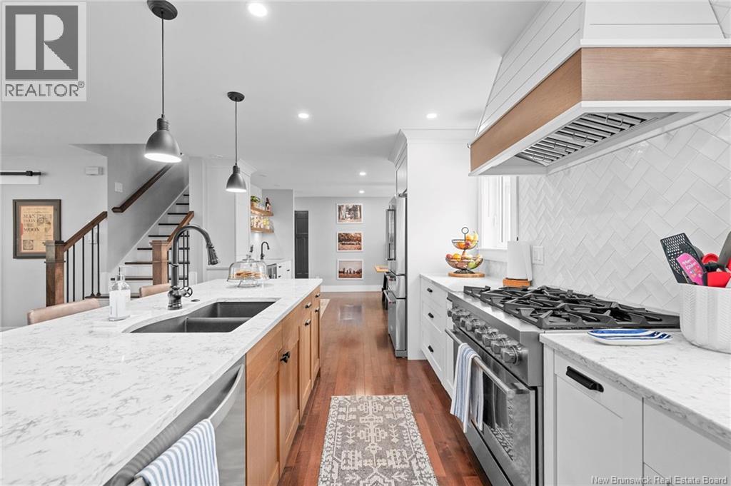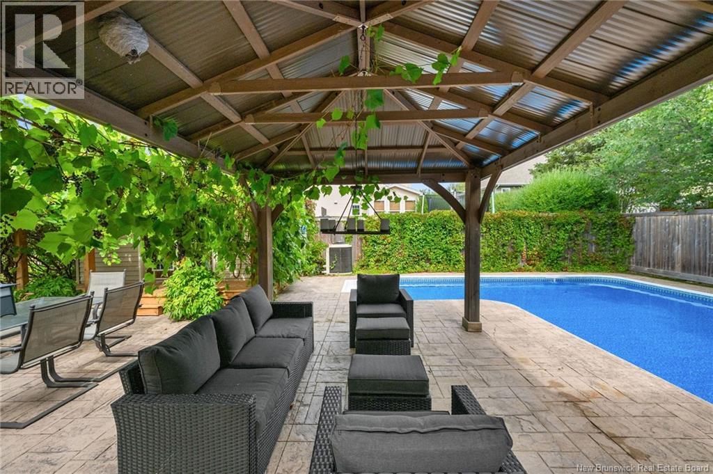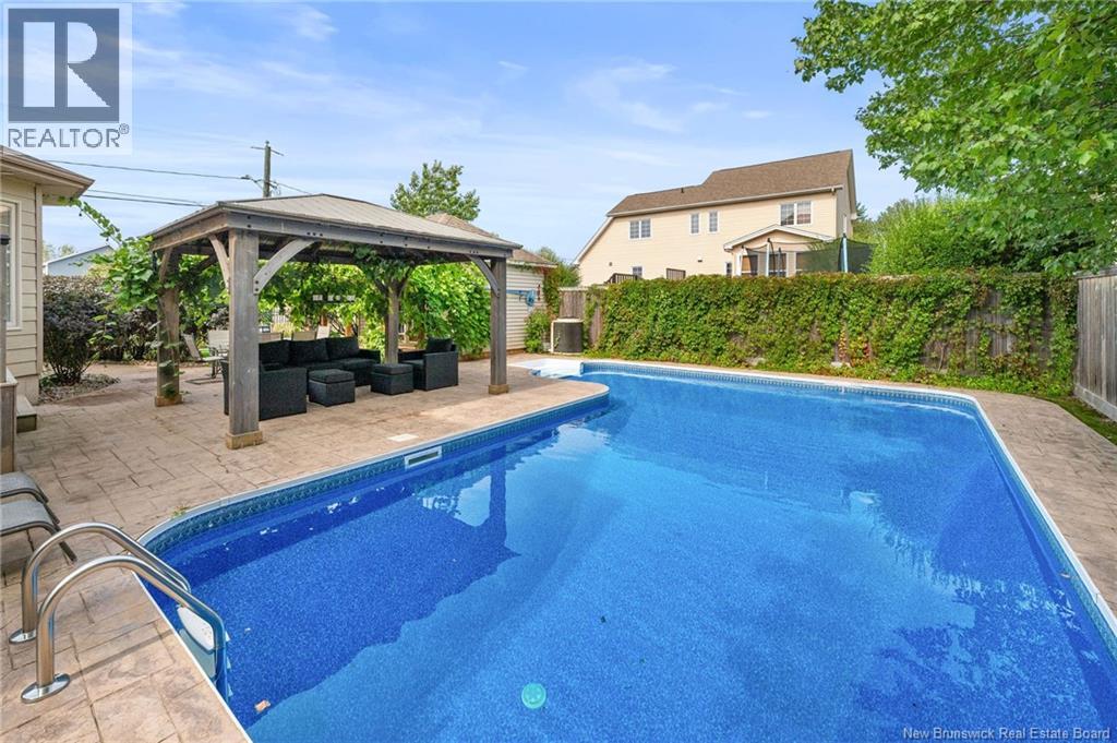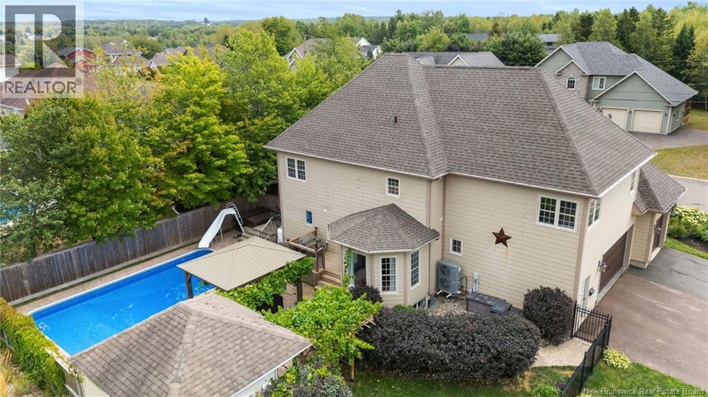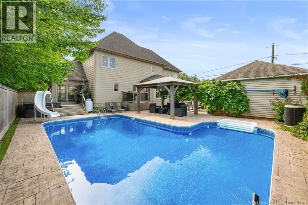 Welcome to 53 Gillespie Street in Dieppe! This exceptional two-storey home with an in-law suite sits on a desirable corner lot near the Petitcodiac River. From first glance, the curb appeal shines with a new front porch and beautiful landscaping. Inside, the main level offers a warm living room with hardwood floors and a propane fireplace with wood storage niches. The recently renovated open kitchen features quartz countertops, a large island, walk-in pantry with sliding barn doors, propane stove, and a shiplap range hood that ties into the white and natural wood design. The dining area includes floor-to-ceiling windows, a coffee bar with wine fridge, and access to the backyard. A cozy 3-season sunroom, half bath, and office complete the main level. Upstairs, the large primary suite boasts a luxurious 5-piece ensuite with double vanity, soaker tub, tiled shower with two detachable heads and a rain shower, plus a spacious walk-in closet. Four additional bedrooms and a 5-piece bath with laundry area finish off the upper floor. The lower level offers a non-conforming bedroom currently used as a gym, and a separate in-law suite with a full kitchen, living room with electric fireplace, bedroom, full bath, and laundry. The private, fully fenced backyard is an absolute oasis with a stamped concrete patio surrounding an in-ground pool, hot tub, gazebo, and 12x16 storage shed. An attached triple car garage (extended in 2020) and a new ducted heat pump (2024) complete this dream home!! (id:19018)