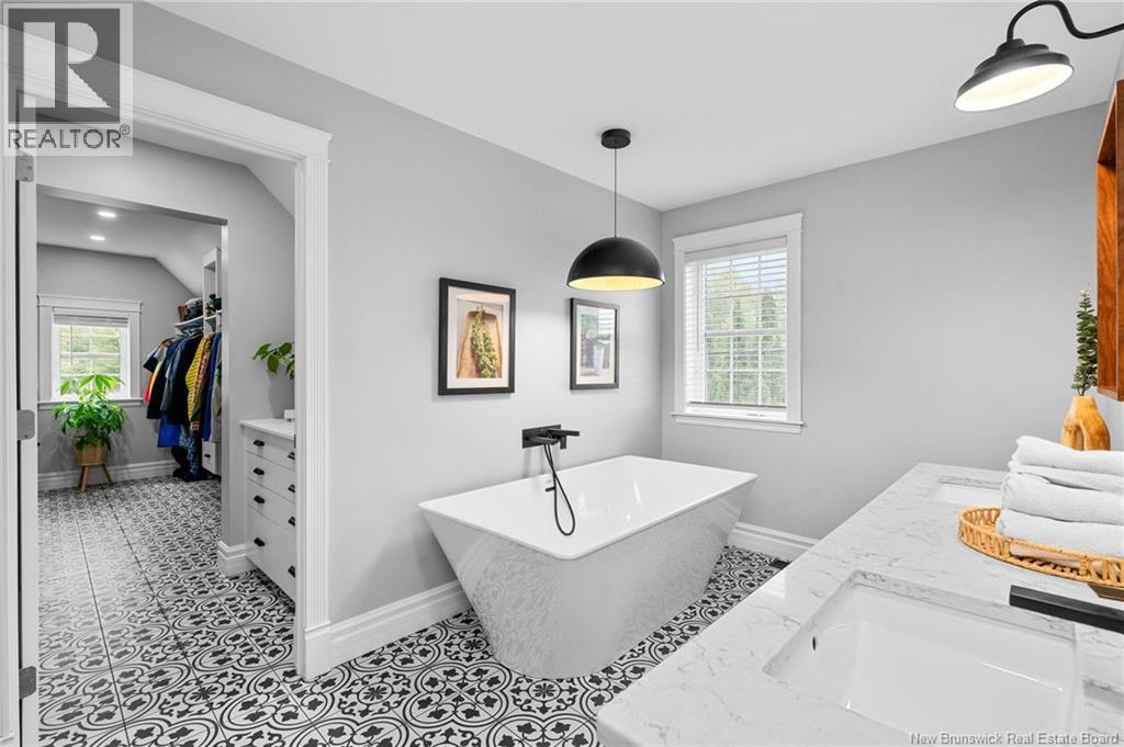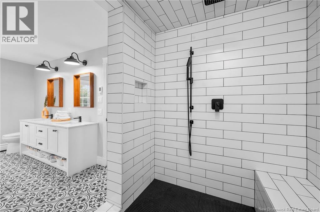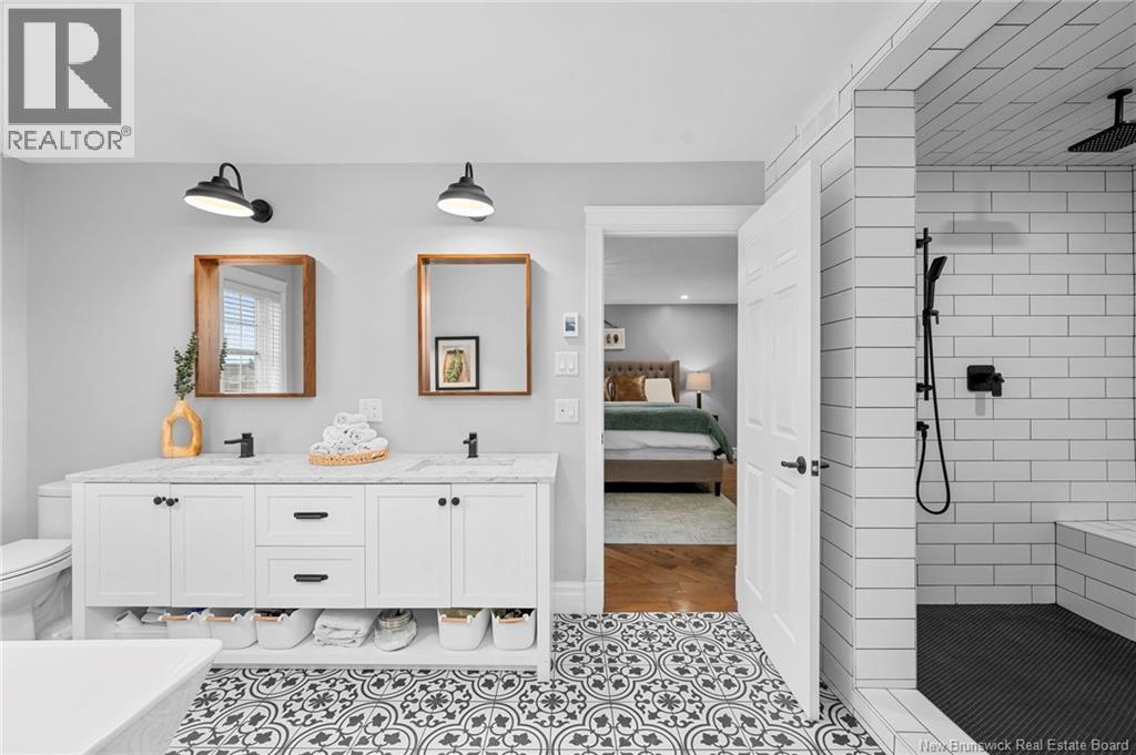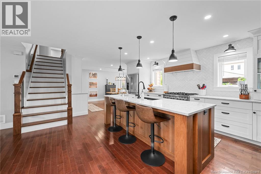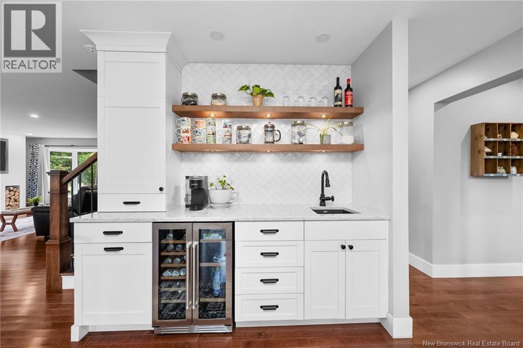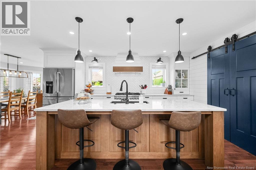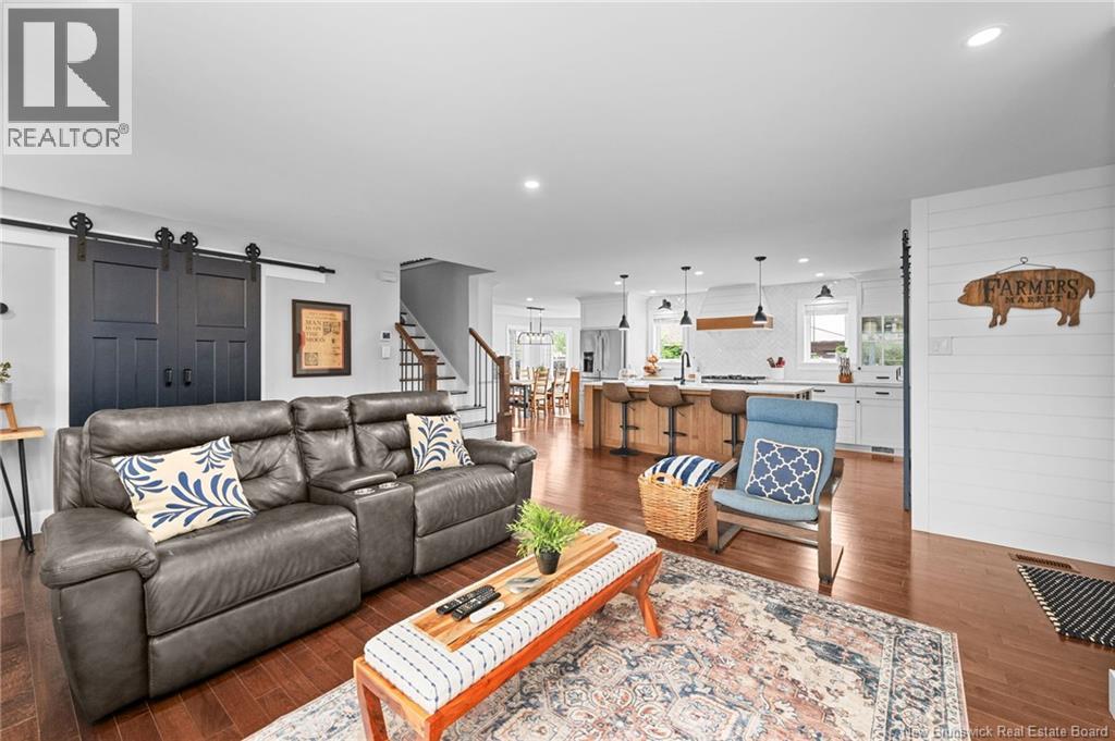 Welcome to 53 Gillespie Street in Dieppe! This exceptional two-storey home with an in-law suite sits on a desirable corner lot near the Petitcodiac River. From first glance, the curb appeal shines with a new front porch and beautiful landscaping. Inside, the main level offers a warm living room with hardwood floors and a propane fireplace with wood storage niches. The recently renovated open kitchen features quartz countertops, a large island, walk-in pantry with sliding barn doors, propane stove, and a shiplap range hood that ties into the white and natural wood design. The dining area includes floor-to-ceiling windows, a coffee bar with wine fridge, and access to the backyard. A cozy 3-season sunroom, half bath, and office complete the main level. Upstairs, the large primary suite boasts a luxurious 5-piece ensuite with double vanity, soaker tub, tiled shower with two detachable heads and a rain shower, plus a spacious walk-in closet. Four additional bedrooms and a 5-piece bath with laundry area finish off the upper floor. The lower level offers a non-conforming bedroom currently used as a gym, and a separate in-law suite with a full kitchen, living room with electric fireplace, bedroom, full bath, and laundry. The private, fully fenced backyard is an absolute oasis with a stamped concrete patio surrounding an in-ground pool, hot tub, gazebo, and 12x16 storage shed. An attached triple car garage (extended in 2020) and a new ducted heat pump (2024) complete this dream home!! (id:19018)