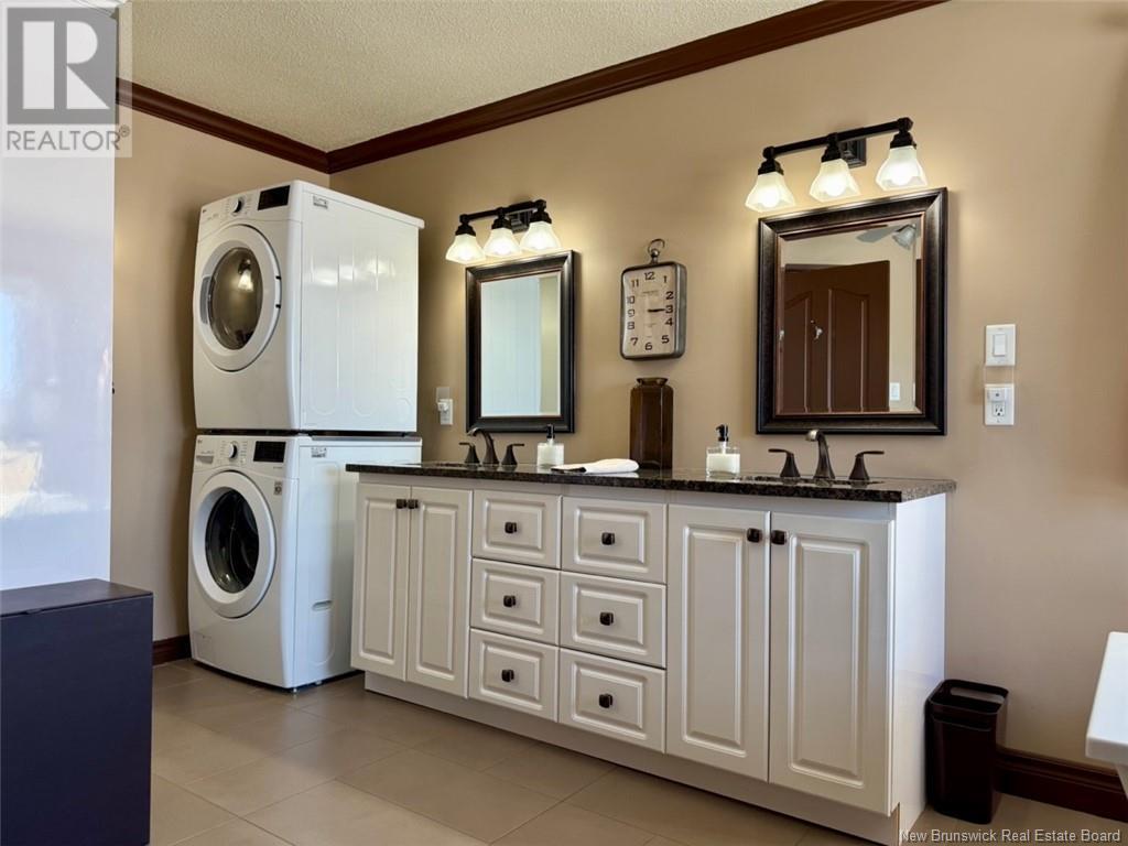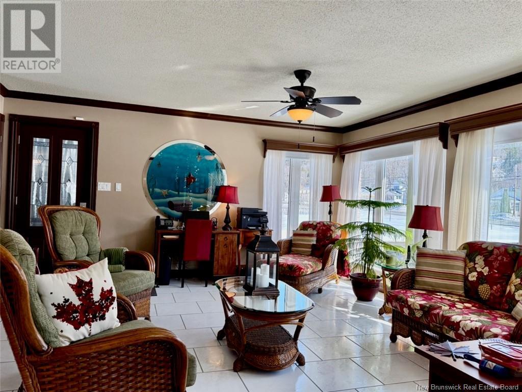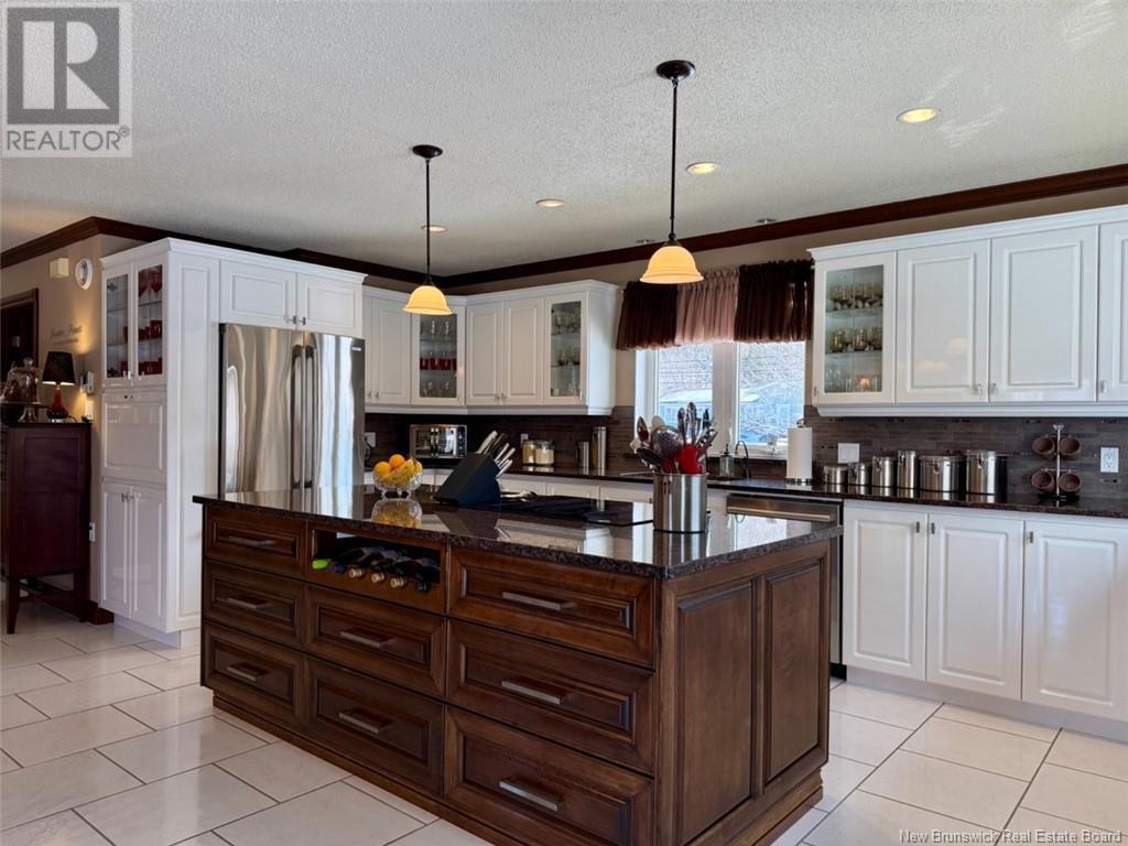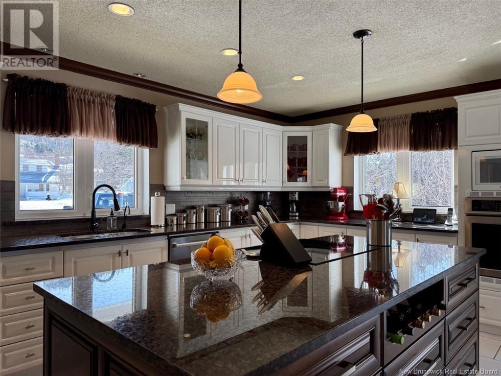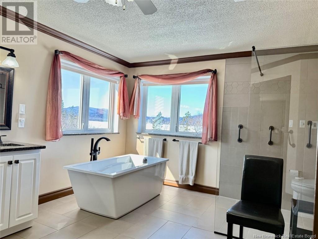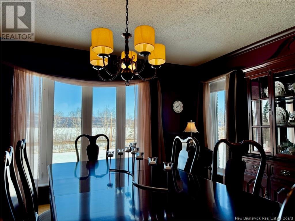 Welcome to 53 Restigouche Drive, Tide Head. Just 10 minutes from Campbellton. This meticulously maintained home is located on a 2.2 acre lot with amazing landscaping and a stunning view of the Restigouche River and Appalachian mountains. It is located next to the NB Trail, great for walking, biking, four wheeling and snowmobiling. The main floor boasts a spacious open concept design, connecting the family room, the living room with a propane fireplace and a large chef kitchen with two ovens and a huge island eating area. The kitchen also gives access to a large aluminum maintenance free patio. A foyer, a formal dining room and a half bath complete the level. The north side of the home is filled with windows to enjoy the panoramic views. Upstairs, the expansive master suite uses the entire floor and includes an extra large walk-in closet and a newly renovated ensuite with convenient washer and dryer. The lower level features a family room with a wood stove, a bedroom, a bathroom, a laundry area, two additional rooms, a storage room, mechanical room and an extra storage space. A paved circular driveway leads to the attached double door garage which has epoxy floor finish, metal siding on ceiling and walls and has a sink and washer. Additional features include: a geothermal heat pump system with its own well, a standby generator system, a water softener, a on demand boiling water on the kitchen sink, a central vac and a home alarm system. The metal roof was installed in 2023. (id:19018)