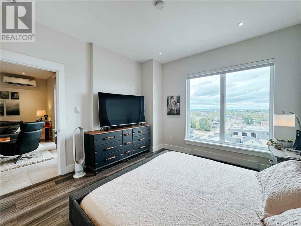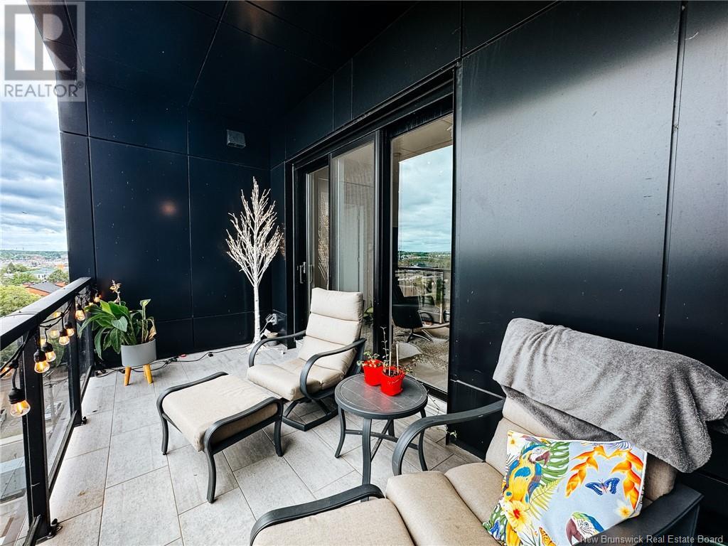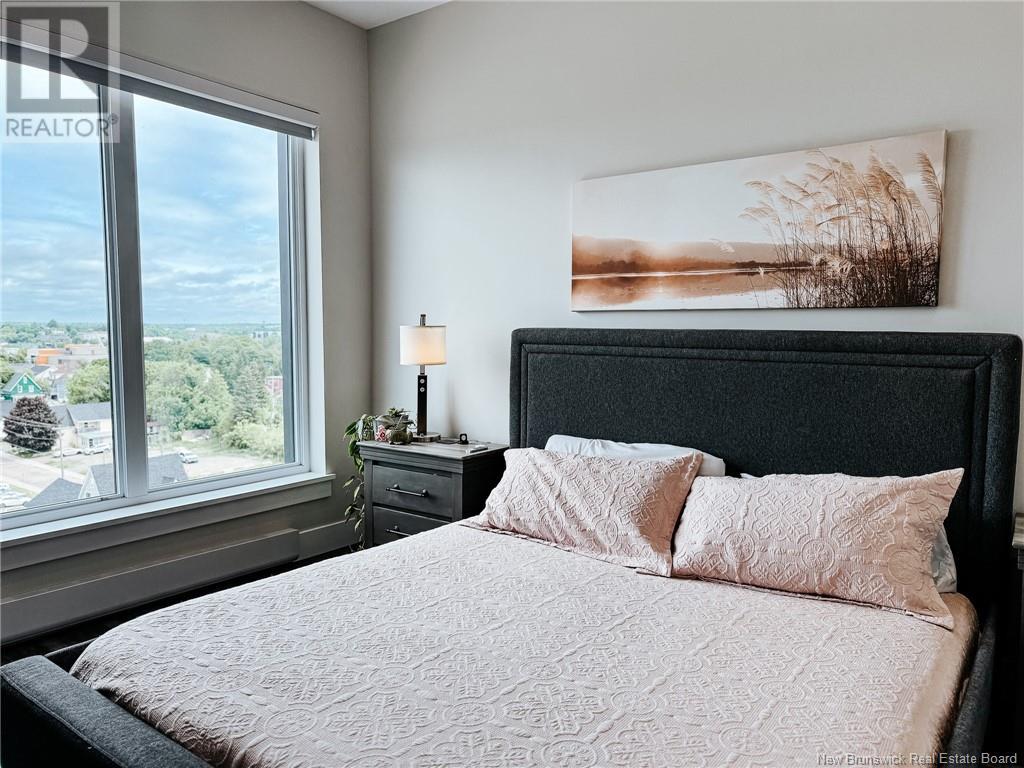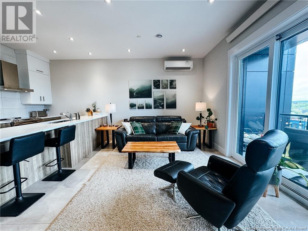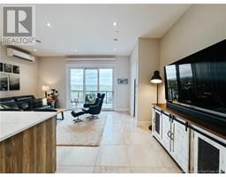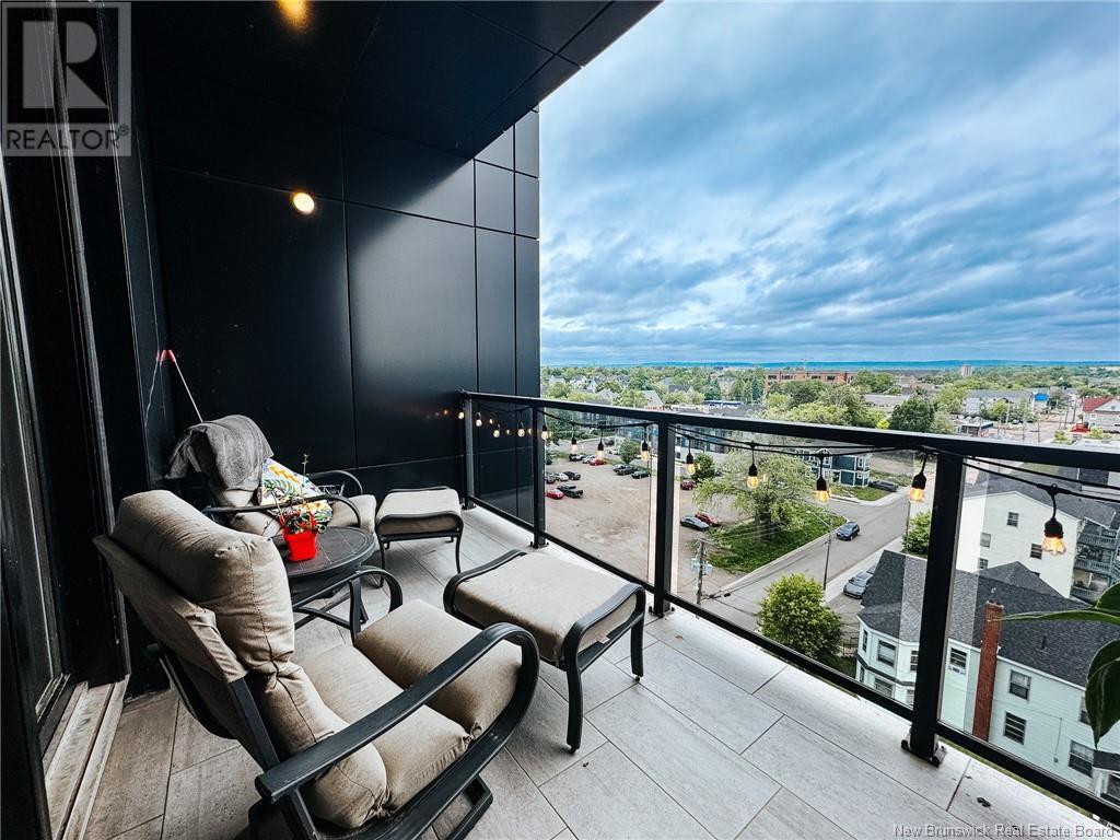Welcome to 55 Queen, where urban sophistication meets effortless convenience. This stunning penthouse condo offers 975 square feet of impeccably designed living space, featuring soaring 10-foot ceilings, 1 spacious bedroom, a versatile den, and 1.5 bathrooms. With bright north-facing exposure and a private balcony, you'll enjoy beautiful city views from the comfort of your home. Included is one underground parking space with additional storage, along with access to a 24-hour secure Training Center. Unwind on the interior or exterior rooftop terrace, perfect for socializing or relaxing while taking in some of the best views in town. Situated in one of Moncton's most desirable developments, you'll be steps away from premium amenities including the Gahan House Restaurant, the chic Palette Rooftop Bar, Bar55 cafe and Canvas Hotel located on floors 2 through 4. This is more than a home, it's a lifestyle. Experience the best in downtown luxury living. Take the 3D tour or contact your REALTOR® today to book a private showing. Property taxes are based on ""non-owner"" occupied. (id:19018)