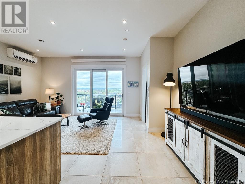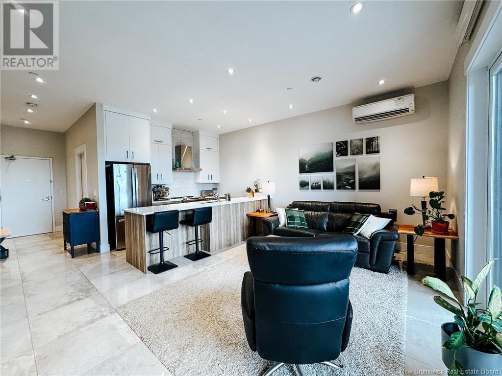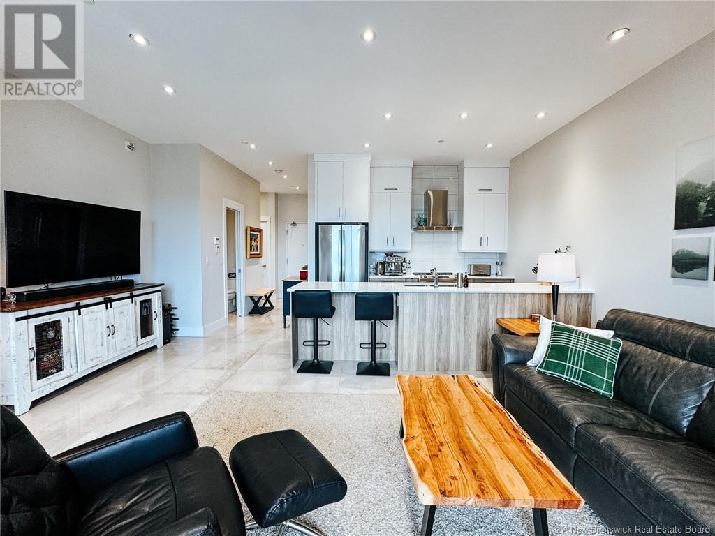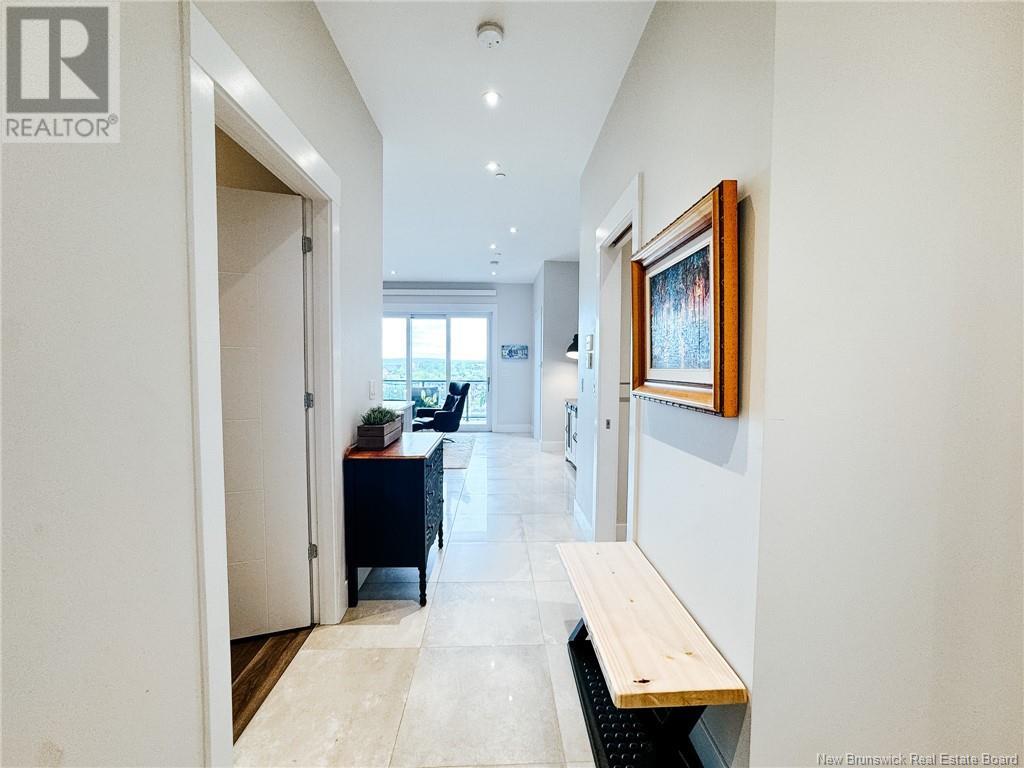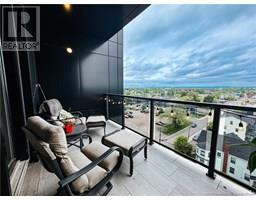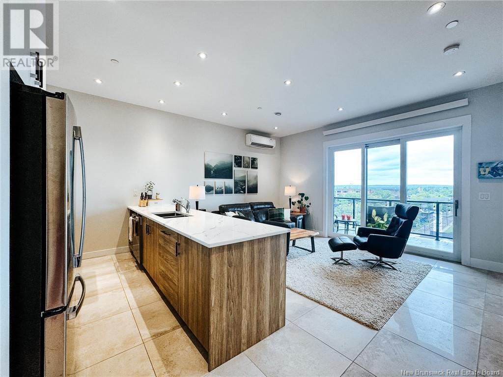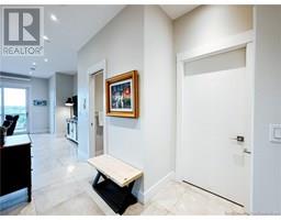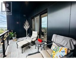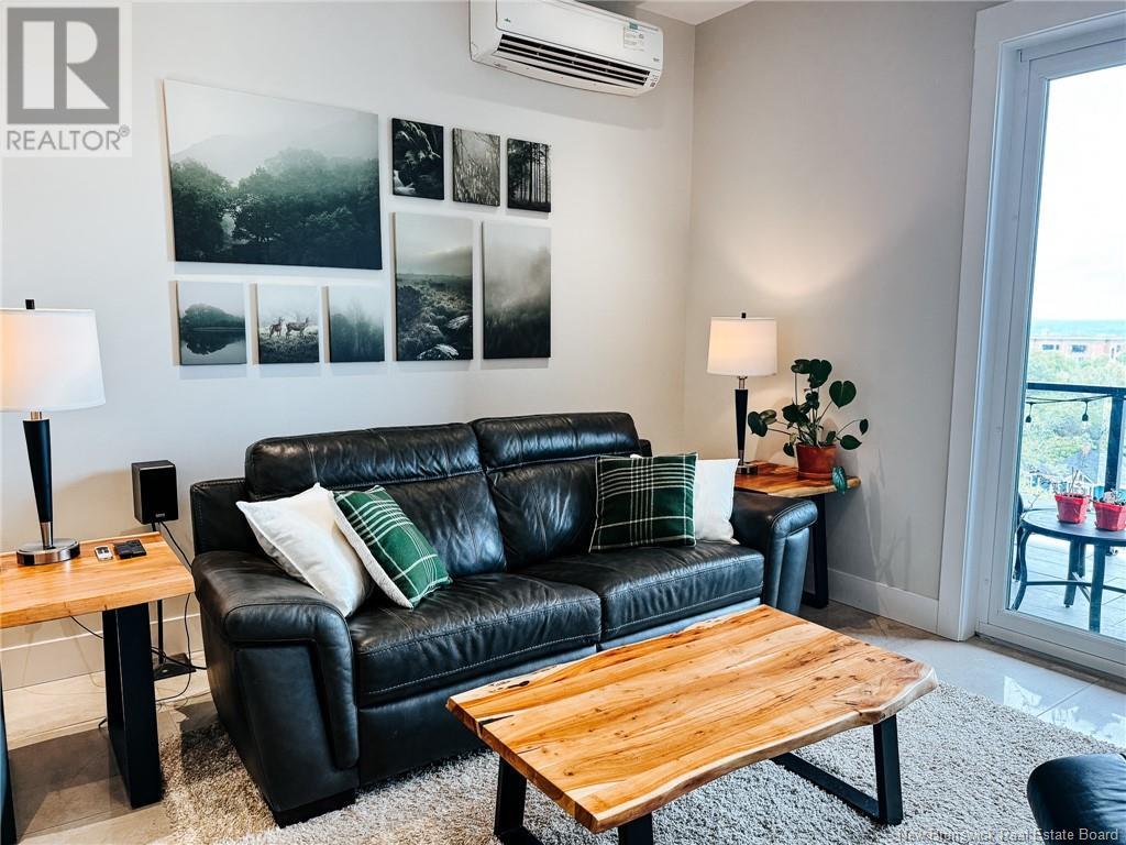 Welcome to 55 Queen, where urban sophistication meets effortless convenience. This stunning penthouse condo offers 975 square feet of impeccably designed living space, featuring soaring 10-foot ceilings, 1 spacious bedroom, a versatile den, and 1.5 bathrooms. With bright north-facing exposure and a private balcony, you'll enjoy beautiful city views from the comfort of your home. Included is one underground parking space with additional storage, along with access to a 24-hour secure Training Center. Unwind on the interior or exterior rooftop terrace, perfect for socializing or relaxing while taking in some of the best views in town. Situated in one of Moncton's most desirable developments, you'll be steps away from premium amenities including the Gahan House Restaurant, the chic Palette Rooftop Bar, Bar55 cafe and Canvas Hotel located on floors 2 through 4. This is more than a home, it's a lifestyle. Experience the best in downtown luxury living. Take the 3D tour or contact your REALTOR® today to book a private showing. Property taxes are based on ""non-owner"" occupied. (id:19018)