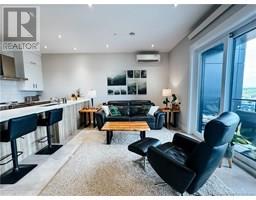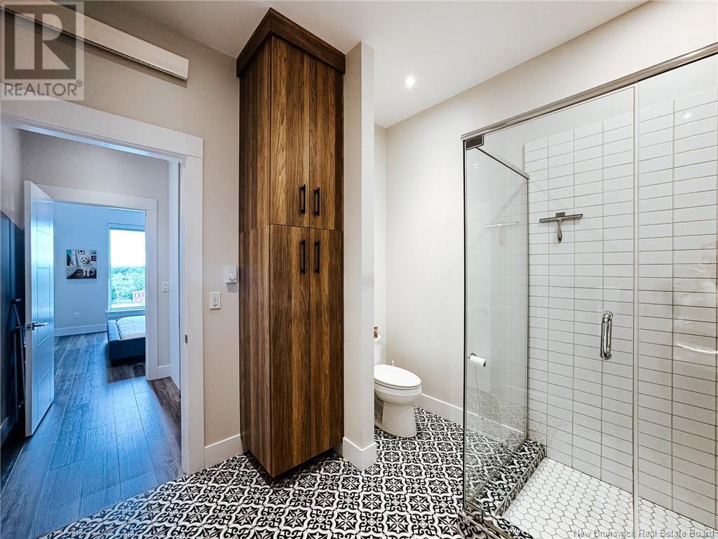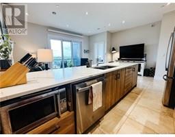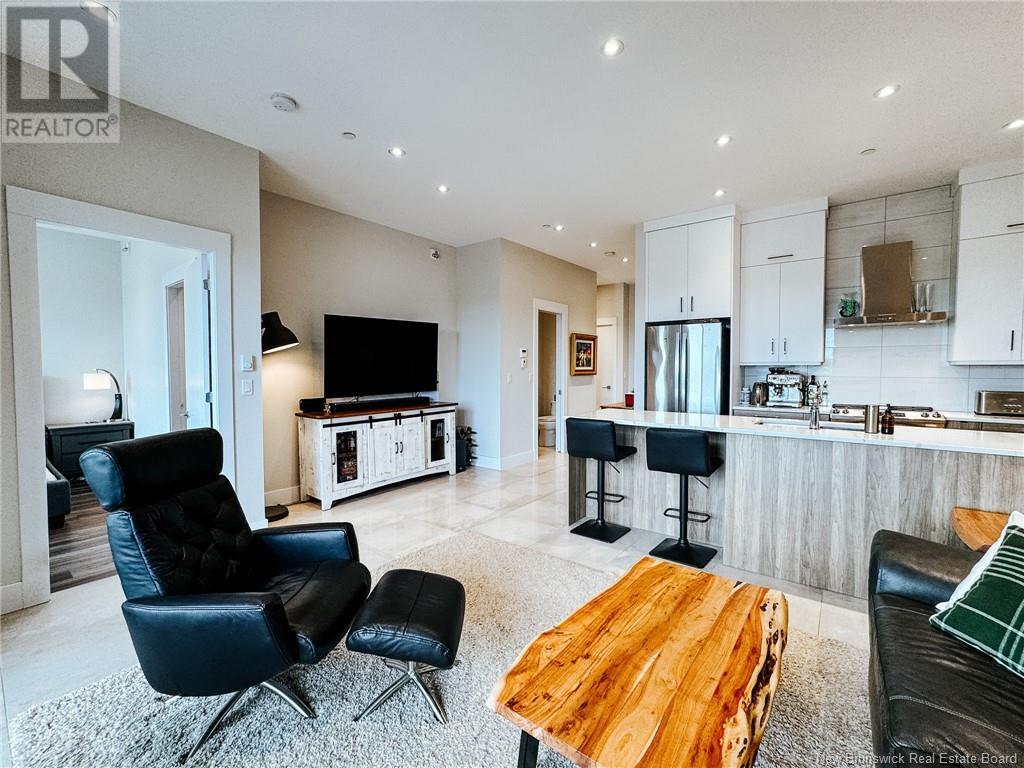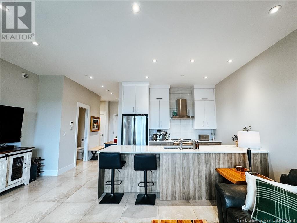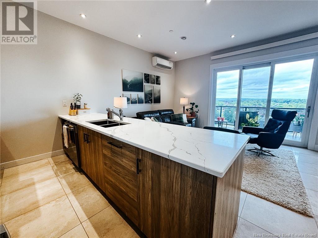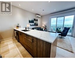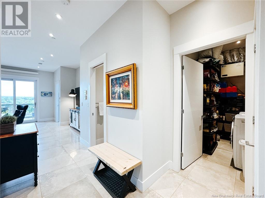 Welcome to 55 Queen, where urban sophistication meets effortless convenience. This stunning penthouse condo offers 975 square feet of impeccably designed living space, featuring soaring 10-foot ceilings, 1 spacious bedroom, a versatile den, and 1.5 bathrooms. With bright north-facing exposure and a private balcony, you'll enjoy beautiful city views from the comfort of your home. Included is one underground parking space with additional storage, along with access to a 24-hour secure Training Center. Unwind on the interior or exterior rooftop terrace, perfect for socializing or relaxing while taking in some of the best views in town. Situated in one of Moncton's most desirable developments, you'll be steps away from premium amenities including the Gahan House Restaurant, the chic Palette Rooftop Bar, Bar55 cafe and Canvas Hotel located on floors 2 through 4. This is more than a home, it's a lifestyle. Experience the best in downtown luxury living. Take the 3D tour or contact your REALTOR® today to book a private showing. Property taxes are based on ""non-owner"" occupied. (id:19018)