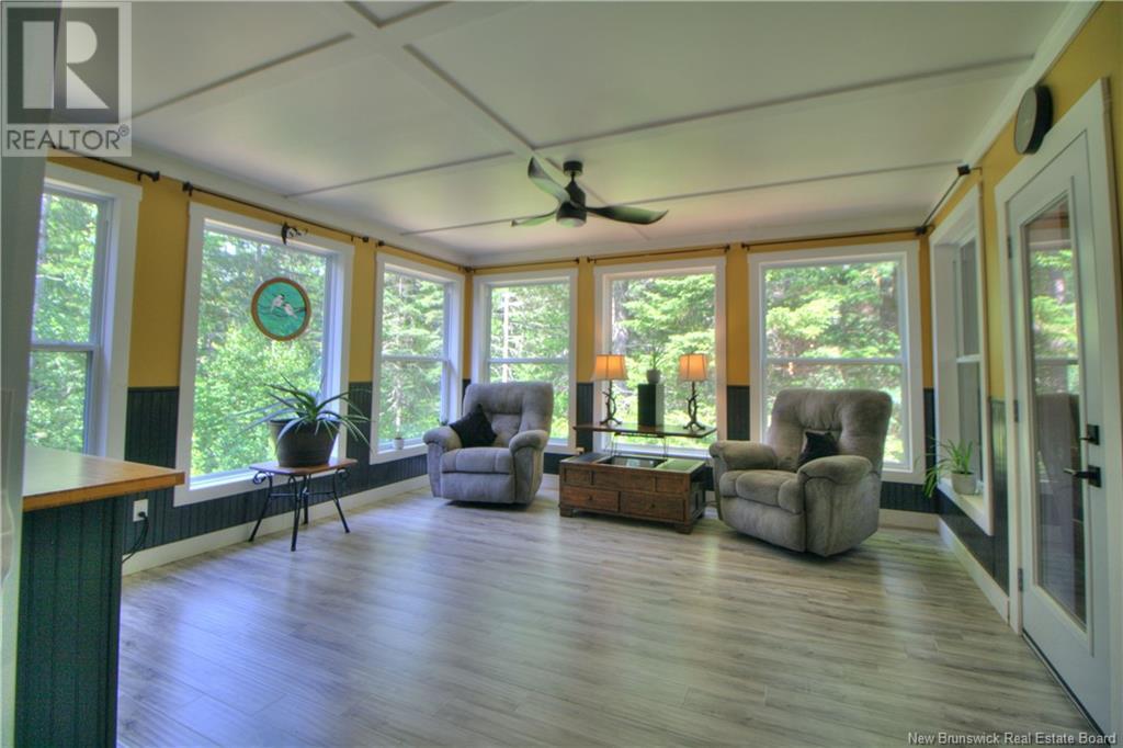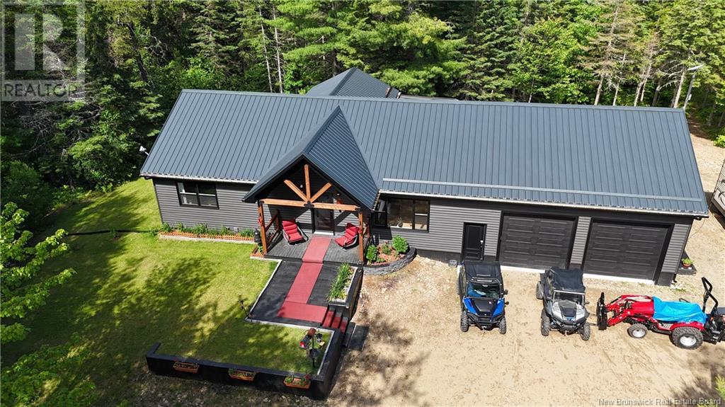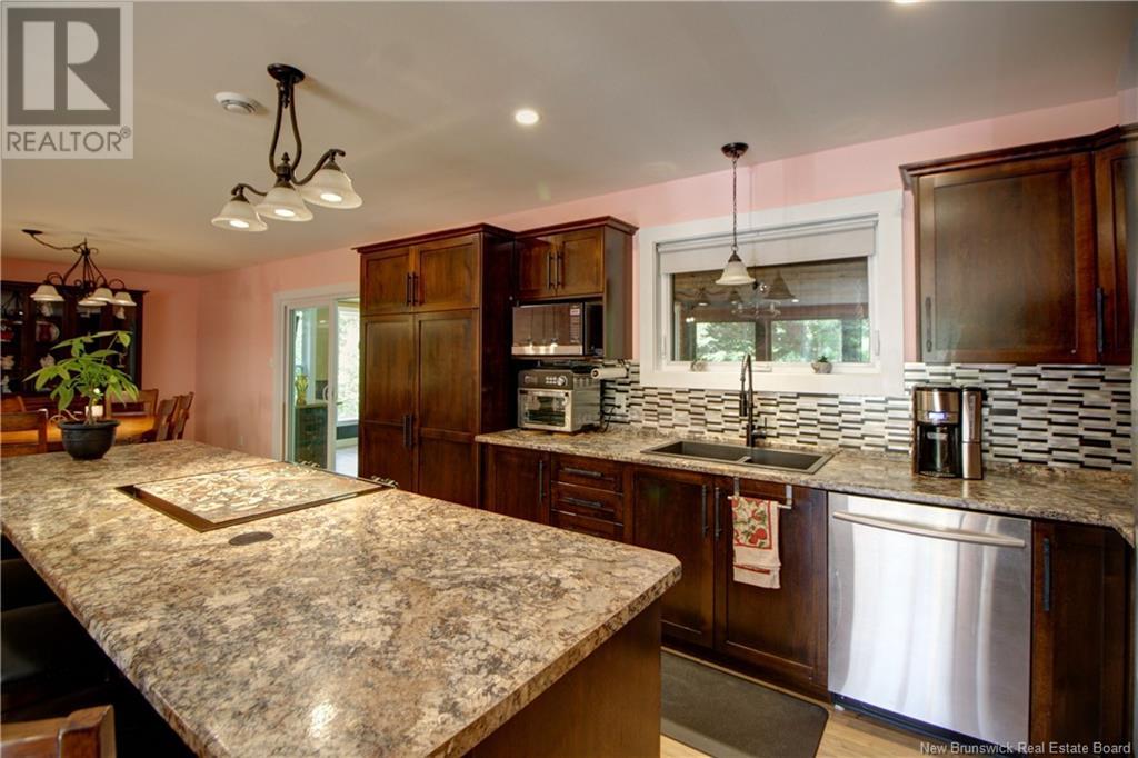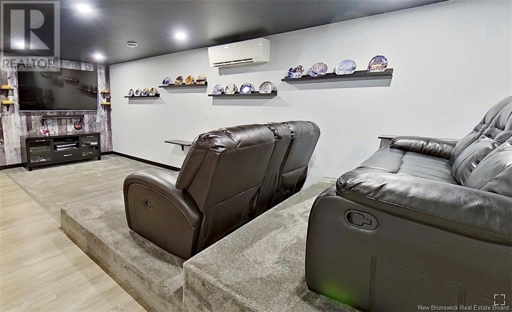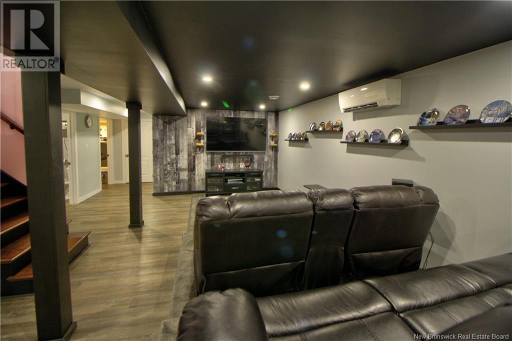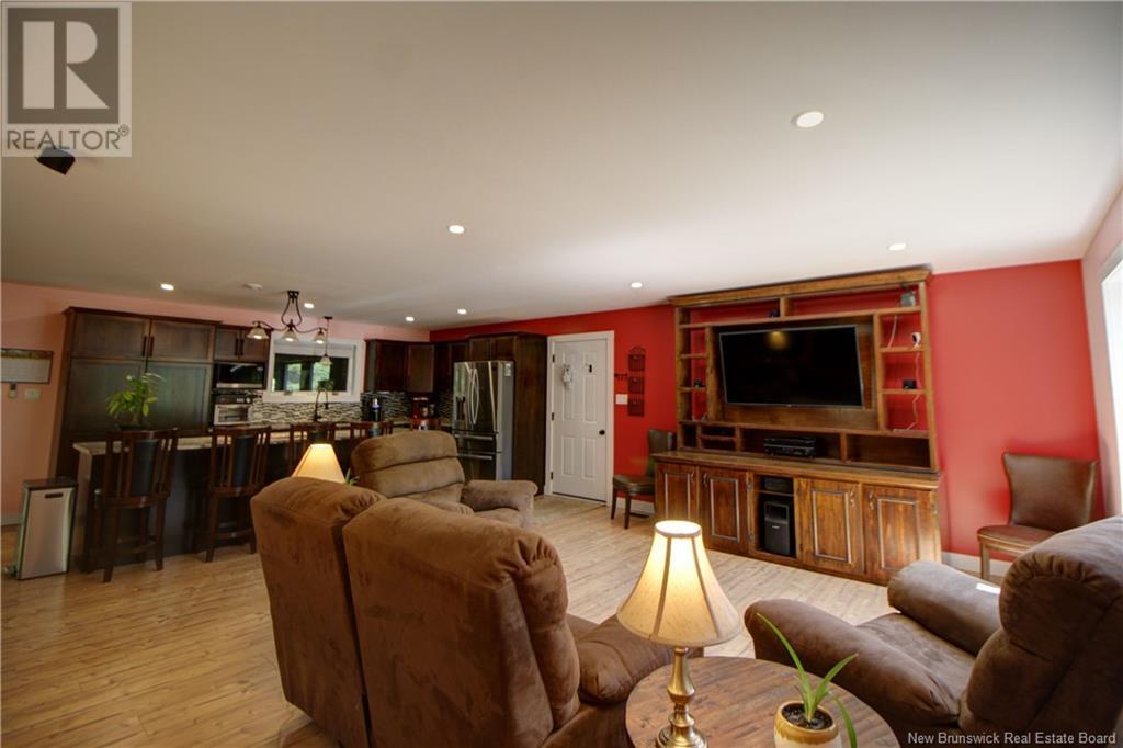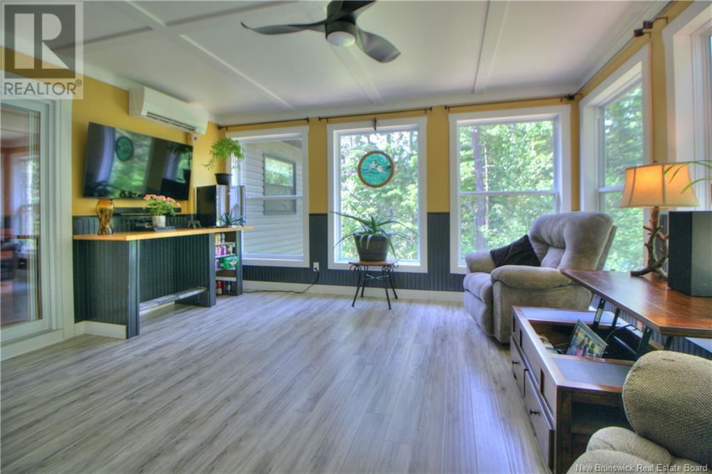 Welcome to this beautiful, move-in ready home built in 2018, perfectly nestled on a private 3-acre treed lot in Targettville, NB. The bright, open-concept layout features a spacious living room flowing into the stunning kitchen and dining area. The kitchen is a showstopper with an oversized island, wide cabinets, and loads of storageperfect for entertaining. The main floor offers two bedrooms, including the primary bedroom with direct access to the bathroom, featuring a relaxing jetted tub, walk-in shower, and a custom walk-in closet with built-in shelving. Off the dining area, step into the inviting sunroombeautifully designed with large windows, ideal for enjoying your peaceful surroundings. Off the sunrooms is a lovely 3 season room you will love. Wooden ceilings hanging swing and all set for summer evenings. The lower level is fully finished with a fantastic theatre room, cozy family room, a dedicated dart area, third bedroom, full 4-piece bath, storage room, utility room, and a beautifully designed laundry space with countertop, hanging area, and utility sink. This home is equipped with hot water on demand, geothermal heat pump, two mini-split heat pumps, a Generac generator, central vac, stonework accents, and a storage shed. Bonus: direct access to the garage from the basement. Enjoy peace and privacy while being steps away from walking trails to the Targettville Rec Centre. A must-see property! (id:19018)