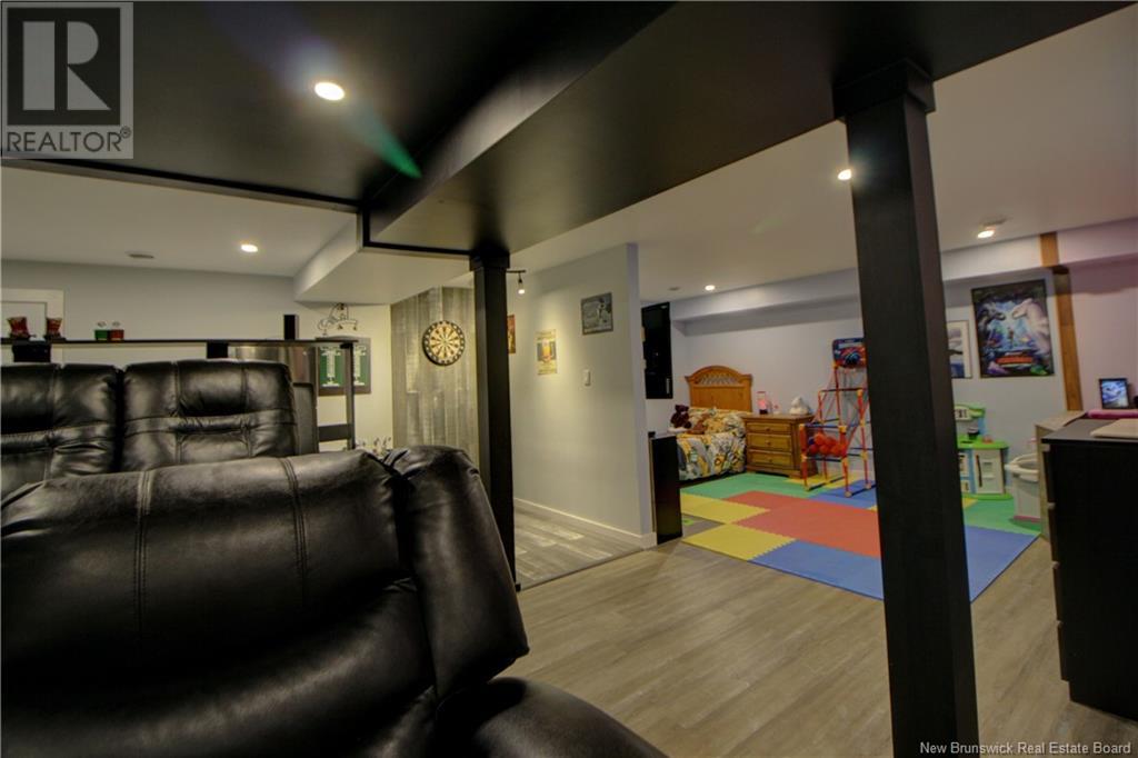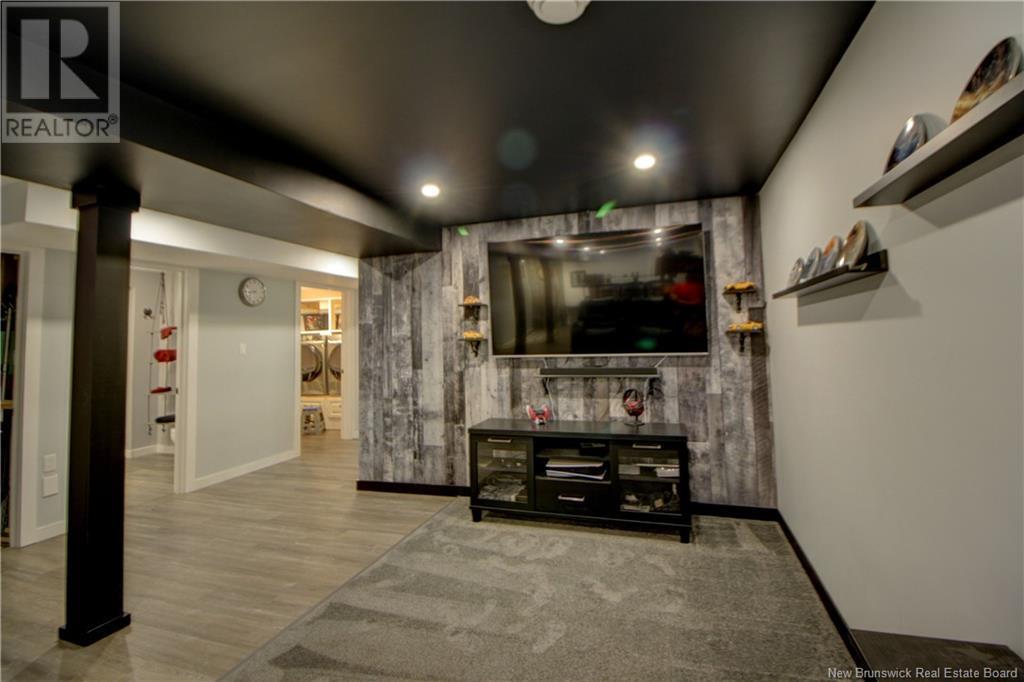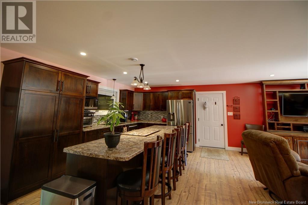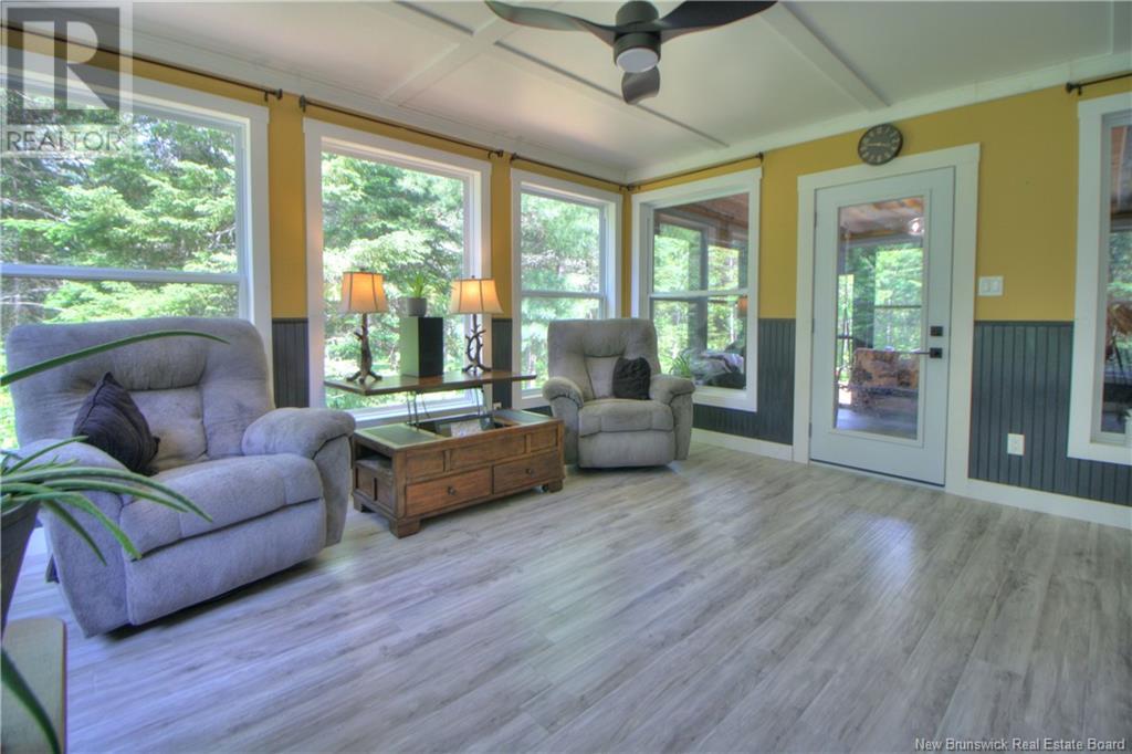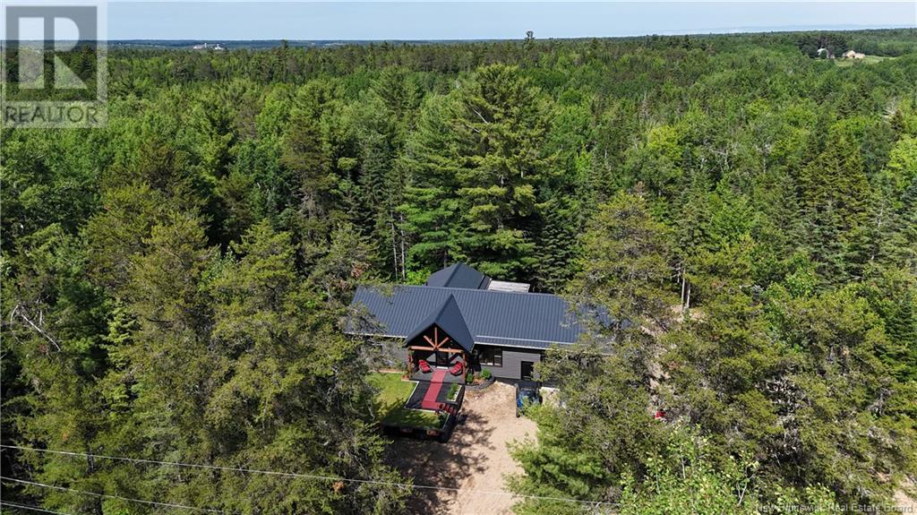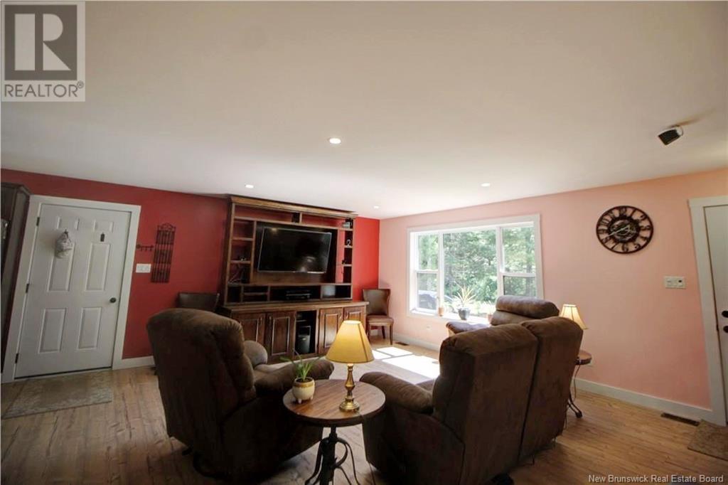Welcome to this beautiful, move-in ready home built in 2018, perfectly nestled on a private 3-acre treed lot in Targettville, NB. The bright, open-concept layout features a spacious living room flowing into the stunning kitchen and dining area. The kitchen is a showstopper with an oversized island, wide cabinets, and loads of storageperfect for entertaining. The main floor offers two bedrooms, including the primary bedroom with direct access to the bathroom, featuring a relaxing jetted tub, walk-in shower, and a custom walk-in closet with built-in shelving. Off the dining area, step into the inviting sunroombeautifully designed with large windows, ideal for enjoying your peaceful surroundings. Off the sunrooms is a lovely 3 season room you will love. Wooden ceilings hanging swing and all set for summer evenings. The lower level is fully finished with a fantastic theatre room, cozy family room, a dedicated dart area, third bedroom, full 4-piece bath, storage room, utility room, and a beautifully designed laundry space with countertop, hanging area, and utility sink. This home is equipped with hot water on demand, geothermal heat pump, two mini-split heat pumps, a Generac generator, central vac, stonework accents, and a storage shed. Bonus: direct access to the garage from the basement. Enjoy peace and privacy while being steps away from walking trails to the Targettville Rec Centre. A must-see property! (id:19018)