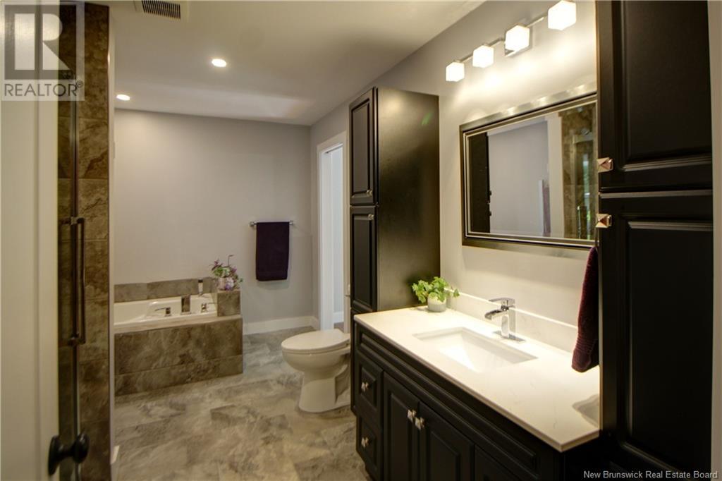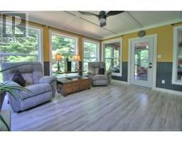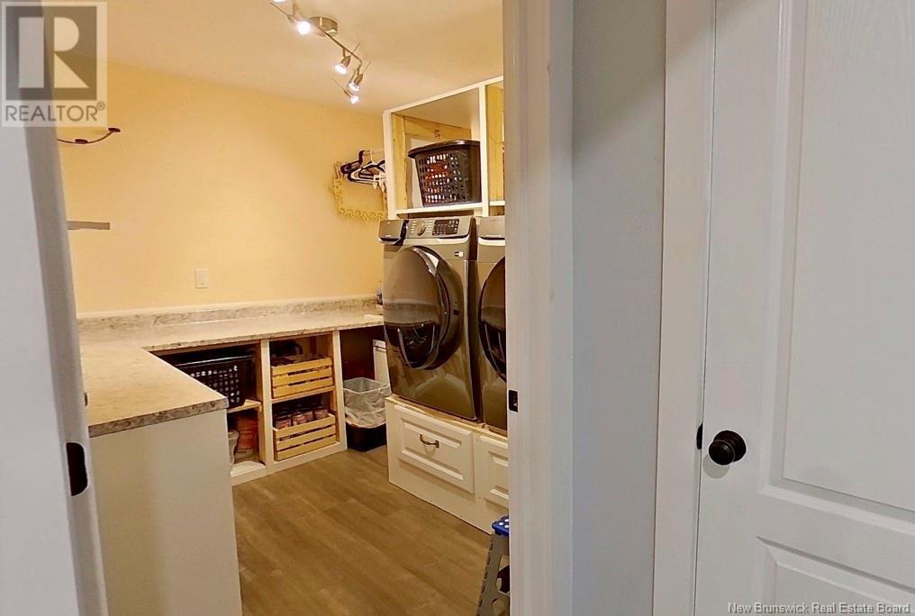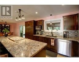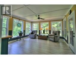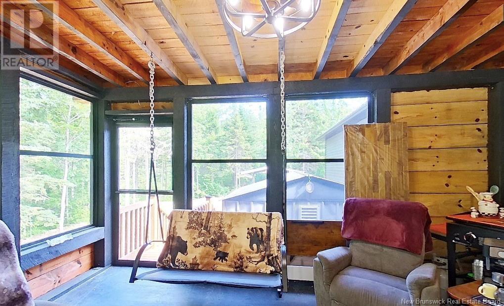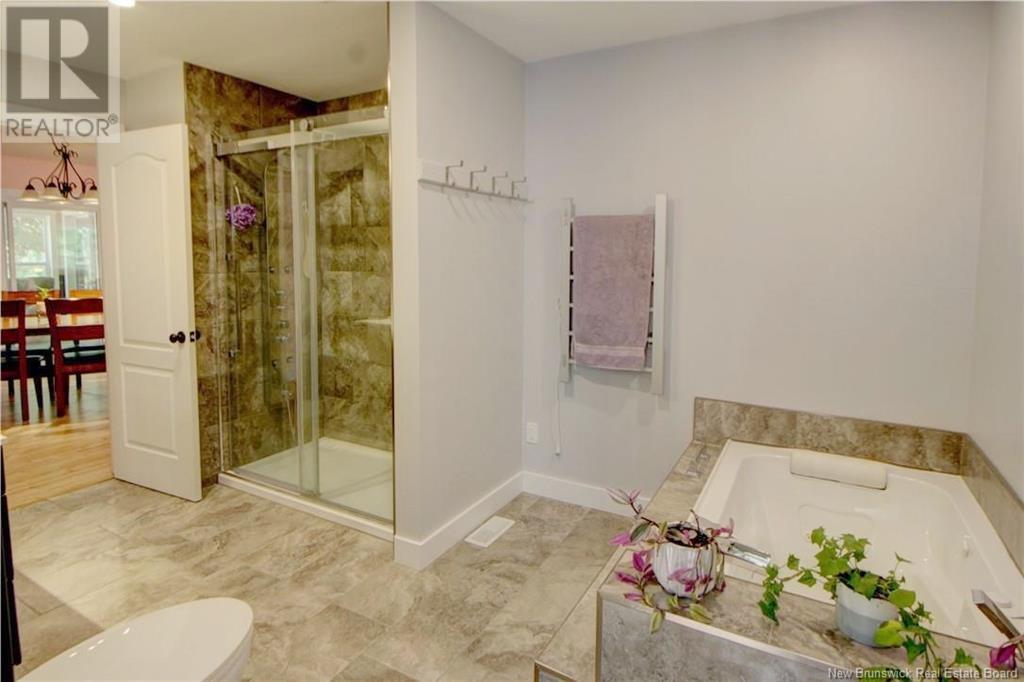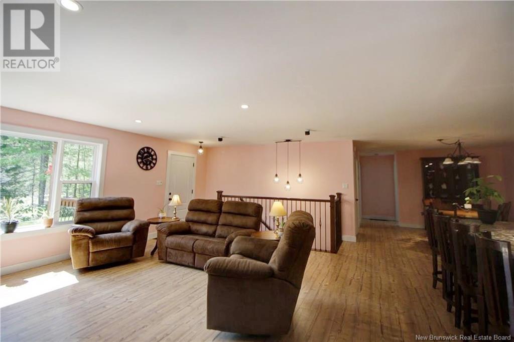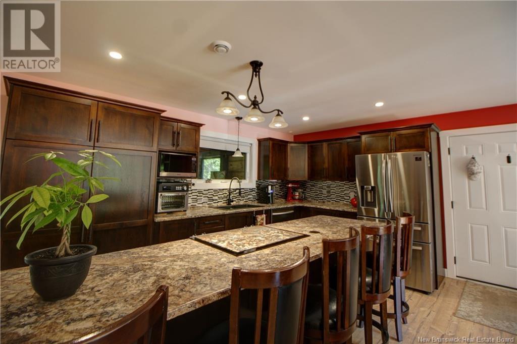 Welcome to this beautiful, move-in ready home built in 2018, perfectly nestled on a private 3-acre treed lot in Targettville, NB. The bright, open-concept layout features a spacious living room flowing into the stunning kitchen and dining area. The kitchen is a showstopper with an oversized island, wide cabinets, and loads of storageperfect for entertaining. The main floor offers two bedrooms, including the primary bedroom with direct access to the bathroom, featuring a relaxing jetted tub, walk-in shower, and a custom walk-in closet with built-in shelving. Off the dining area, step into the inviting sunroombeautifully designed with large windows, ideal for enjoying your peaceful surroundings. Off the sunrooms is a lovely 3 season room you will love. Wooden ceilings hanging swing and all set for summer evenings. The lower level is fully finished with a fantastic theatre room, cozy family room, a dedicated dart area, third bedroom, full 4-piece bath, storage room, utility room, and a beautifully designed laundry space with countertop, hanging area, and utility sink. This home is equipped with hot water on demand, geothermal heat pump, two mini-split heat pumps, a Generac generator, central vac, stonework accents, and a storage shed. Bonus: direct access to the garage from the basement. Enjoy peace and privacy while being steps away from walking trails to the Targettville Rec Centre. A must-see property! (id:19018)