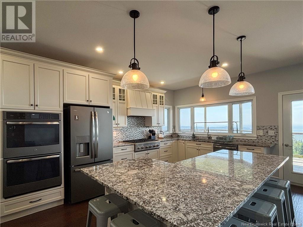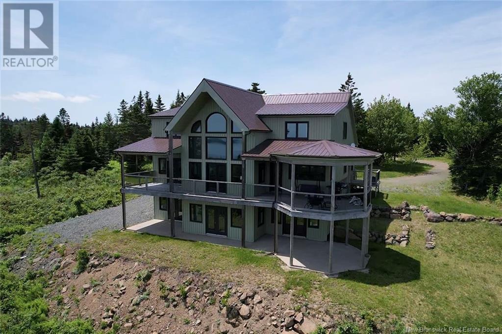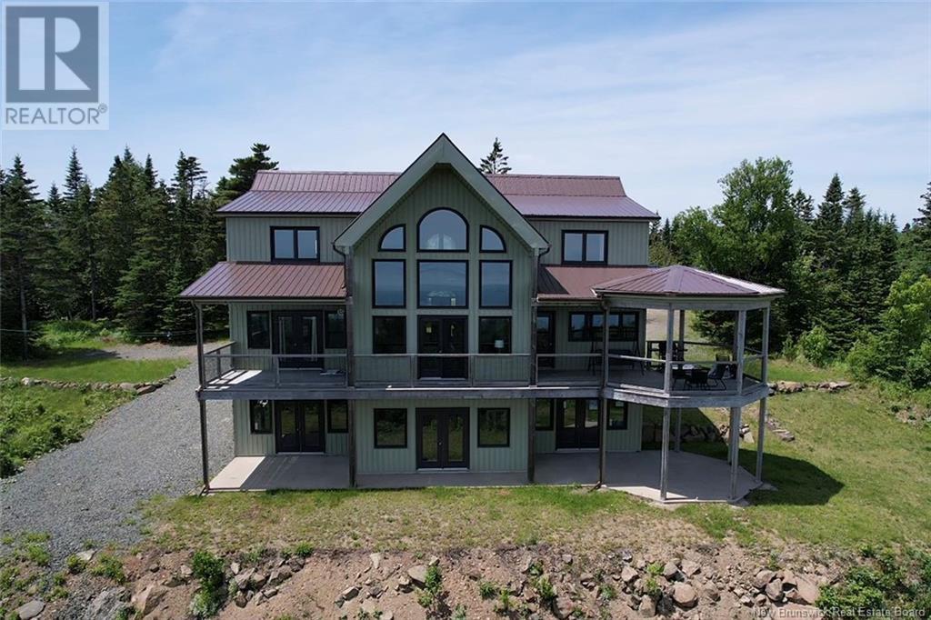 CHECK OUT THIS STUNNING HILLTOP GRAND MANAN HOME. PERCHED AT THE TOP OF OHIO POND ROAD AND SITTING ON A PRIVATE AND SCENIC 6+ ACRES, THIS EXECUTIVE HOME IS A RARE OPPORTUNITY FOR ASPIRING ISLAND BUYERS. THE SPACIOUS MAIN FLOOR (AND TRUE ""HUB"" OF THE HOME) IS A SHOW STOPPER WITH CUSTOM HIGH-END CONTEMPORARY FINISHES, VAULTED CEILINGS, CUSTOM WOODWORK AND GORGEOUS FLOOR TO CEILING WINDOWS - HIGHLIGHTING THE IMPRESSIVE OCEAN VIEW. IT'S OBVIOUS THAT WHEN BUILT IN 2018, COMFORT AND LUXURY WERE IN MIND. DURING THE BUILDING PROCESS, MANY STEPS WERE TAKEN TO GUARANTEE THAT ALONG WITH STYLE, THE OWNERS WERE ALSO ACHEIVING LONGEVITY AND EFFICIENCY. HOT WATER IN-FLOOR HEATING IS FOUND ON ALL LEVELS OF THE HOME AND AN IMPRESSIVE LEVEL OF QUALITY INSULATION IS IN THE WALLS AS WELL AS UNDER THE FOUNDATION SLAB. THE PRIMARY BEDROOM OR ""MASTER"" IS CONVENIENTLY LOCATED ON THE MAIN FLOOR AND COMPLETE WITH A FRESH AND BRIGHT ENSUITE AND WALK-IN CLOSET. WITH THE REMAINING 3 BEDROOMS AND SECOND FULL BATHROOM FOUND UPSTAIRS, THERE IS DESIRED SEPARATION FOR ANY FAMILY DYNAMIC - MAKING THE MASTER A TRUE SANCTUARY. THE MASTER ALSO OFFERS PRIVATE ACCESS TO THE DECK THAT SPANS THE LENGTH OF THE HOME. PARTIALLY COVERED AND SPACIOUS FOR ALL OF YOUR OUTDOOR LIVING ASPIRATIONS. THE BASEMENT ALSO OFFERS OPPORTUNITY TO CREATE EVEN MORE LIVING SPACE IF YOU SO DESIRE WITH MULTIPLE EXTERIOR DOORS THAT LEAD OUT TO A COVERED PATIO SPACE. WITH TOO MANY FEATURES TO LIST, THIS PROPERTY IS WORTH SEEING FOR YOURSELF! (id:19018)