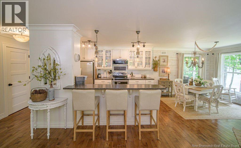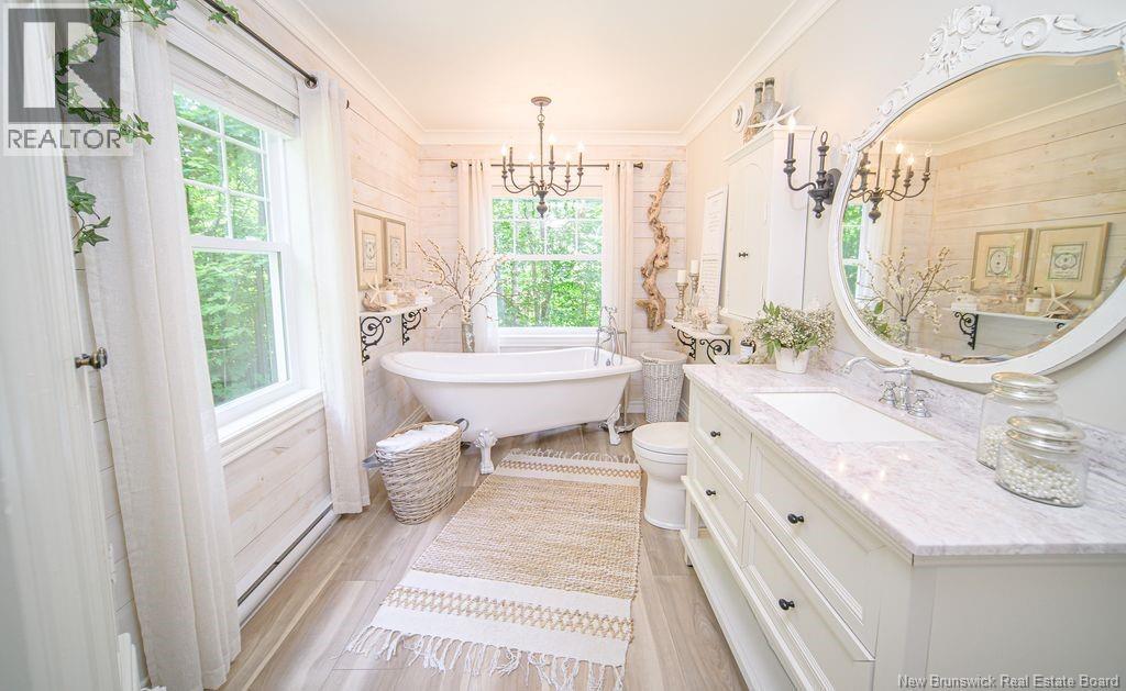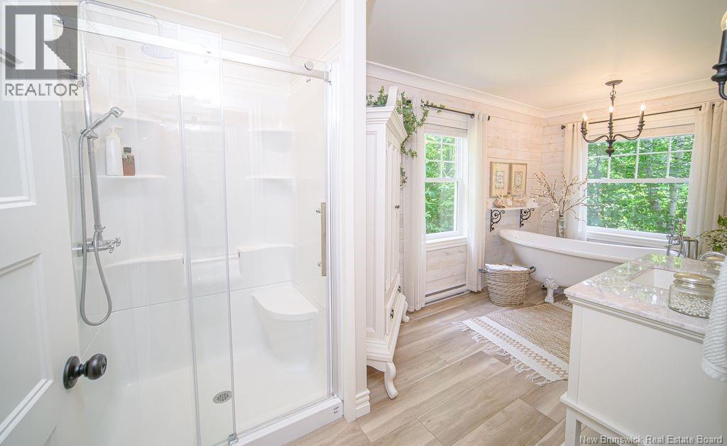 When Viewing This Property On Realtor.ca Please Click On The Multimedia or Virtual Tour Link For More Property Info. Welcome to 601 Southampton. A Cape Cod-style home that blends riverfront elegance with rustic charm. Nestled on 166ft of water frontage along the Saint John River, 45 mins to Fredricton, this home offers tranquility and exclusivity. Mature oak trees frame stunning water views visible from nearly every room. The Nantucket-inspired sanctuary features a wraparound porch, cozy covered deck, and a pergola-covered hot tub on the master suite's deck. Stone footpaths lead to a dining deck, a fireplace area, and a river-side deck. A workshop offers space for hobbies or storage. Inside, the open-concept design curated by an interior designer exudes warmth and style. The living room boasts shiplap walls, natural light, and a propane fireplace. The kitchen, dining area, main floor master suite, and laundry provide convenience. A gothic-style staircase leads to the second floor den, two bedrooms, and a three-piece bathroom. Ideal for guests or a growing family. (id:19018)