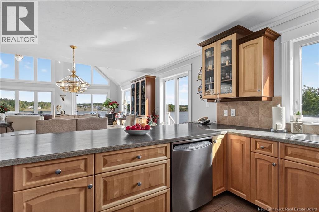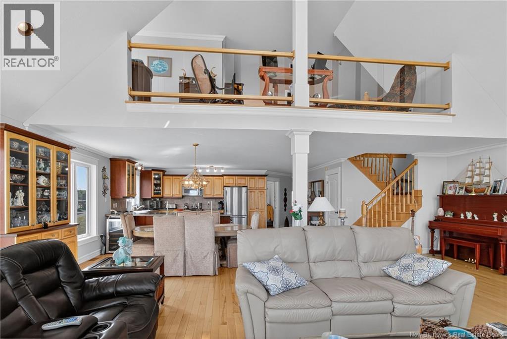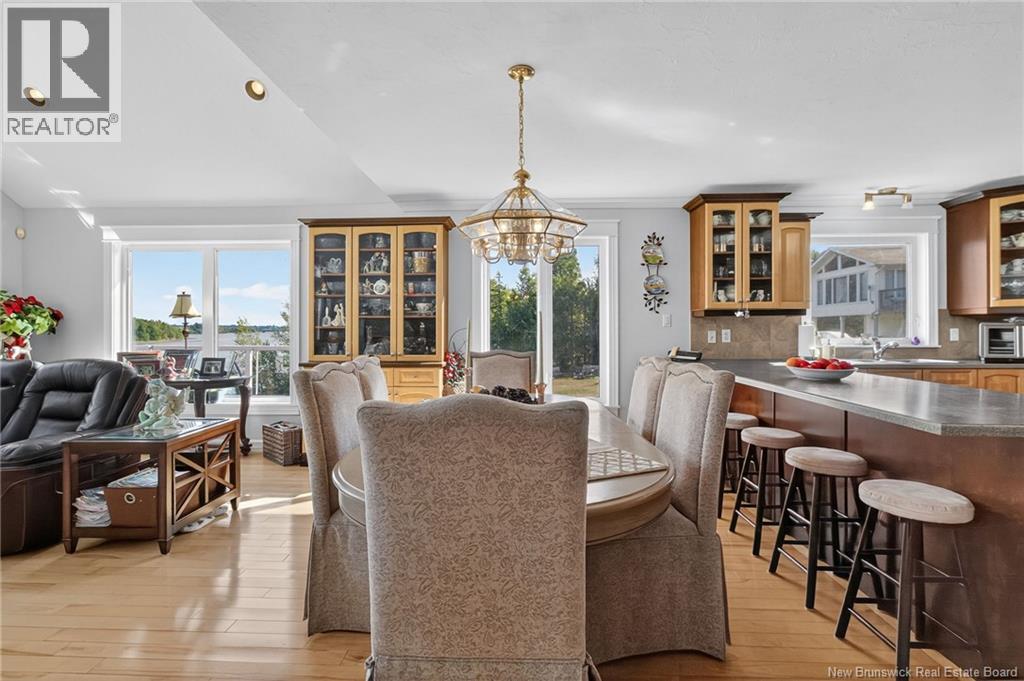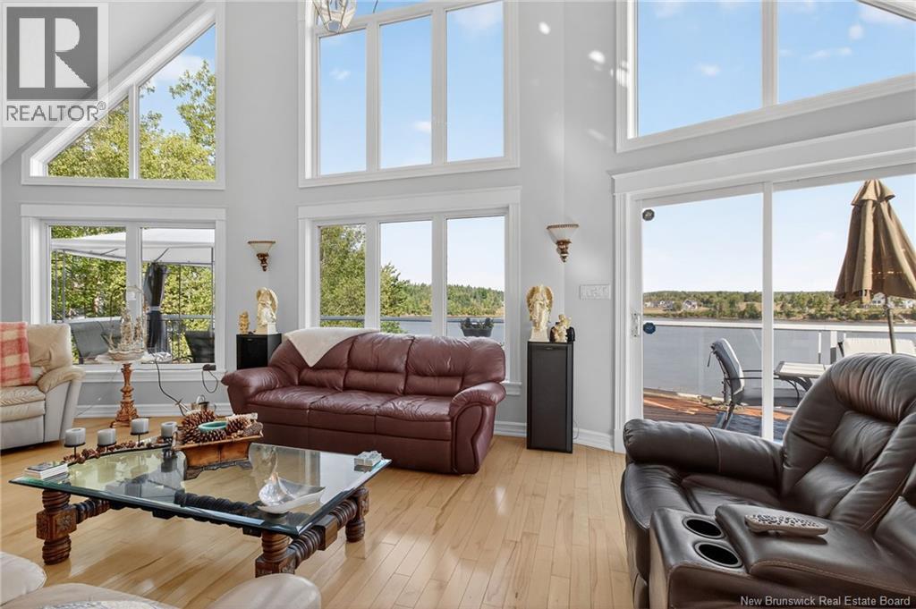 This executive waterfront home offers a rare combination of luxury, privacy, and breathtaking water views in one of the areas most desirable locations. Perfectly positioned on a stunning lot with direct access to a beautiful beach, this property is truly one of a kind. Step inside to an open-concept main floor featuring a gorgeous kitchen, a bright dining area, and a spacious living room with soaring cathedral ceilings and floor-to-ceiling windows that showcase panoramic views of the Bouctouche River. Also on the main level, youll find a large bedroom and a full bathroom with laundry for added convenience. Upstairs, the primary suite is a true retreat, offering sweeping river views, a spa-like ensuite, and space to unwind in complete comfort. The second level also includes another bedroom, ideal for guests or a home office. The walkout basement is fully finished with an in-law suite, complete with its own private entrance and a covered deck where you can enjoy your morning coffee while overlooking the water. Outside, the property continues to impress with a double garage featuring ceramic flooring, a baby barn, and an additional storage shed. Whether youre looking to relax, entertain, or explore, this home provides the peace and tranquility of country living while being close to everything you need. Located just minutes from all amenities, beaches, restaurants, walking trails, and popular tourist attractions, this is a property you must see to truly appreciate. (id:19018)