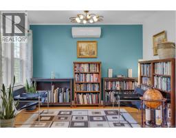 Enter through the bright 4 seasons sunroom, a welcoming entry that can be enjoyed year round. From here, you'll find the main floor laundry area with additional storage and a convenient computer nook, making everyday tasks easy to manage. The gally style kitchen offers efficient workspace and flows directly into the formal dining room, ideal for both meals and entertaining. The dinning area connects seamlessly to the main living room, creating an open feeling between central living spaces. Off the living room a cozy nook is currently set up as a library or reading area. On the other side of the front foyer step into the den, featuring a wood burning fireplace (WETT Certified) that adds warmth and comfort. Down the hall, you'll find the full bathroom and access to the staircase leading to the upper level. Upstairs you will find three bedrooms and a newly renovated half bath. The unfinished basement provides a blank canvas for additional living, storage or a hobby space if desired. The property sits on a corner lot offering mature hedges for added privacy, perennial flowers include roses & lilacs completed with the single car garage. Recent upgrades bring peace of mind, including new electric heat and updated wiring, 14 Koehler windows, vinyl siding, flooring, exterior & interior doors & light fixtures. This home is move in ready and offers a practical layout with 10 rooms in total (excludes basement), thoughtful updates and a private in town setting. (id:19018)