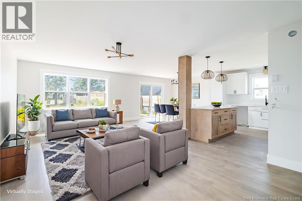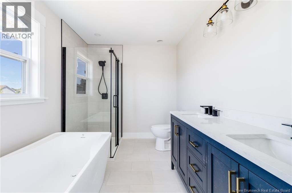 Welcome to 7 Brizley Street in Oromocto a brand-new build with stylish finishes and a thoughtful layout youll love. Step inside to a bright foyer with a convenient coat closet and half bathroom nearby. The open-concept living space is perfect for modern living and includes a heat pump for comfort all year round, featuring a beautiful kitchen that will be finished with sleek quartz countertops, plenty of cupboard space, and an oversized island ideal for entertaining. The adjoining dining and living areas are filled with natural light, creating an inviting space for everyday life. Upstairs, youll find four bedrooms, a main bathroom, and laundry. The spacious primary suite is a true retreat with a huge walk-in closet and a luxurious ensuite showcasing a soak tub and walk-in shower as well as an additional heat pump. The unfinished basement offers endless potential, already roughed in for an additional bathroom, ready for you to make it your own. An attached garage completes the layout. Outside, enjoy the deck that will be installed before closing, along with full landscaping and a paved double driveway. Move in and enjoy worry-free living in a beautiful new home! *appliances not included* *HST rebate to builder on closing & taxes to be adjusted on closing* (id:19018)