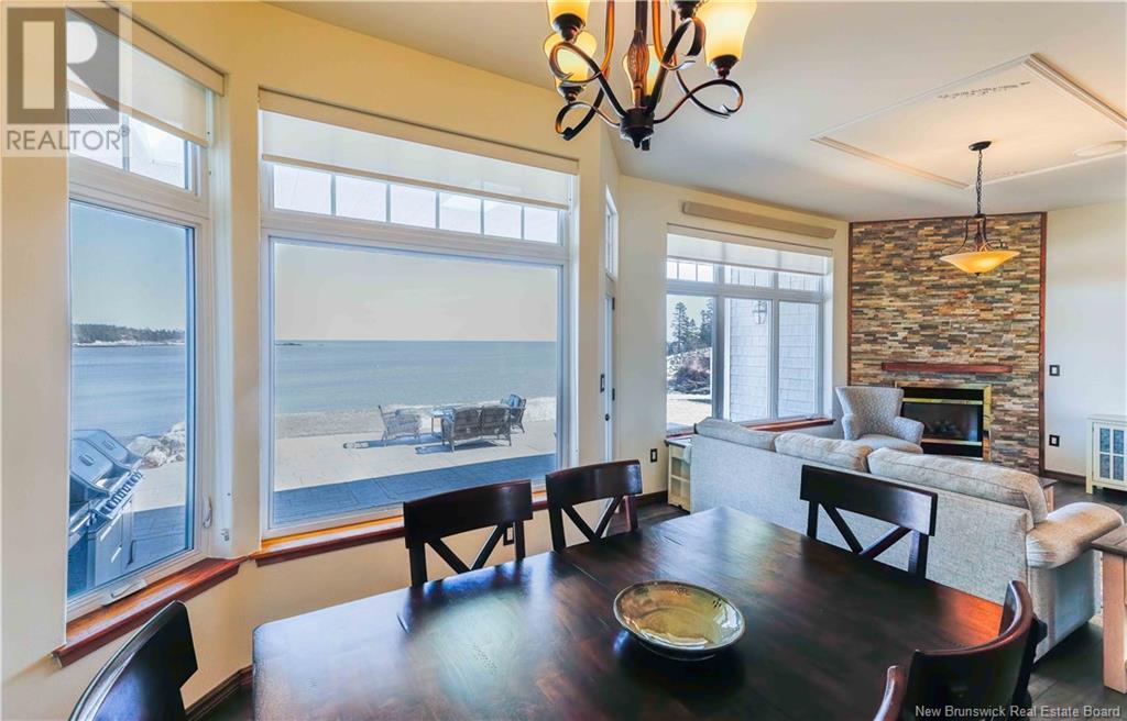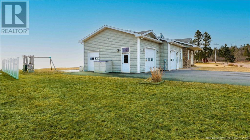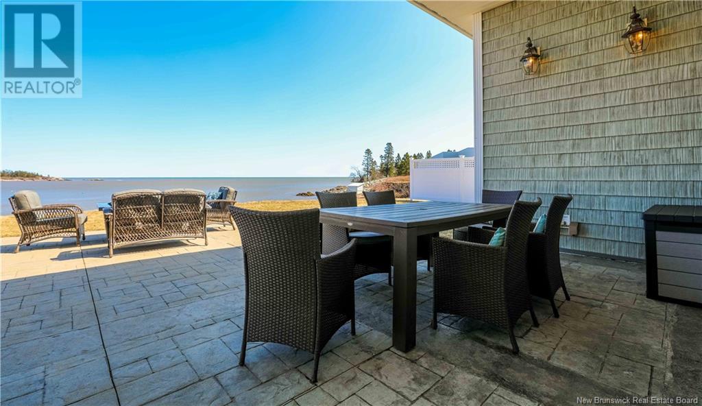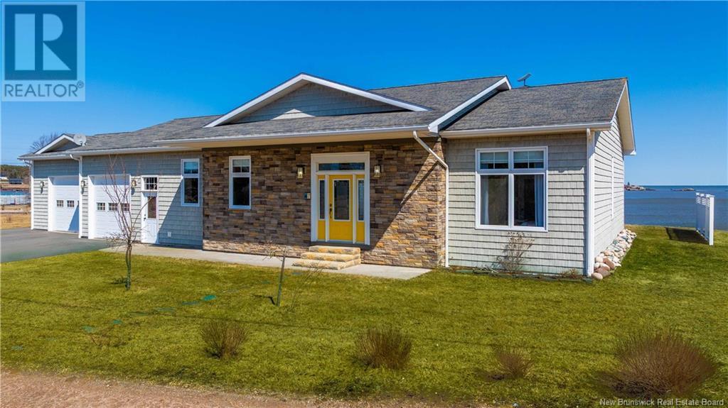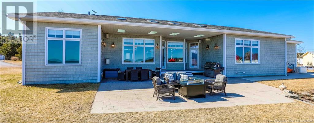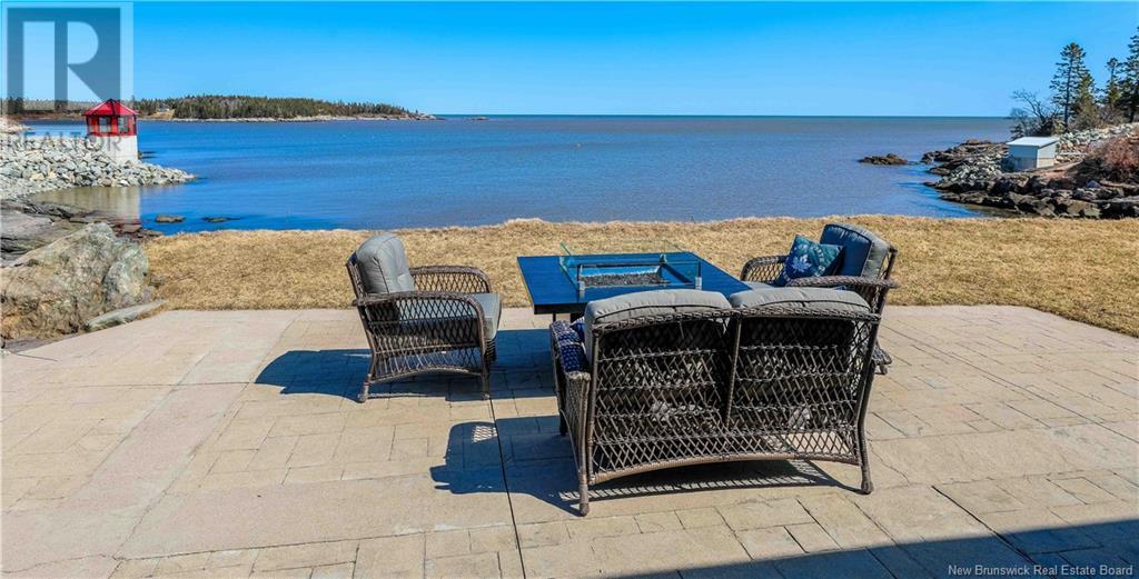 Discover a rare opportunity to own oceanfront property in the charming fishing community of Dipper Harbour on the Bay of Fundy. This executive 1,700 sq. ft. home offering an unmatched lifestyle in a truly special setting. Daily life here is like a painting in motion, local fishermen head to sea in their colourful boats, returning with the day's catch while seagulls and bald eagles circle above, adding to the busy charm and rhythm of harbour life. Your outdoor backdrop featuring a 30' x 30' stamped concrete patio, perfect for relaxing or entertaining. A gentle stone path leads you to your own private beacha setting that has hosted countless family gatherings and even two unforgettable weddings. Inside, the home welcomes you with an open-concept layout that draws your eyes straight through to the sparkling water beyond. The bright and open living room, kitchen and dining room, highlights include a stunning stone fireplace, a spacious walk-in pantry that will be the envy of any cook, and expansive windows that flood the space with natural light. The luxurious primary suite offers a private retreat with a beautiful ensuite. Two additional bedrooms and a full bathroom are located on the opposite end of the home, providing privacy and comfort for family or guests. Additional features include a built-in Bose sound system, an oversized triple-door garage, and a powerful 16kW Generac generator ensuring you're always comfortable, no matter the season. (id:19018)