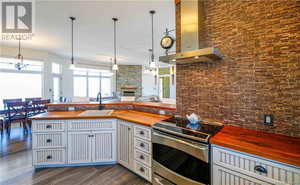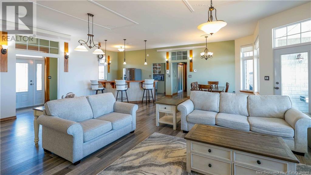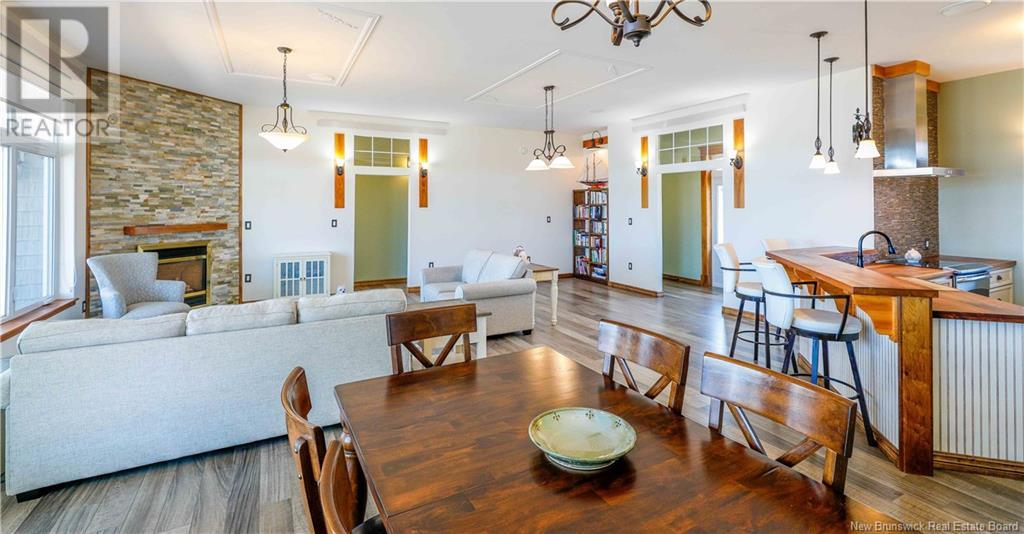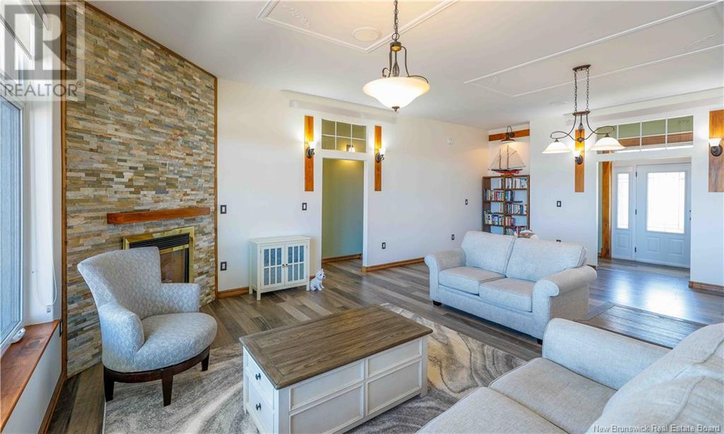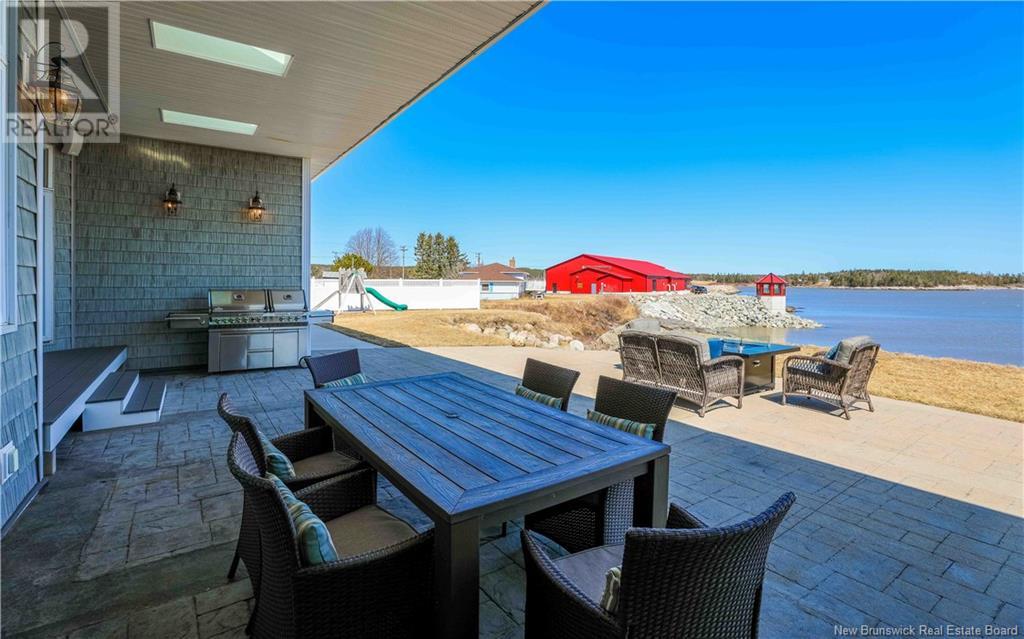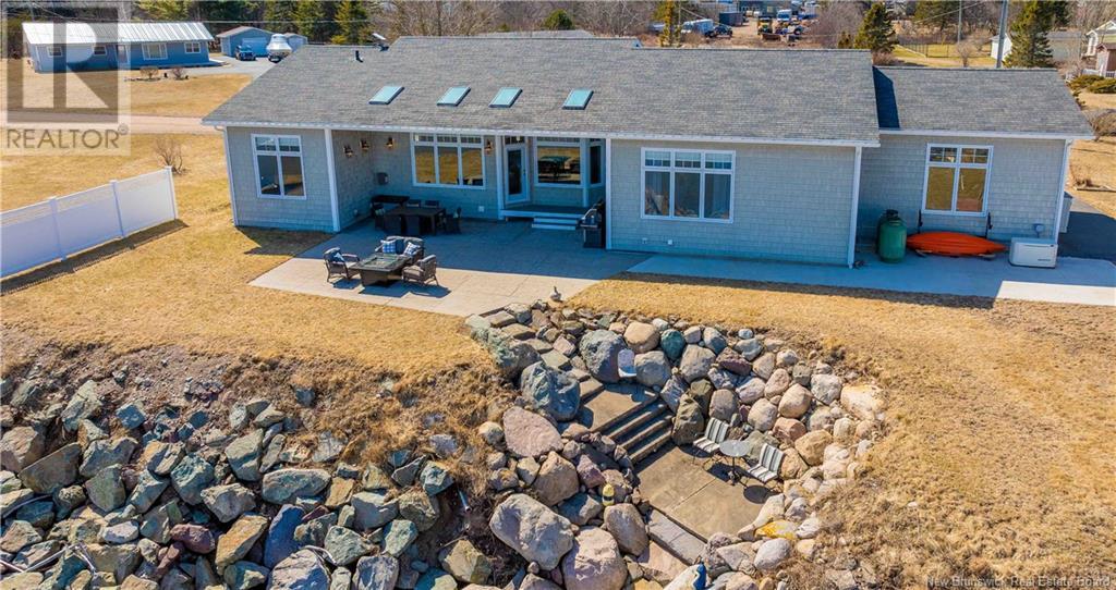 Discover a rare opportunity to own oceanfront property in the charming fishing community of Dipper Harbour on the Bay of Fundy. This executive 1,700 sq. ft. home offering an unmatched lifestyle in a truly special setting. Daily life here is like a painting in motion, local fishermen head to sea in their colourful boats, returning with the day's catch while seagulls and bald eagles circle above, adding to the busy charm and rhythm of harbour life. Your outdoor backdrop featuring a 30' x 30' stamped concrete patio, perfect for relaxing or entertaining. A gentle stone path leads you to your own private beacha setting that has hosted countless family gatherings and even two unforgettable weddings. Inside, the home welcomes you with an open-concept layout that draws your eyes straight through to the sparkling water beyond. The bright and open living room, kitchen and dining room, highlights include a stunning stone fireplace, a spacious walk-in pantry that will be the envy of any cook, and expansive windows that flood the space with natural light. The luxurious primary suite offers a private retreat with a beautiful ensuite. Two additional bedrooms and a full bathroom are located on the opposite end of the home, providing privacy and comfort for family or guests. Additional features include a built-in Bose sound system, an oversized triple-door garage, and a powerful 16kW Generac generator ensuring you're always comfortable, no matter the season. (id:19018)