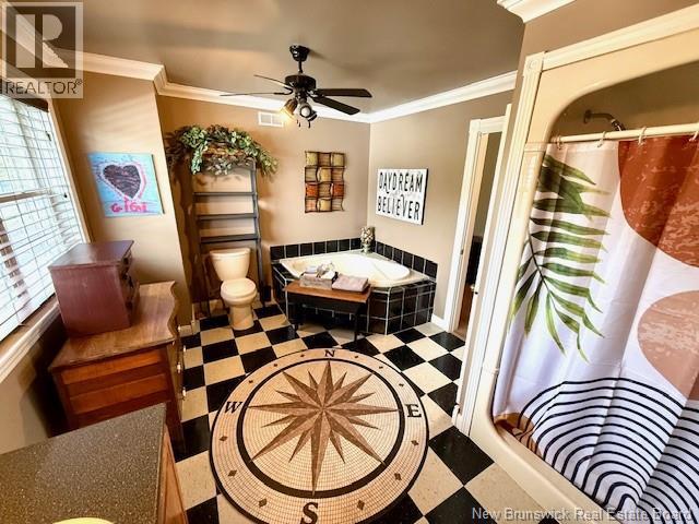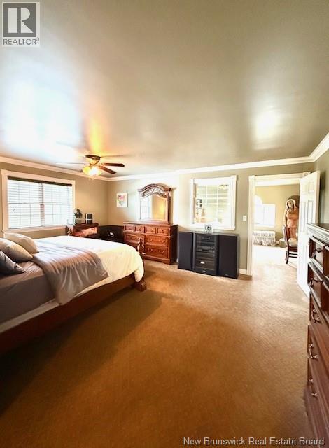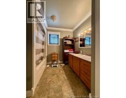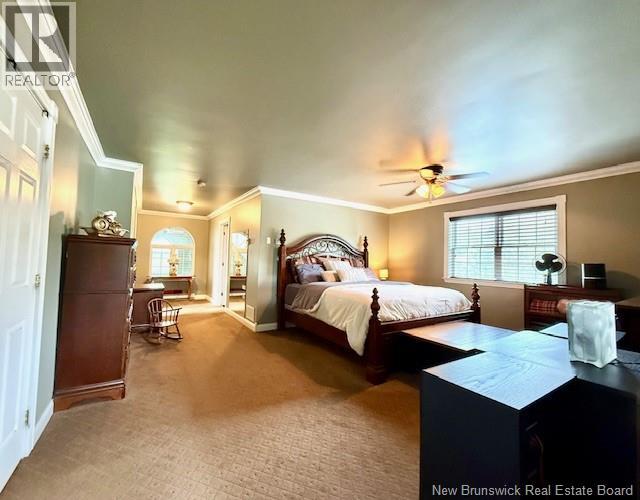 Sitting boldly on a nicely landscaped lot at the corner of Rte 3 & Rte 4, this large family home has a lot to offer. This extremely well appointed custom built Cape Cod home gives up more than 3200 sq ft of finished living space making it the perfect spot for a large or growing family. The main level has a good sized ""eat in"" kitchen, living room, full bath, 2 good sized bedrooms and a den that leads out to the impressive 3 season entertainment area (2008) c/w bathroom, bar, woodstove with custom stonework and huge vaulted ceiling. The upper level has a nice family rm/den, huge master bedroom with ensuite bath, walk in closet, and office. The basement has the large laundry area with another family/rec room and huge utility & storage room. Outside the large circular paved driveway leads into a 51' x 45' - 3 bay detached garage with bathroom, ductless heat pump and a fully finished 15 x 20 office with heated floor and another bathroom making it perfect for a home based business of any sort. The home has a fully ducted ""central air"" heat pump providing a that ensures efficient year round comfort. For the outdoor enthusiast, the Magaguadavic River is within sight/ walking distance as well as access to ATV / snowmobile trails. (id:19018)