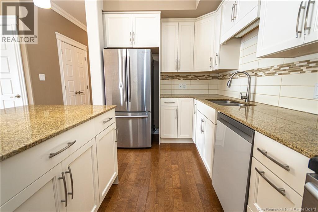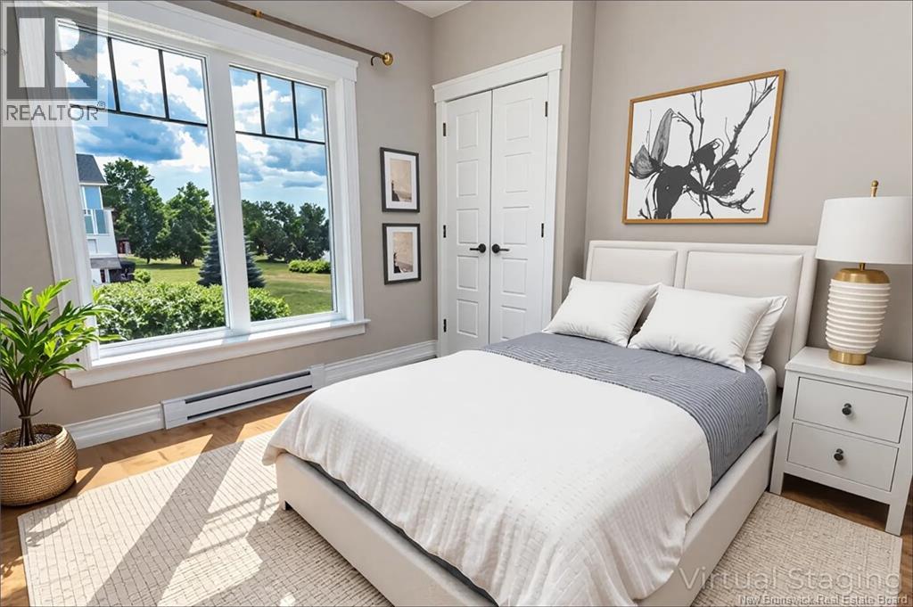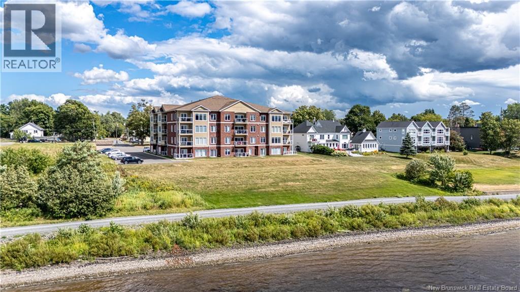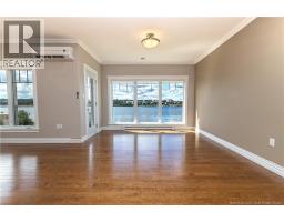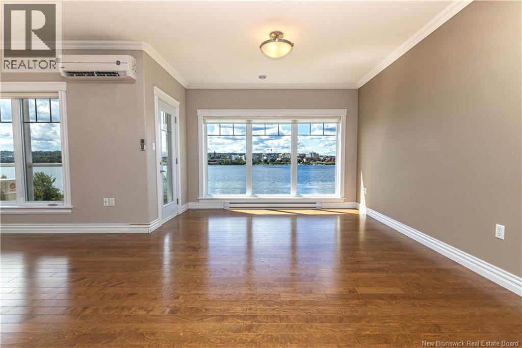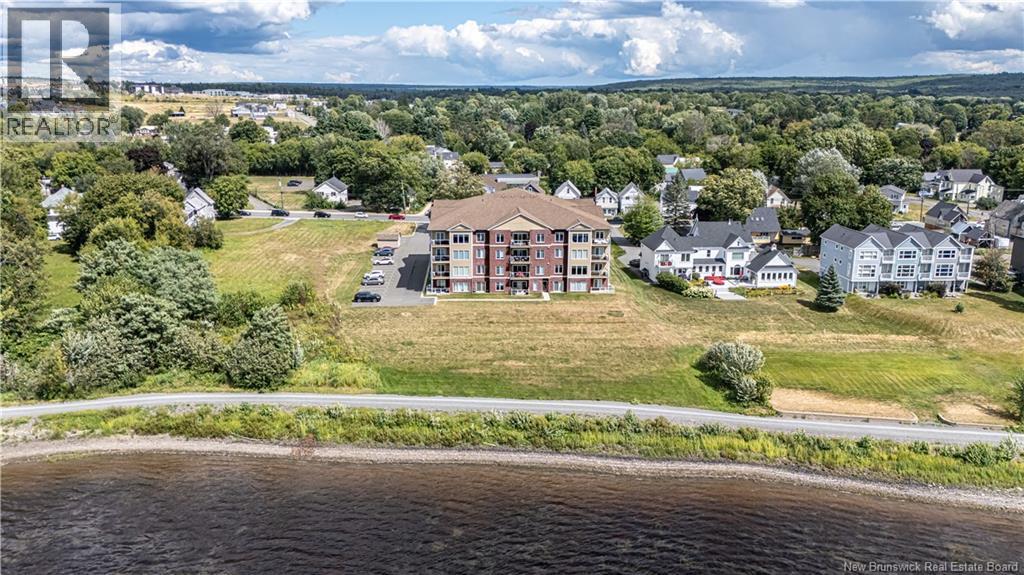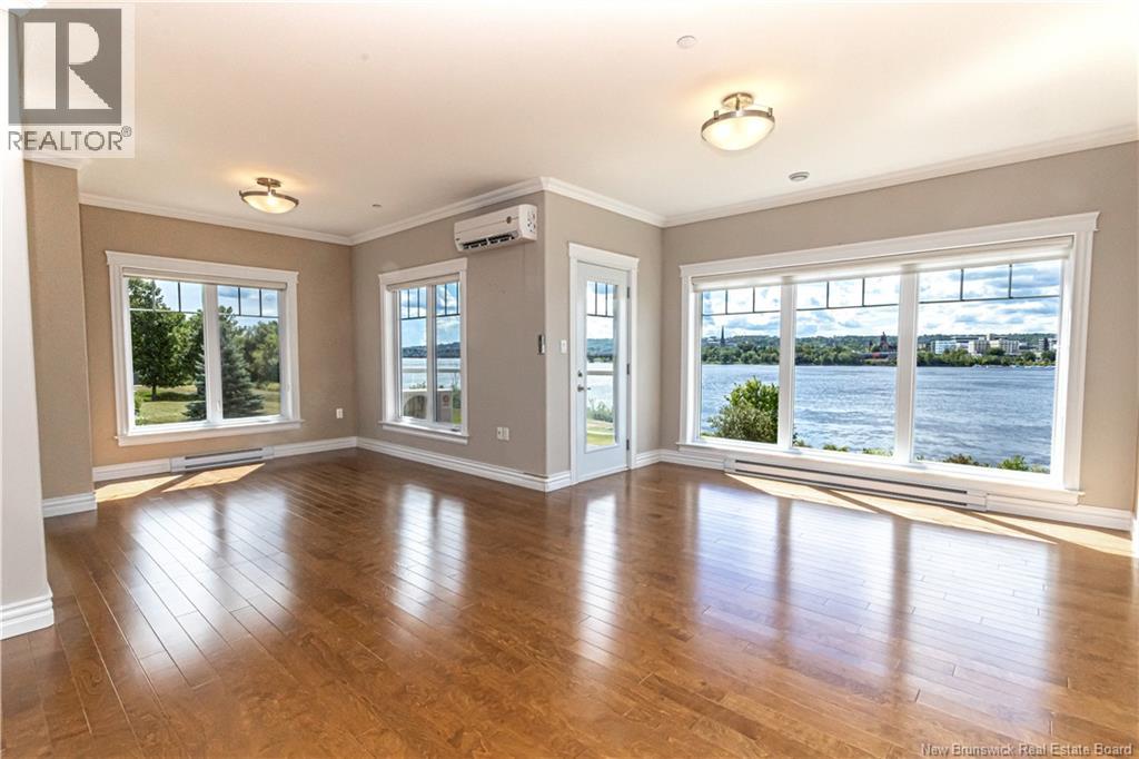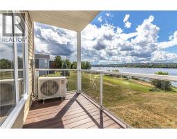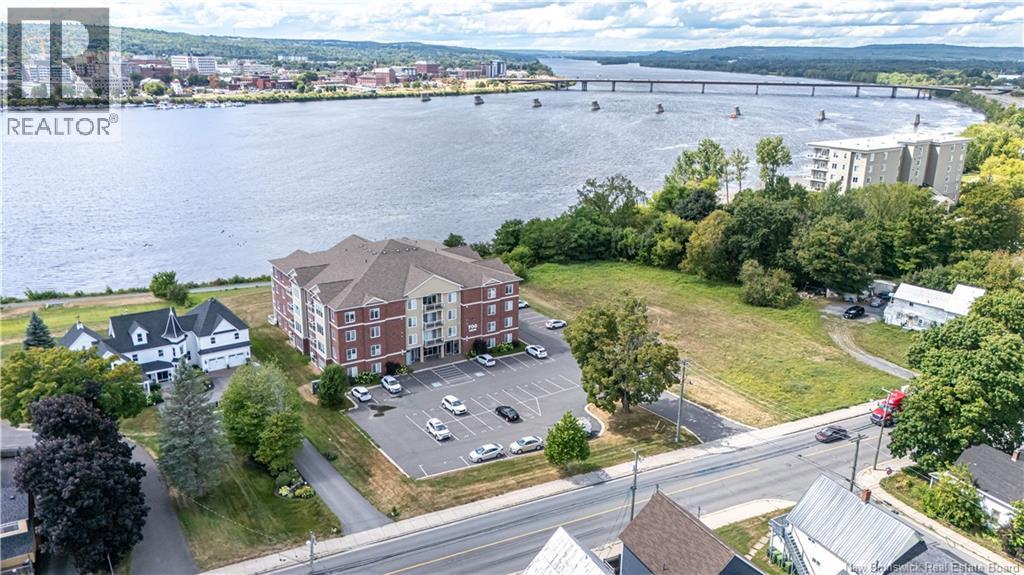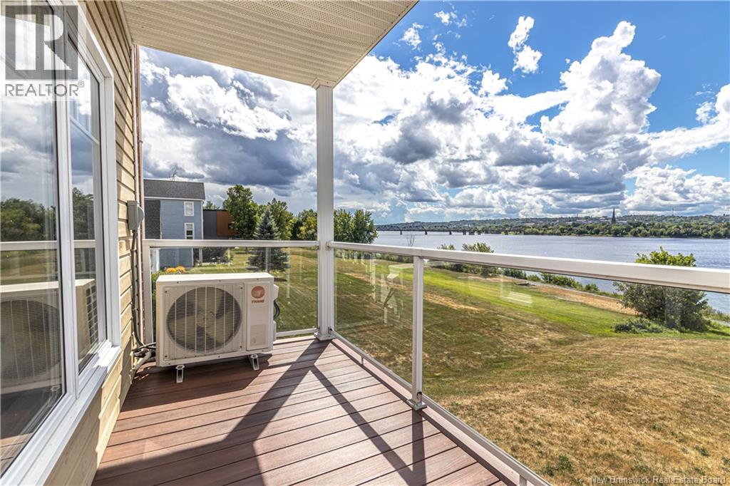 $395 MonthlyExperience modern condo living with scenic river views in this beautifully kept 2nd-floor unit! Far from the typical condo layout, this home stands out with thoughtful upgrades, quality finishes, and a warm, inviting design. Enter through the inviting tiled foyer, complete with two sets of closet space. Just beyond, youll be greeted by an open-concept main living area that is highlighted by a ductless split heat pump and expansive windows offering picturesque views of the river and downtown Fredericton. The stylish kitchen is designed to impress, offering modern white cabinetry, tiled backsplash, striking granite countertops, and a spacious center island thats perfect for meal prep or casual dining. With ample storage and a functional layout, its a space that blends everyday convenience with a touch of luxury. Retreat to the private primary suite, offering a walk-in closet and a full ensuite bath with tiled walk-in shower. A second bedroom, an additional full bathroom, and a laundry/storage room complete this amazing home. Building amenities include a fitness center and a guest suite when extra space is needed for friends and family. Please note there is a $750 move-in fee, payable by the purchaser to the condo board upon closing. This condo is a true must-seeschedule your private showing today! (id:19018)