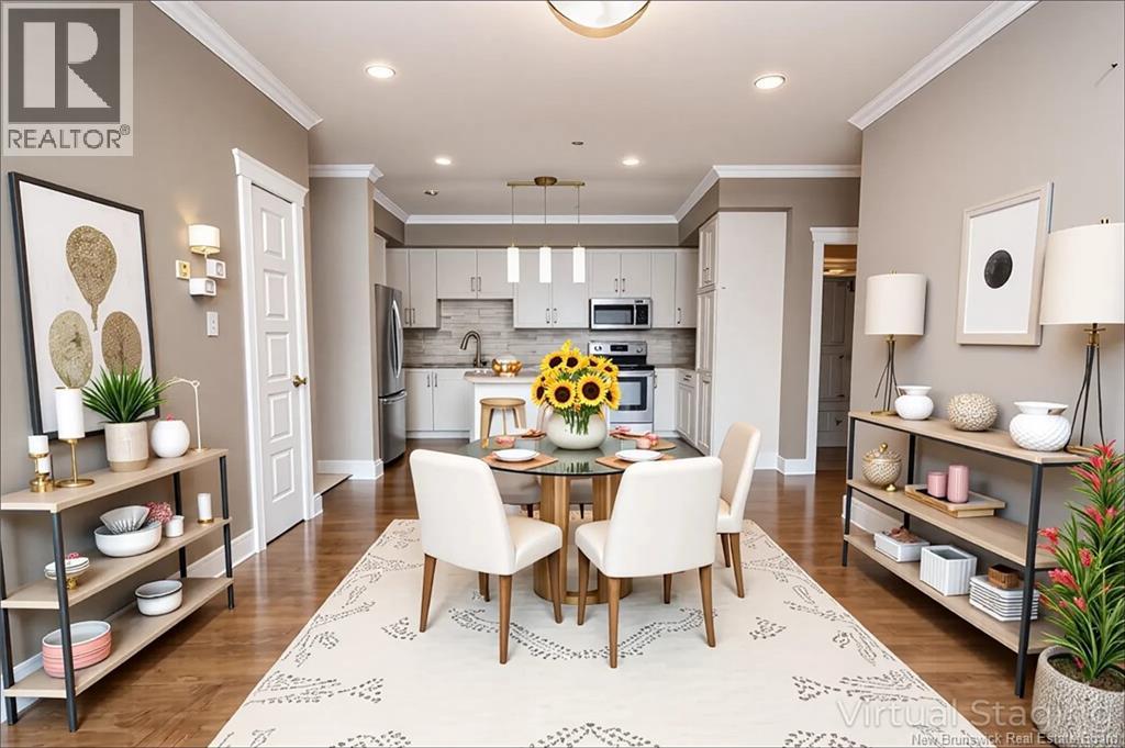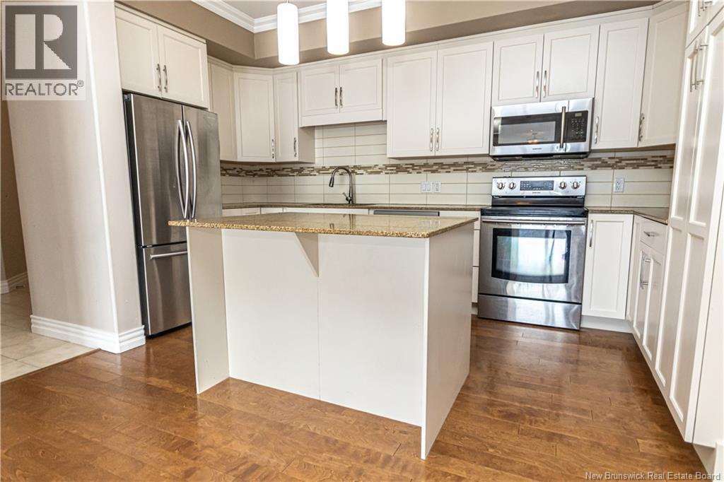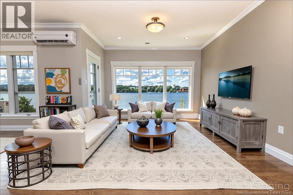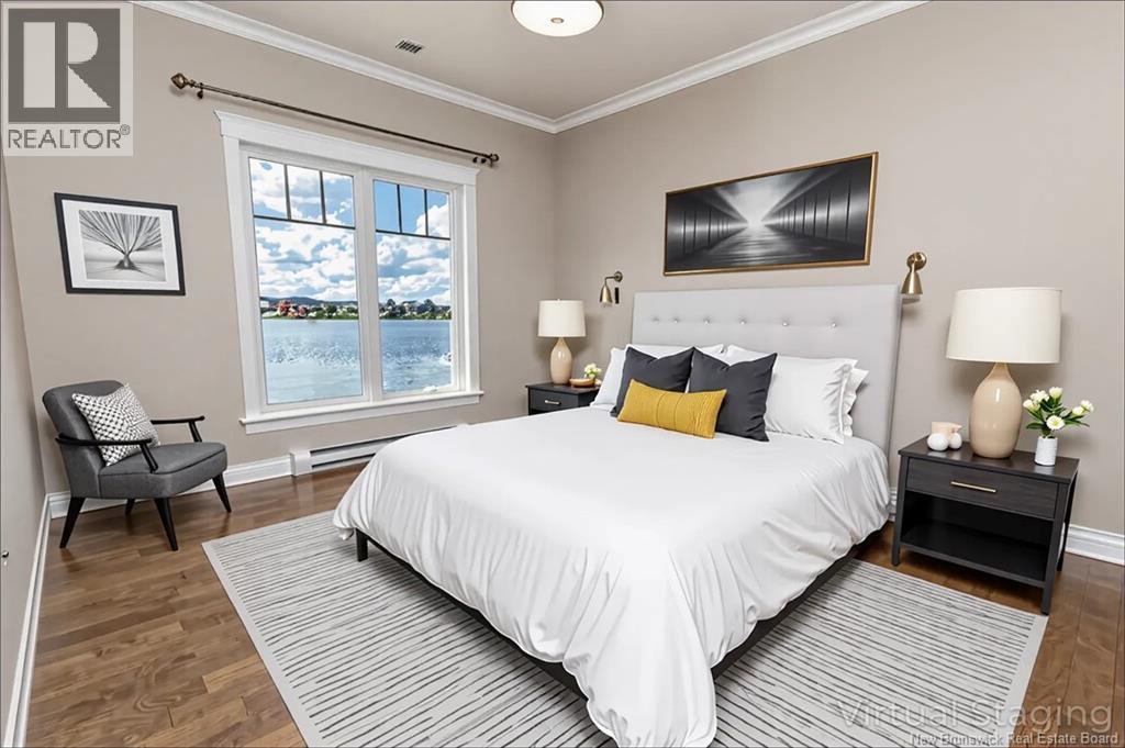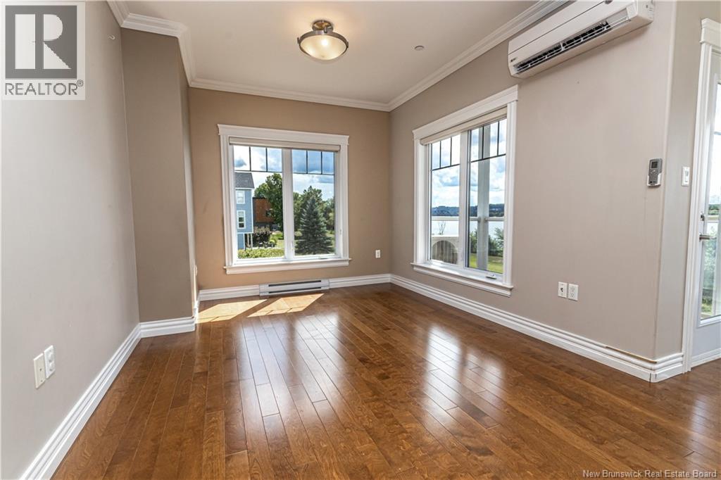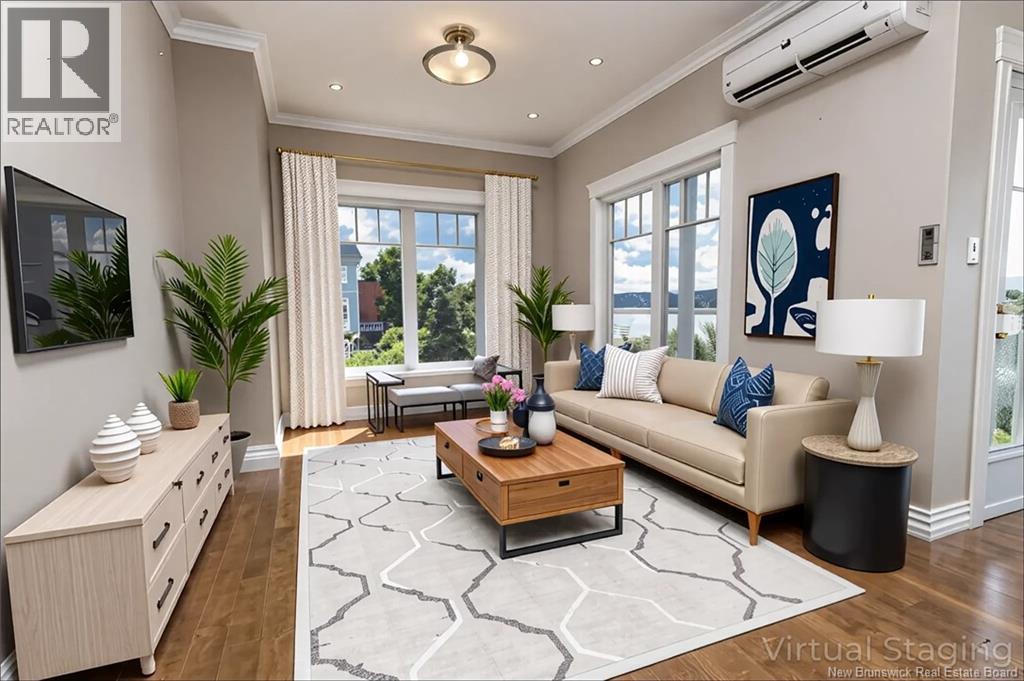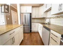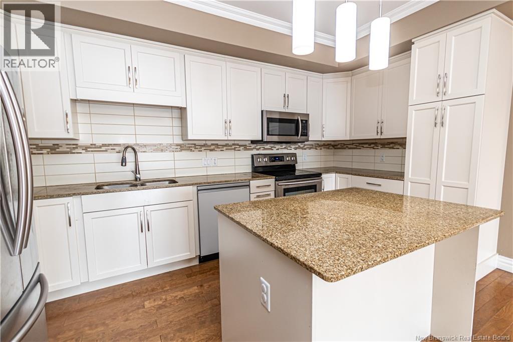 $395 MonthlyExperience modern condo living with scenic river views in this beautifully kept 2nd-floor unit! Far from the typical condo layout, this home stands out with thoughtful upgrades, quality finishes, and a warm, inviting design. Enter through the inviting tiled foyer, complete with two sets of closet space. Just beyond, youll be greeted by an open-concept main living area that is highlighted by a ductless split heat pump and expansive windows offering picturesque views of the river and downtown Fredericton. The stylish kitchen is designed to impress, offering modern white cabinetry, tiled backsplash, striking granite countertops, and a spacious center island thats perfect for meal prep or casual dining. With ample storage and a functional layout, its a space that blends everyday convenience with a touch of luxury. Retreat to the private primary suite, offering a walk-in closet and a full ensuite bath with tiled walk-in shower. A second bedroom, an additional full bathroom, and a laundry/storage room complete this amazing home. Building amenities include a fitness center and a guest suite when extra space is needed for friends and family. Please note there is a $750 move-in fee, payable by the purchaser to the condo board upon closing. This condo is a true must-seeschedule your private showing today! (id:19018)