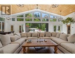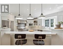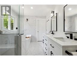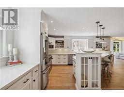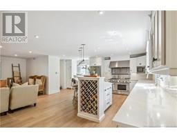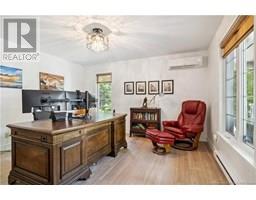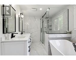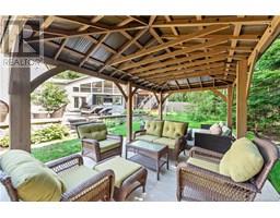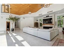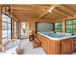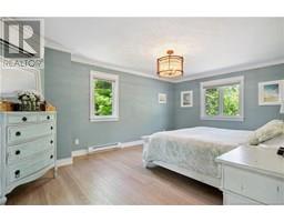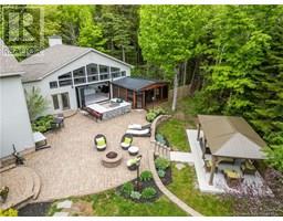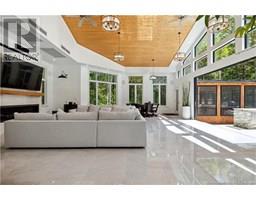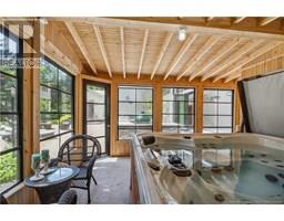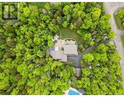Nestled in the peaceful Ammon area, this beautifully renovated home offers unparalleled privacy and serenity, with high-end finishes throughout. From the moment you step inside, youll be impressed by the attention to detailstarting with a welcoming foyer that opens to a main floor office and a cozy sitting room that flows into a dream kitchen. Designed for the home chef, the kitchen features quartz countertops, resurfaced cabinetry, marble backsplash, gas stove, double ovens, and so much more. The adjacent dining room includes a marble-tiled wood stove and opens into a bright living room with vaulted cedar ceilings and oversized windows. The family room is a true showstopper, with a propane fireplace, wall-to-wall windows, and folding doors leading to a 3-season room complete with an Arctic Spa hot tub. Upstairs, the spacious primary suite includes a walk-in closet and spa-inspired ensuite. Three additional bedrooms, a full bathroom with laundry, and an open landing complete this level. The finished basement is designed for entertaining and wellness, featuring a games room, theater, two exercise rooms, a half bath, and ample storage. The backyard is equally impressiveprofessionally landscaped with a stone patio, outdoor kitchen, fire pit, steel roof gazebo, and mature trees. Additional highlights include new windows, light fixtures, mini-splits, central vac, alarm system, generator hookup, and a detached double garage. This is your private retreat, just minutes from town. (id:19018)