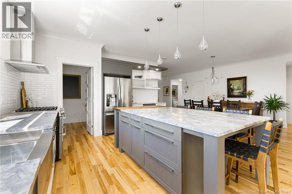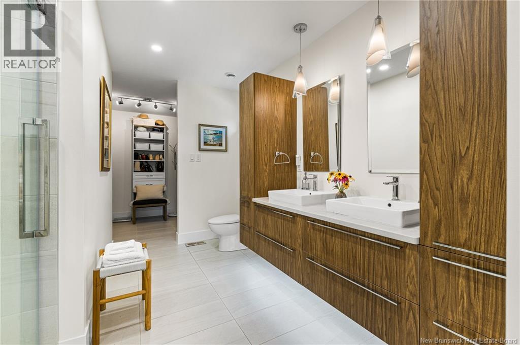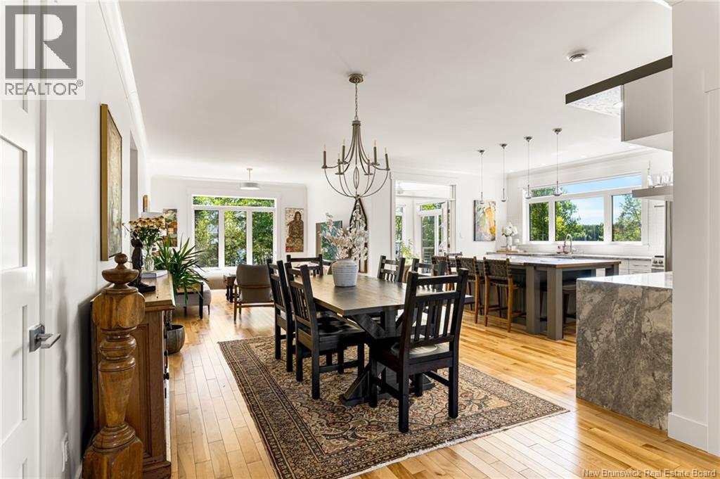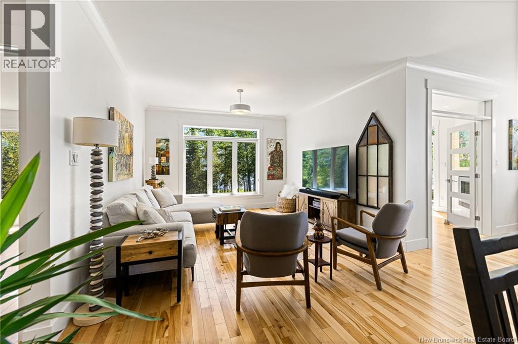 WATER FRONT//HIGH END FINISHES//LUXURY LIVING//DOUBLE CAR GARAGE//Welcome to your private riverfront oasis! This stunning custom-built home on the Shediac River offers a 3.2-acre lot with 400 feet of pristine river frontage. Enjoy the beautifully landscaped grounds, featuring a lovely paver patio by the water, perfect for tranquil moments. Built in 2018, this 3-bedroom, 3-bath residence spans over 2,900 sq ft, showcasing high-end finishes throughout. The open-concept main floor features 9-foot ceilings, hardwood floors, and a gourmet kitchen with custom cabinetry, propane stove, large walk-in pantry and quartz countertops. The luxurious sunroom provides breathtaking river views and a cozy propane fireplace. The main-floor master suite is a true sanctuary with a spa-like ensuite and a generous walk-in closet. The fully finished lower level offers an expansive family room, a full bath, and plenty of storage. A heated 720 sq ft garage, a large deck with a retractable awning, and a new wood chip pathway leading to the water complete the exterior. Modern comforts include a fully ducted heat pump, and a generator hookup. Enjoy the tranquility of waterfront living with access to a private community dock and exclusive amenities. This elegant property offers a perfect blend of privacy and comfort in a well-maintained community. Call today for more information! (id:19018)