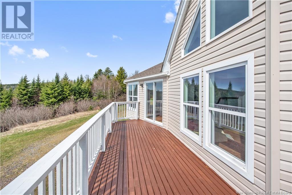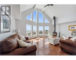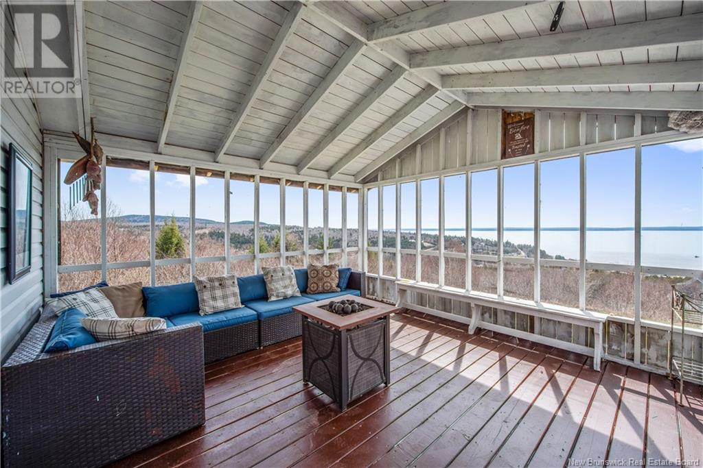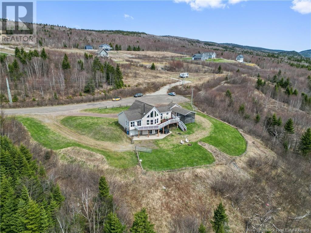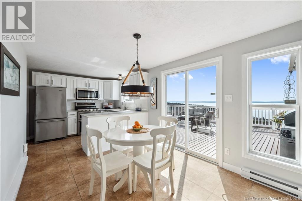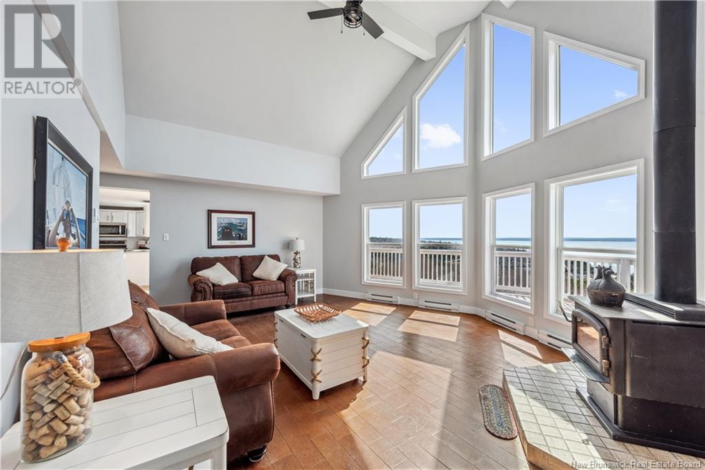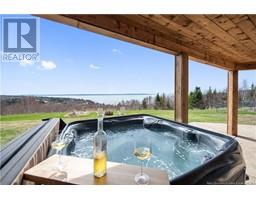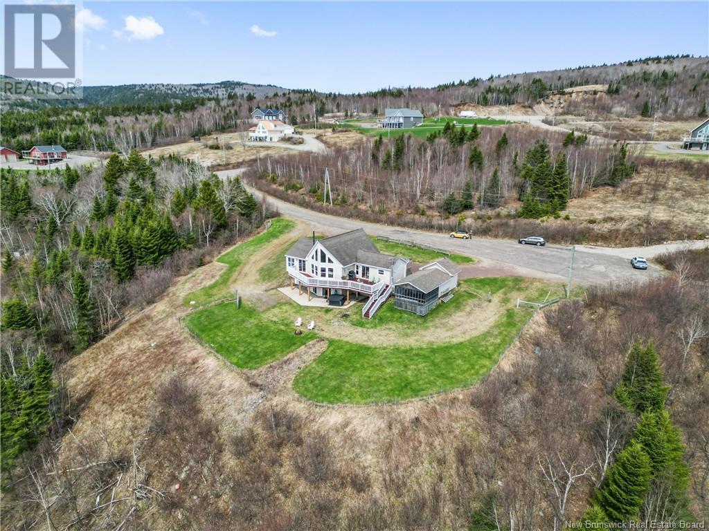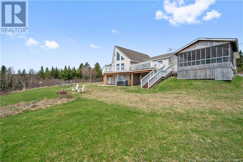 Charming hilltop home with panoramic view of the Bay of Fundy and Alma hillside. Main floor features living room with cathedral ceiling, woodstove, and a wall of windows overlooking the bay, updated kitchen with Quartz counter tops and gas stove, main floor laundry/pantry area, spacious primary bedroom with cheerful sitting room with water view and access to back deck, 4 piece ensuite bathroom, bedroom, and a half bath. Upper level has a private 3rd bedroom. Walkout basement gets tons of natural light and offers a 4th bedroom, also with a great view, and has a patio door to backyard, 3 piece bath, and 2 large storage rooms which could be finished if more living space is desired. Home has two mini splits for efficient heating and cooling and also has a generator panel. Hot tub new in 2024. Property is 1.9 acres and is fenced in the back. Handy ATV and snowmobile trails. Storage shed and charming gazebo overlooking the water. Quaint fishing village of Alma is a popular spot in the summer and is handy beaches, shops, restaurants, Fundy National Park, Marys Point, and World Famous Hopewell Rocks. An ideal spot for an Air BnB! (id:19018)