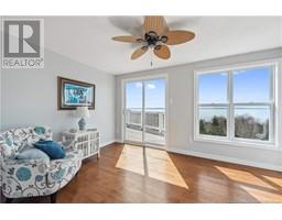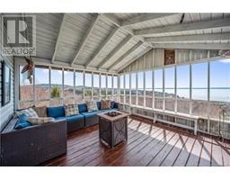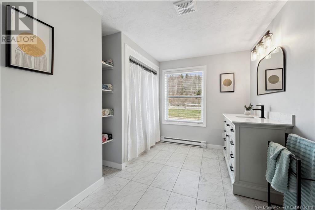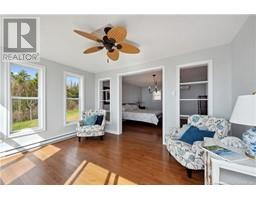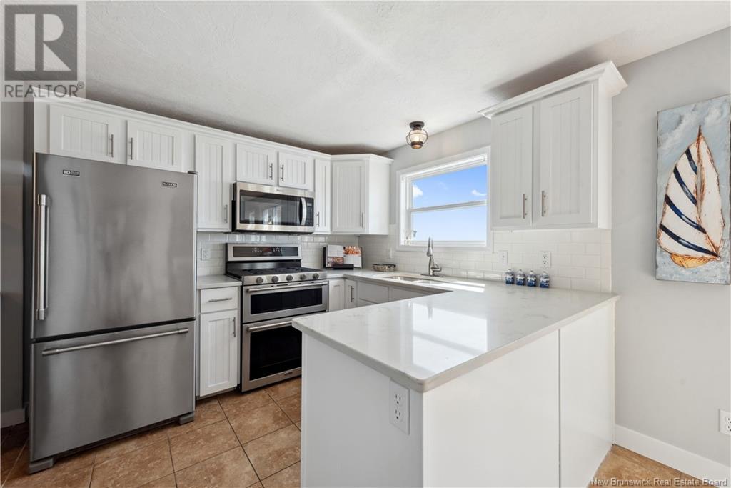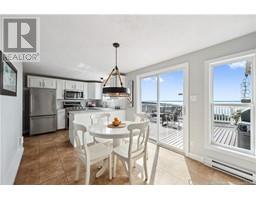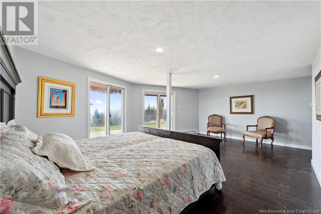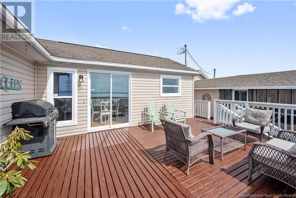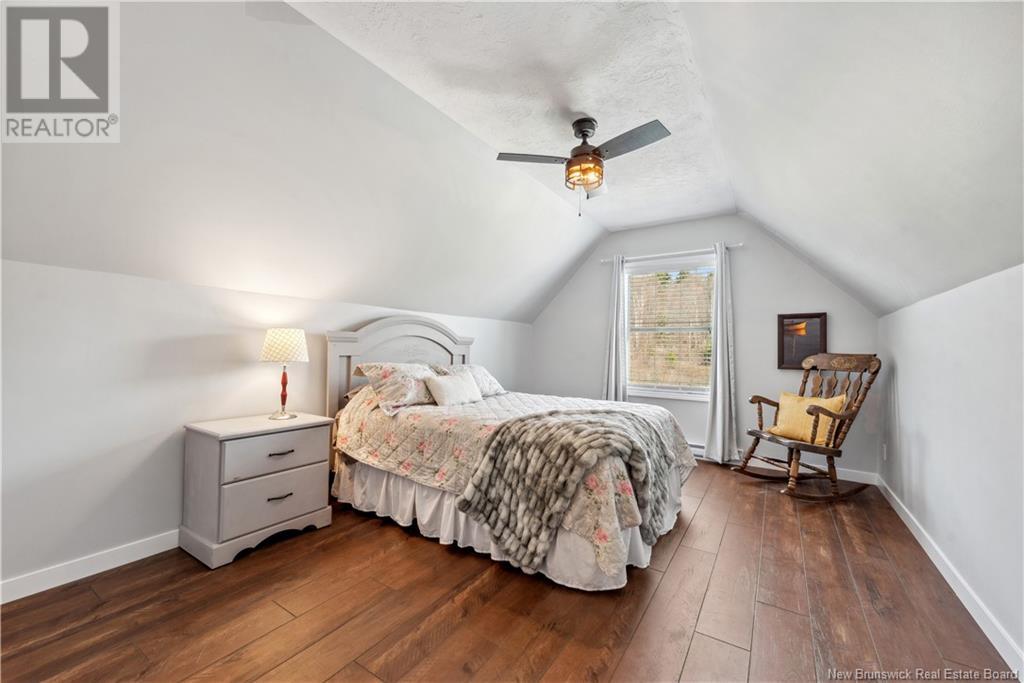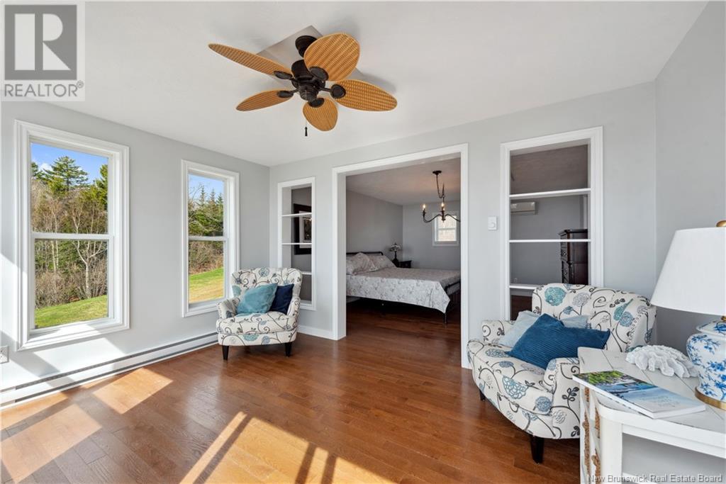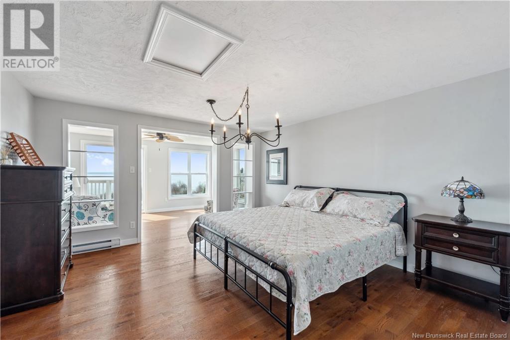 Charming hilltop home with panoramic view of the Bay of Fundy and Alma hillside. Main floor features living room with cathedral ceiling, woodstove, and a wall of windows overlooking the bay, updated kitchen with Quartz counter tops and gas stove, main floor laundry/pantry area, spacious primary bedroom with cheerful sitting room with water view and access to back deck, 4 piece ensuite bathroom, bedroom, and a half bath. Upper level has a private 3rd bedroom. Walkout basement gets tons of natural light and offers a 4th bedroom, also with a great view, and has a patio door to backyard, 3 piece bath, and 2 large storage rooms which could be finished if more living space is desired. Home has two mini splits for efficient heating and cooling and also has a generator panel. Hot tub new in 2024. Property is 1.9 acres and is fenced in the back. Handy ATV and snowmobile trails. Storage shed and charming gazebo overlooking the water. Quaint fishing village of Alma is a popular spot in the summer and is handy beaches, shops, restaurants, Fundy National Park, Marys Point, and World Famous Hopewell Rocks. An ideal spot for an Air BnB! (id:19018)