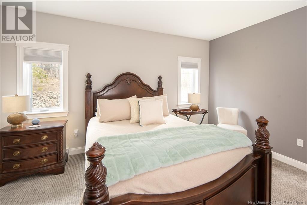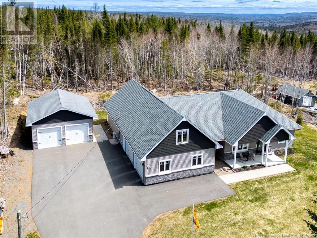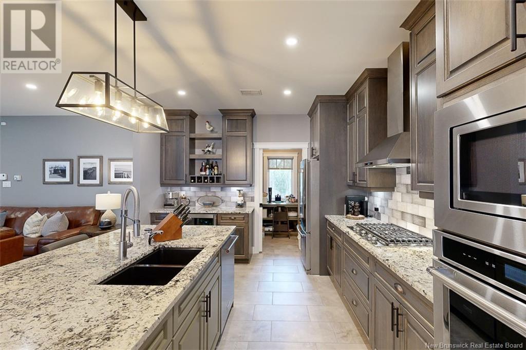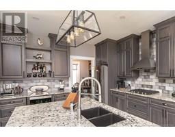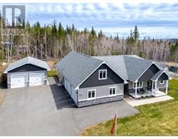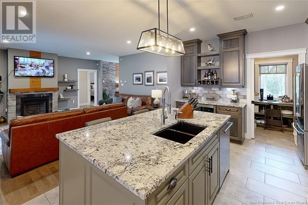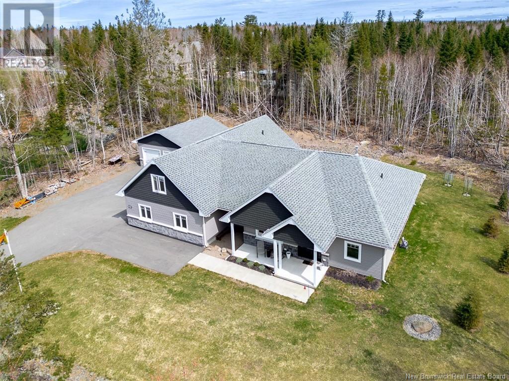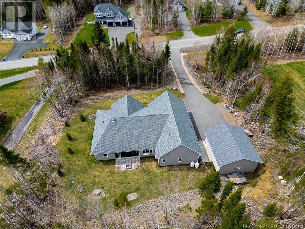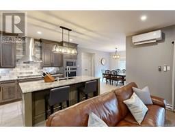 Stunning 2021-built executive bungalow at 9 Leeland Way in tranquil Killarney Lake. This 4-bed,1-level-living home (with a loft) offers exquisite finishes. Offering 2 garages, an attached double & a detached double. Paved driveway leads to a landscaped concrete walkway. Enter to view stunning accent wall of stacked stone & wood, with ceramic tile flooring leading into the home. To the left, find a large, bright versatile bedroom, currently an office space. Enter the open-concept great room, hosting a living room, dining area, & kitchen. A mix of hardwood & ceramic floors flow throughout this space. A cozy propane fireplace adds warmth to the living area & coordinates beautifully with the foyer styling. From the living room, step out to a covered porch for a lovely outdoor retreat. Overlooking the landscape private backyard featuring: covered concrete patio; built-in speaker system; & cultured stone patio with fire pit Kitchen brings the wow factor with extensive ceiling-height cabinets, granite countertops,tile backsplash, massive island, & a separate walk-in pantry. Primary bedroom offers a lovely ensuite and walk-in closet. This bungalow layout offers added privacy, with the great room area in the center, separating the primary suite from the secondary bedrooms & bathroom. Finished loft space above the garage offers many possibilities. Other notable features include a security system, speaker system, & soffit lighting. A truly exceptional home in Killarney Lake. (id:19018)