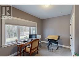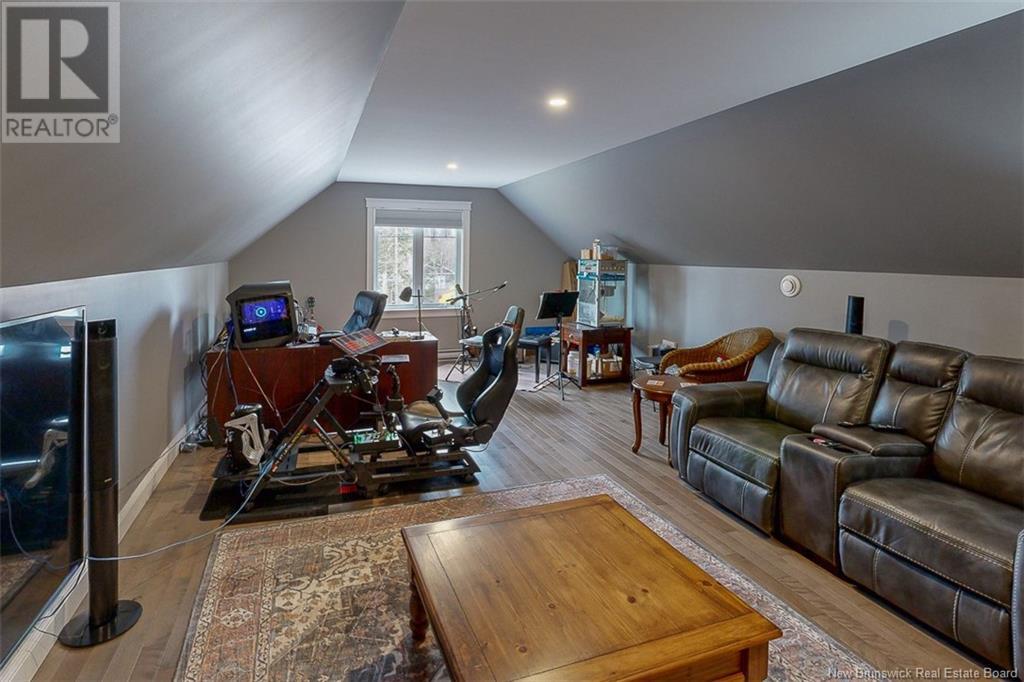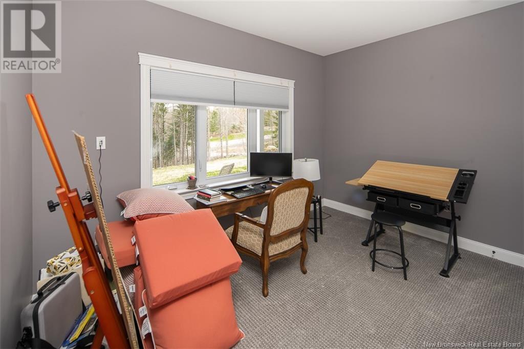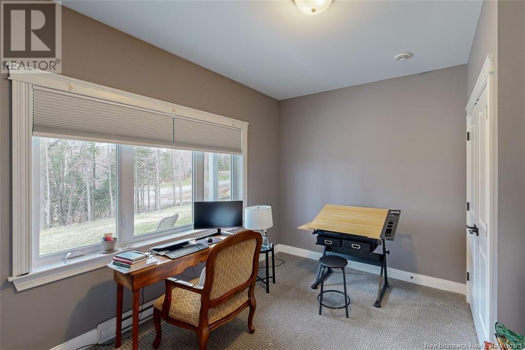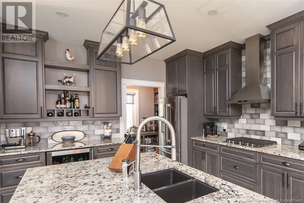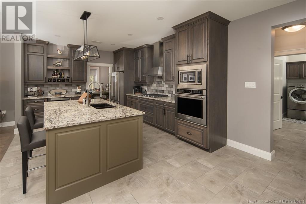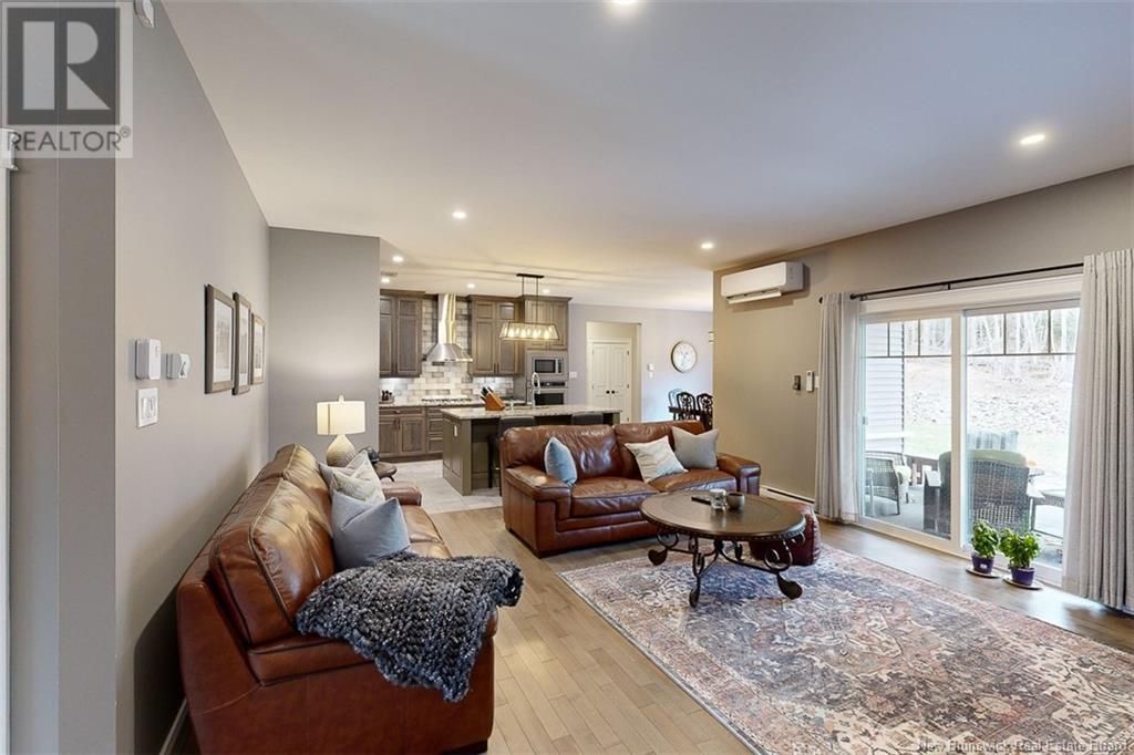 Stunning 2021-built executive bungalow at 9 Leeland Way in tranquil Killarney Lake. This 4-bed,1-level-living home (with a loft) offers exquisite finishes. Offering 2 garages, an attached double & a detached double. Paved driveway leads to a landscaped concrete walkway. Enter to view stunning accent wall of stacked stone & wood, with ceramic tile flooring leading into the home. To the left, find a large, bright versatile bedroom, currently an office space. Enter the open-concept great room, hosting a living room, dining area, & kitchen. A mix of hardwood & ceramic floors flow throughout this space. A cozy propane fireplace adds warmth to the living area & coordinates beautifully with the foyer styling. From the living room, step out to a covered porch for a lovely outdoor retreat. Overlooking the landscape private backyard featuring: covered concrete patio; built-in speaker system; & cultured stone patio with fire pit Kitchen brings the wow factor with extensive ceiling-height cabinets, granite countertops,tile backsplash, massive island, & a separate walk-in pantry. Primary bedroom offers a lovely ensuite and walk-in closet. This bungalow layout offers added privacy, with the great room area in the center, separating the primary suite from the secondary bedrooms & bathroom. Finished loft space above the garage offers many possibilities. Other notable features include a security system, speaker system, & soffit lighting. A truly exceptional home in Killarney Lake. (id:19018)