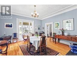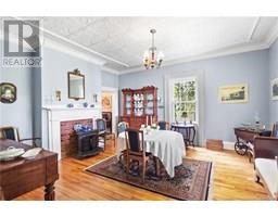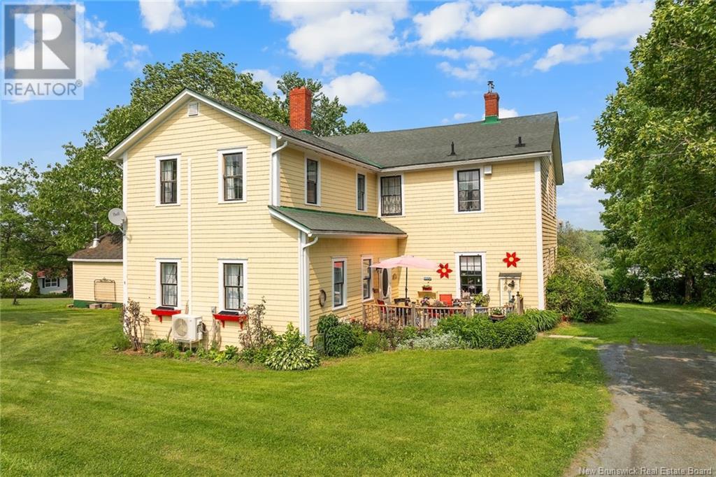 Step back in time without sacrificing modern comfort at this well maintained historic residence, perched above the Saint John River on 3.5 acres of picturesque grounds. Built in 1843 by Thomas Tilley, this timeless home tells a story in every handcrafted detail, from original crown mouldings to rich woodwork that has been preserved throughout.Enter through the inviting eat-in kitchen, centered around an antique stove, where generations have gathered and memories continue to be made. The warmth continues in the elegant dining room, featuring a classic wood-burning fireplace, evoking the charm of yesteryear. The family room creates a seamless flow for both entertaining and everyday living. A new addition to the main level offers added living space, ideal for a granny suite or multigenerational living. Upstairs, you'll find four spacious bedrooms, a second full bath, a serene sitting room, and a versatile bonus area, complete with its own staircase to the main level. Modernized where it counts, this home has been properly updated, blending 19th-century elegance with 21st-century peace of mind. Relax with your morning coffee on the front deck, watching sailboats drift by on the river, or explore your private paradise, complete with a single garage, workshop, charming gazebo, and expansive green space. Located in the heart of Gagetown, known for its community spirit and tranquil lifestyle, you're just a short walk to local breweries and marina, and only 45 min to Fredericton. (id:19018)